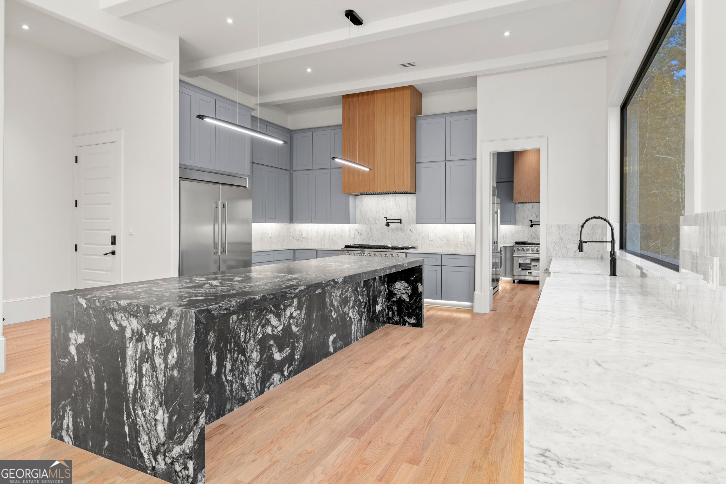 ***NEW CONSTRUCTION***Experience modern luxury at 520 Heathmill Court, a contemporary home tucked in a quiet Milton location. Designed for both everyday living and entertaining, the open layout features a sleek kitchen with custom cabinetry, a stone waterfall island, full-height stone backsplash, premium appliances, and a wood-wrapped hood. The kitchen opens to a spacious great room with a plaster fireplace and oversized sliders leading to a covered patio and private wooded backyard. The main level includes a guest suite, dedicated office, glass wine display, and wide-plank hardwood floors. Upstairs, the primary suite offers a relaxing retreat with abundant natural light, a double-sided fireplace, and a spa-like bath with frameless glass shower, dual vanities, and a large walk-in closet. Additional bedrooms are bright and well-appointed. Set on a quiet, tree-lined street, this home offers a rare blend of modern design, privacy, and convenience close to Milton and Alpharetta amenities.