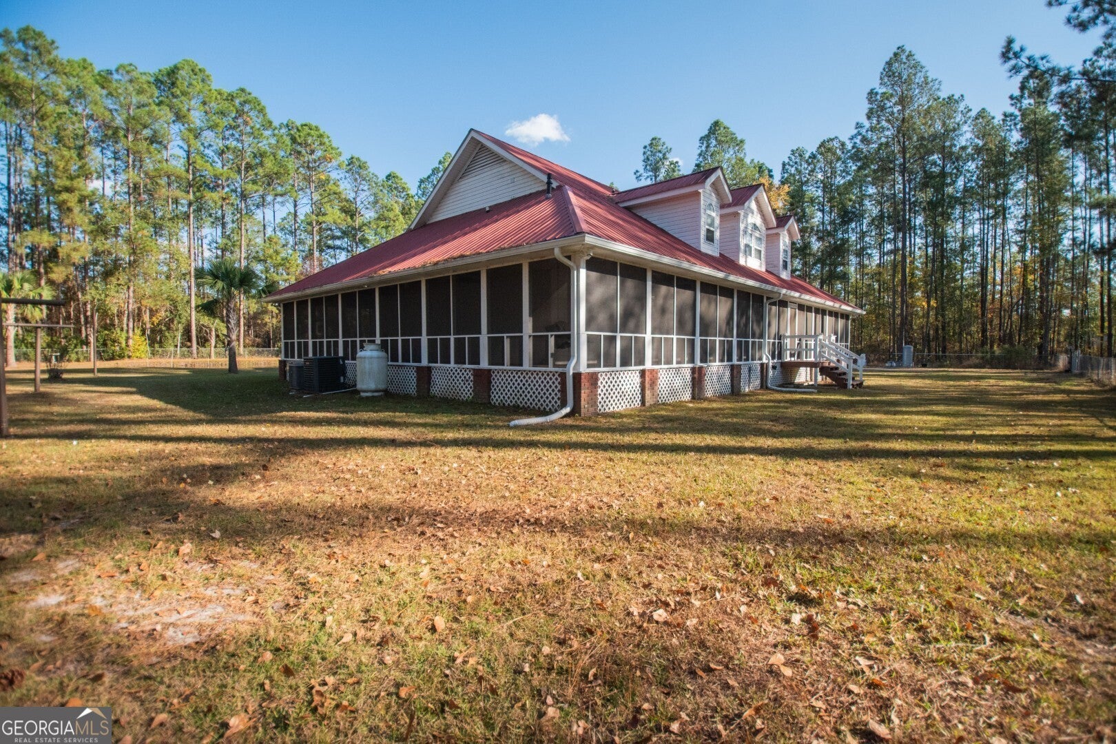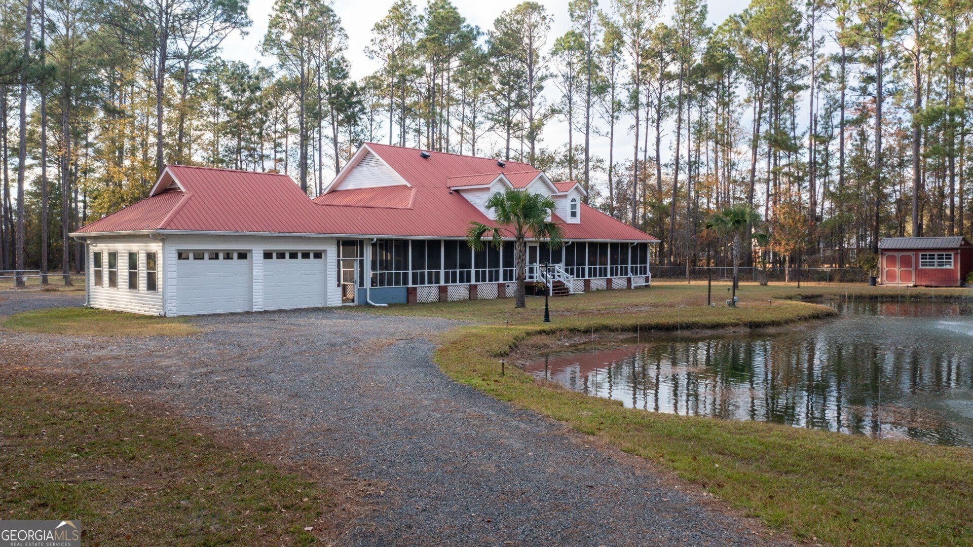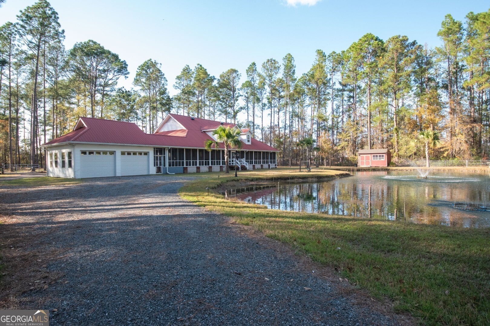 Prepare to be captivated by 4818 Lovett Rd, a breathtakingly renovated 7-bedroom, 3-bath home that sits on 5 private acres just outside of Waycross! Imagine a secluded, wooded paradise with a mesmerizing pond, complete with a lighted fountain for those magical evenings. Step onto the expansive, newly screened wrap-around porch, where surround sound sets the stage for unforgettable entertainment. Inside, discover a completely updated interior, anchored by a central living room with surround sound and a cozy electric fireplace. The kitchen is a chef's dream, boasting granite countertops, sleek black stainless-steel appliances, and a gas range, all flowing seamlessly into the formal dining room. The first-floor master suite is a luxurious escape, featuring a stylish bathroom with a smart tile shower. A second ensuite bedroom offers a tiled tub/shower combo for added convenience. Upstairs, find four additional bedrooms, a versatile flex room (or 7th bedroom), a third full bath, and an office nook, all with walk-in closets and tons of storage. The beautifully screened porch offers serene pond views, where bass, blue gill, and carp swim, making this turn-key home a spacious retreat ready for its next owners. Plus, there's plenty of space to store your favorite outdoor toys in a very spacious two-car garage. This home is a true country retreat paradise. Don't miss your chance to own this stunning property-call your favorite agent and schedule a showing today!