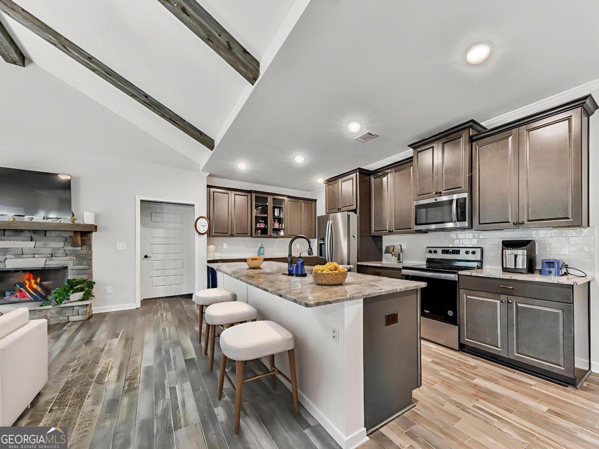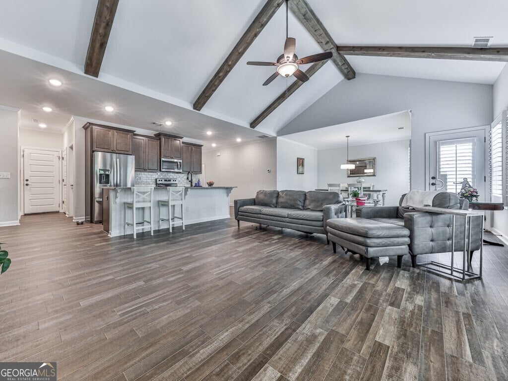 - Interior FeaturesBeamed Ceilings, Double Vanity, In-Law Floorplan, Master On Main Level, Vaulted Ceiling(s), Walk-In Closet(s)