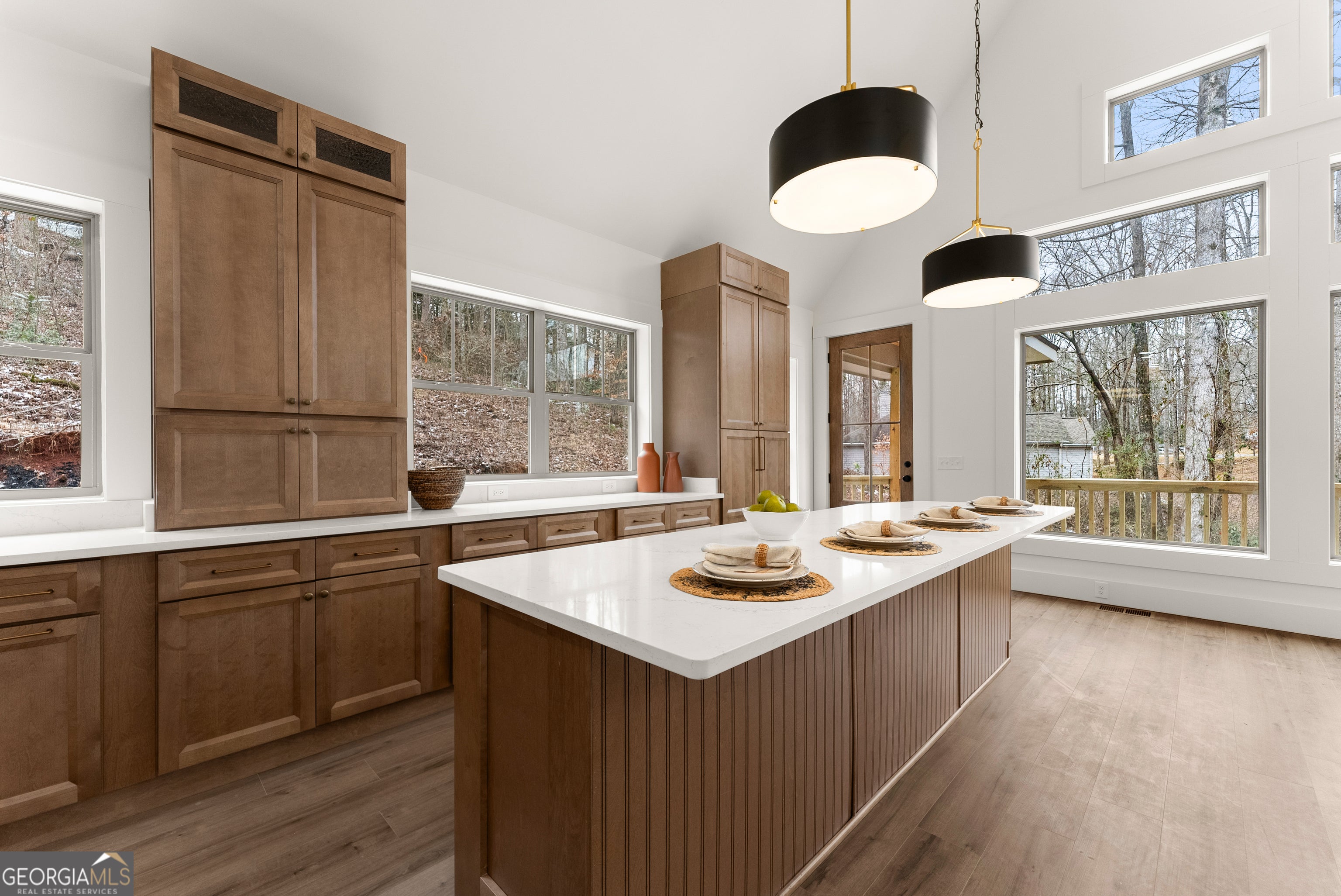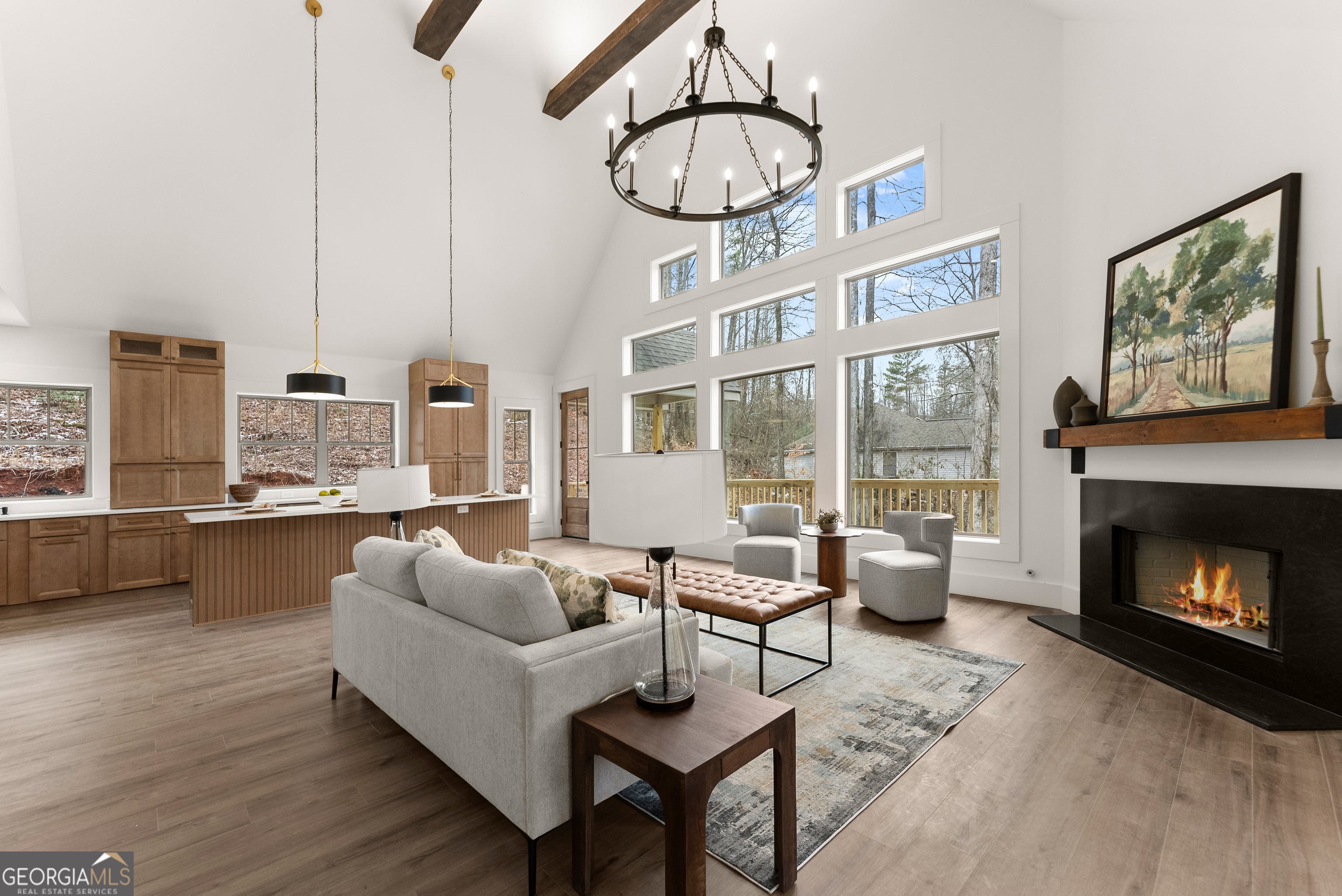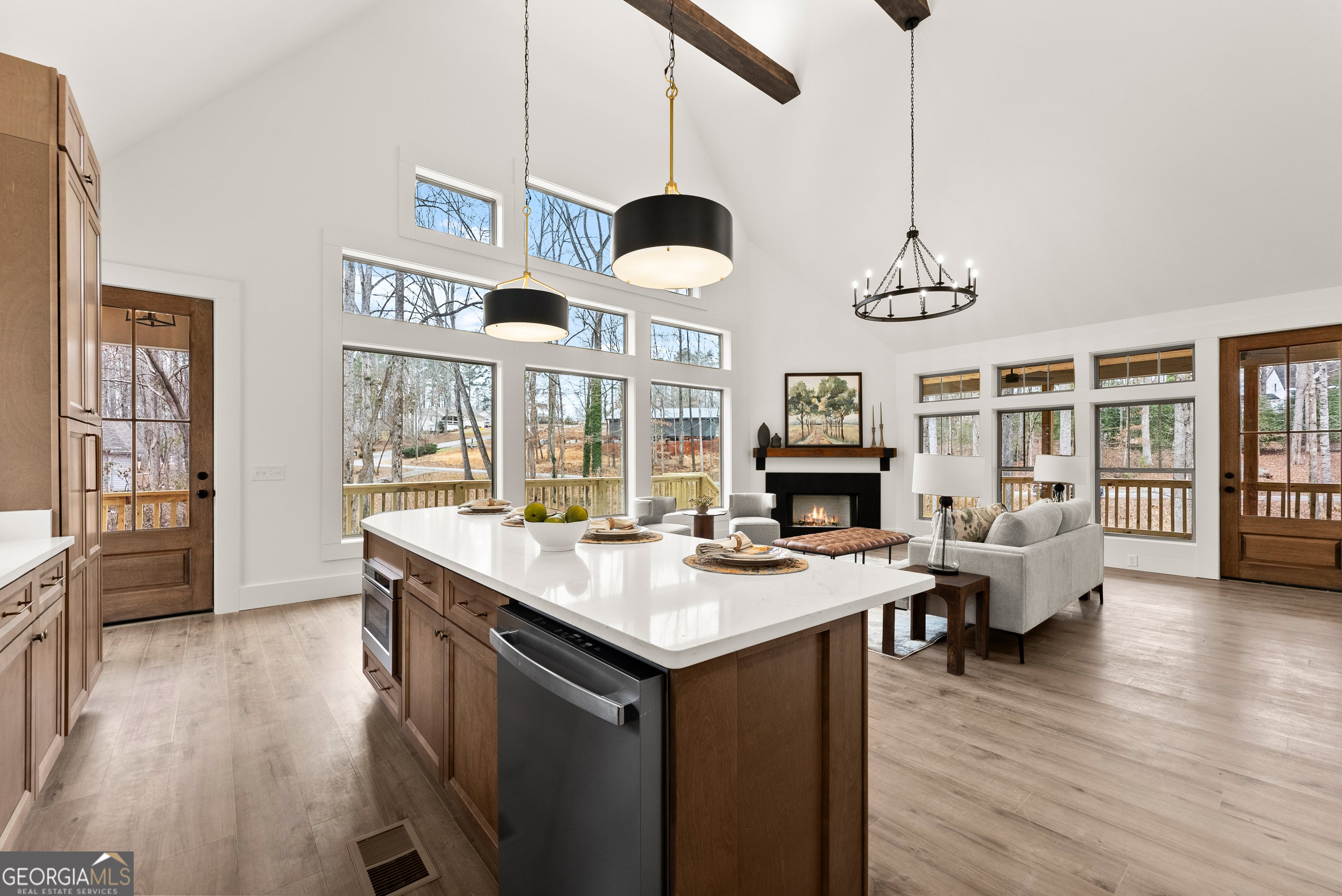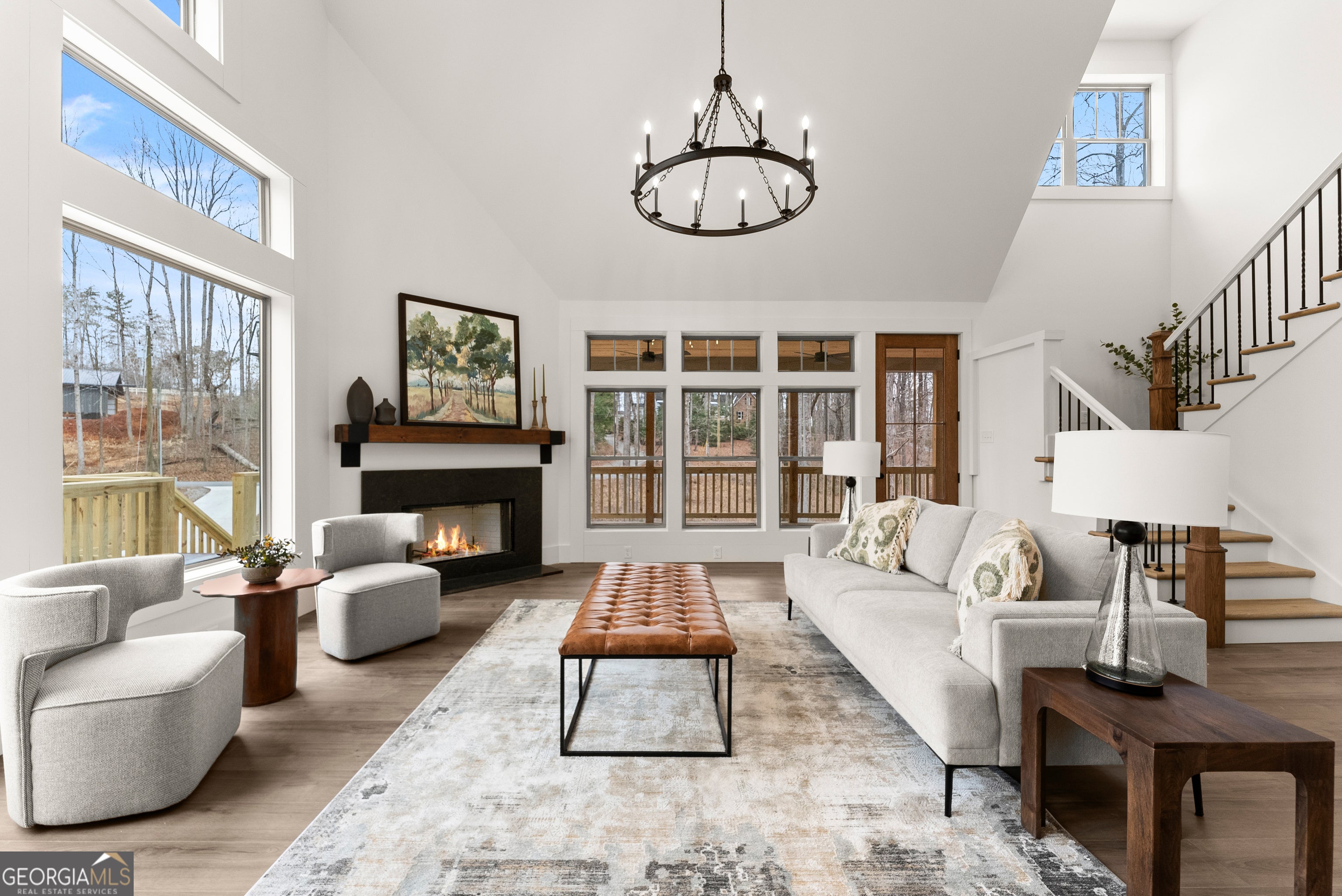 Experience luxury mountain living with rare Lake Lanier access in this brand-new construction home. Located in a quiet, private setting, this modern retreat features two natural streams in the front yard. Inside, the home is designed for comfort, style, and high-end entertaining. The oversized chef's kitchen includes premium finishes, abundant storage, and two dishwashers, making it ideal for large gatherings or everyday convenience. Enhanced lighting throughout highlights the home's craftsmanship and creates a warm, inviting ambiance. Enjoy year-round outdoor living on the large covered deck overlooking the front yard, complete with ceiling fans for added comfort. Perfect for entertaining, the home also features a gas-starter, wood-burning fireplace, creating the ultimate cozy mountain atmosphere. For future upgrades, the property comes pre-wired for a sauna in the basement and pre-wired for a hot tub outside, giving you the option to elevate your mountain-lake lifestyle even further. With its mix of modern amenities, peaceful natural surroundings, and direct access to Lake Lanier activities, this home offers the perfect blend of privacy, recreation, and luxury. Ideal as a full-time residence, vacation home, or investment property. A dock permit has not yet been applied for. Receive lender incentives when you utilize our preferred lender, Austin Saxon- Woodlake Mortgage.