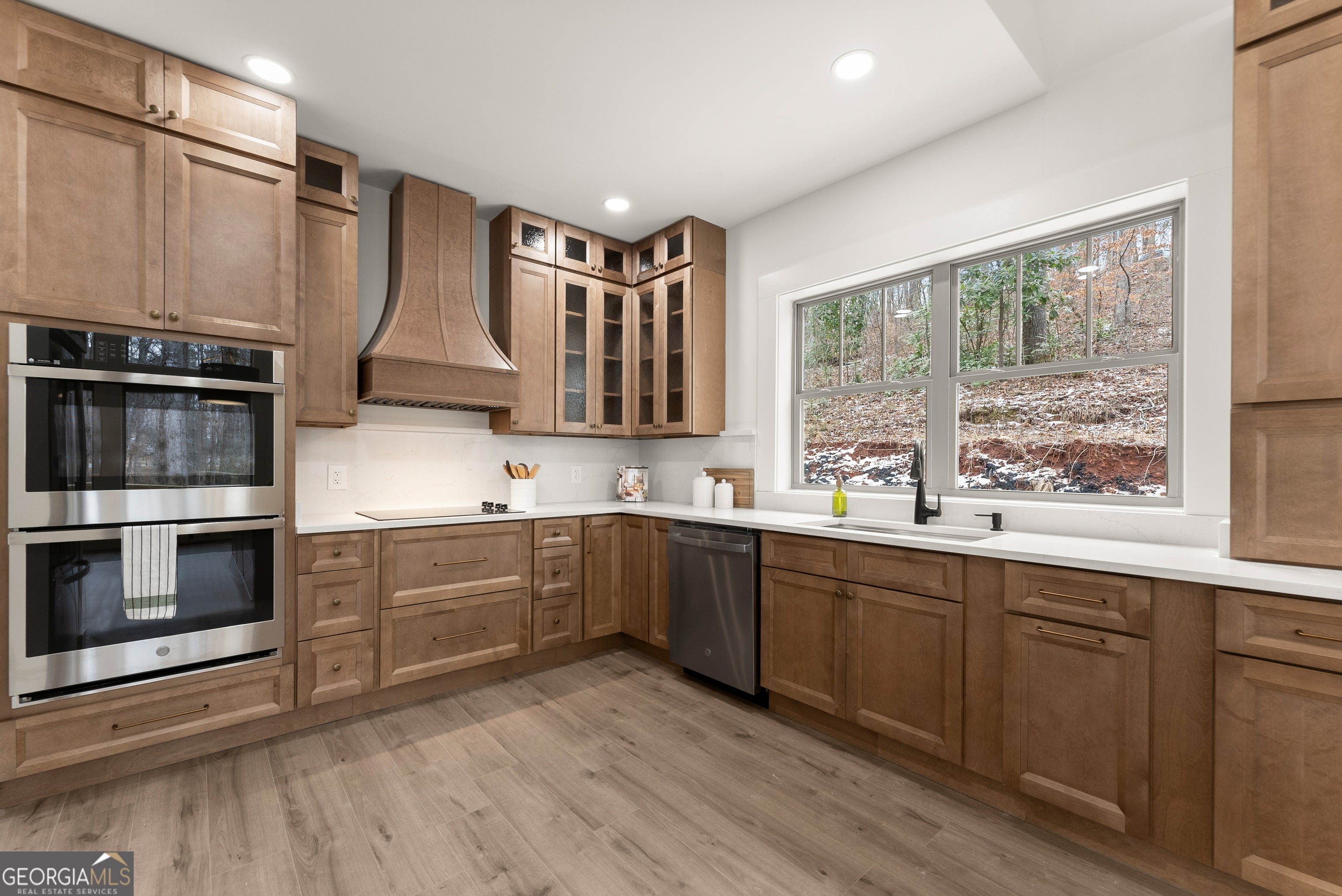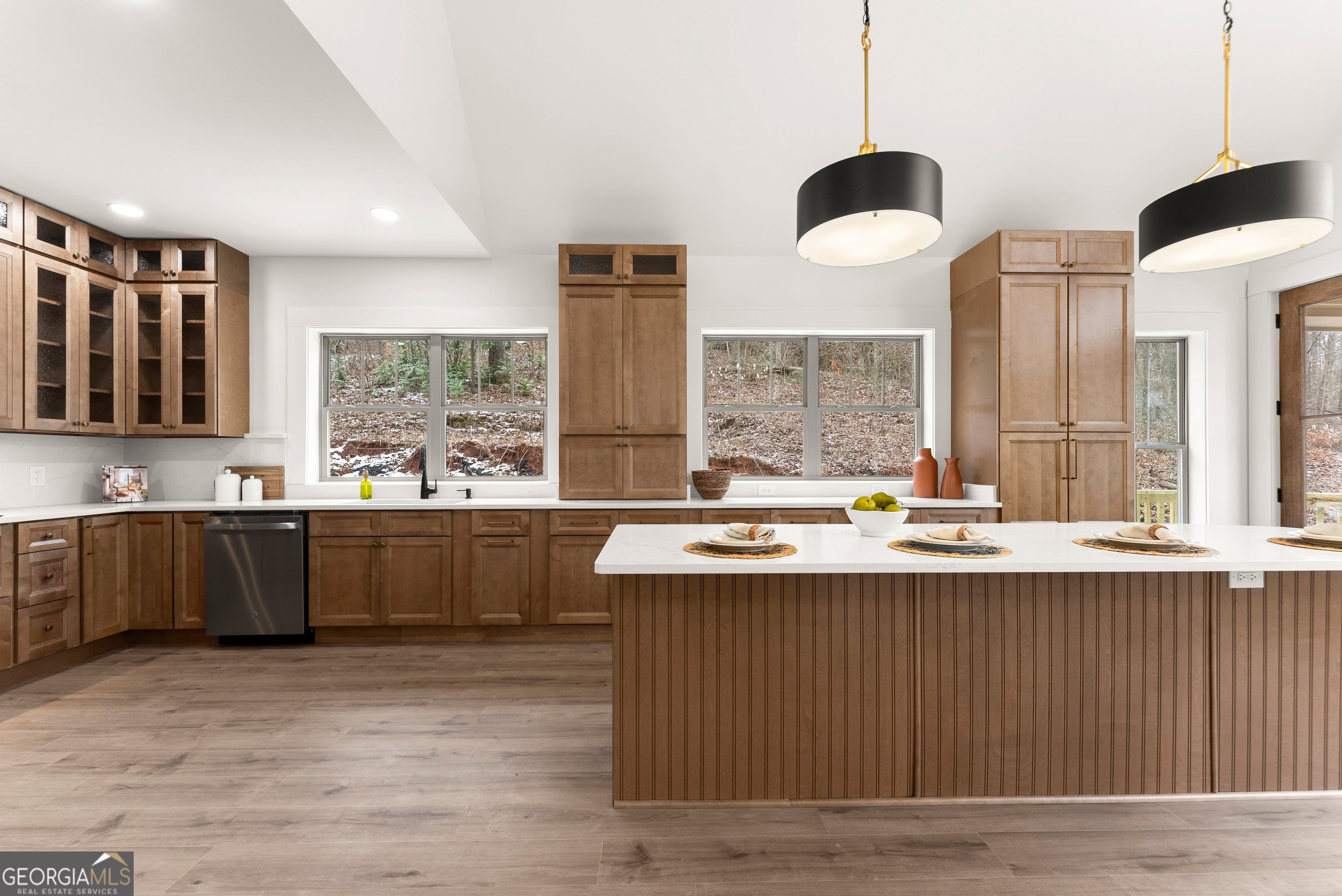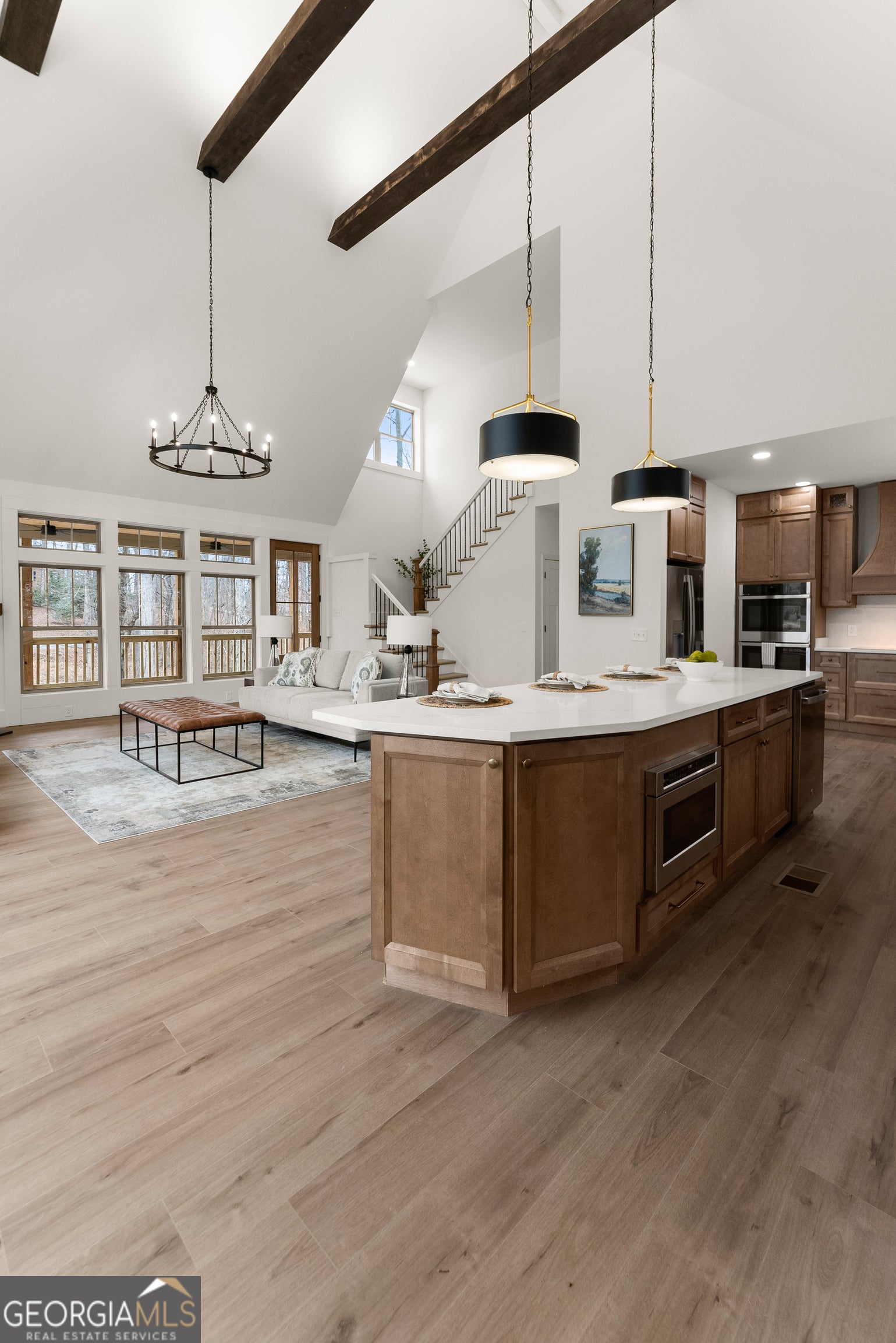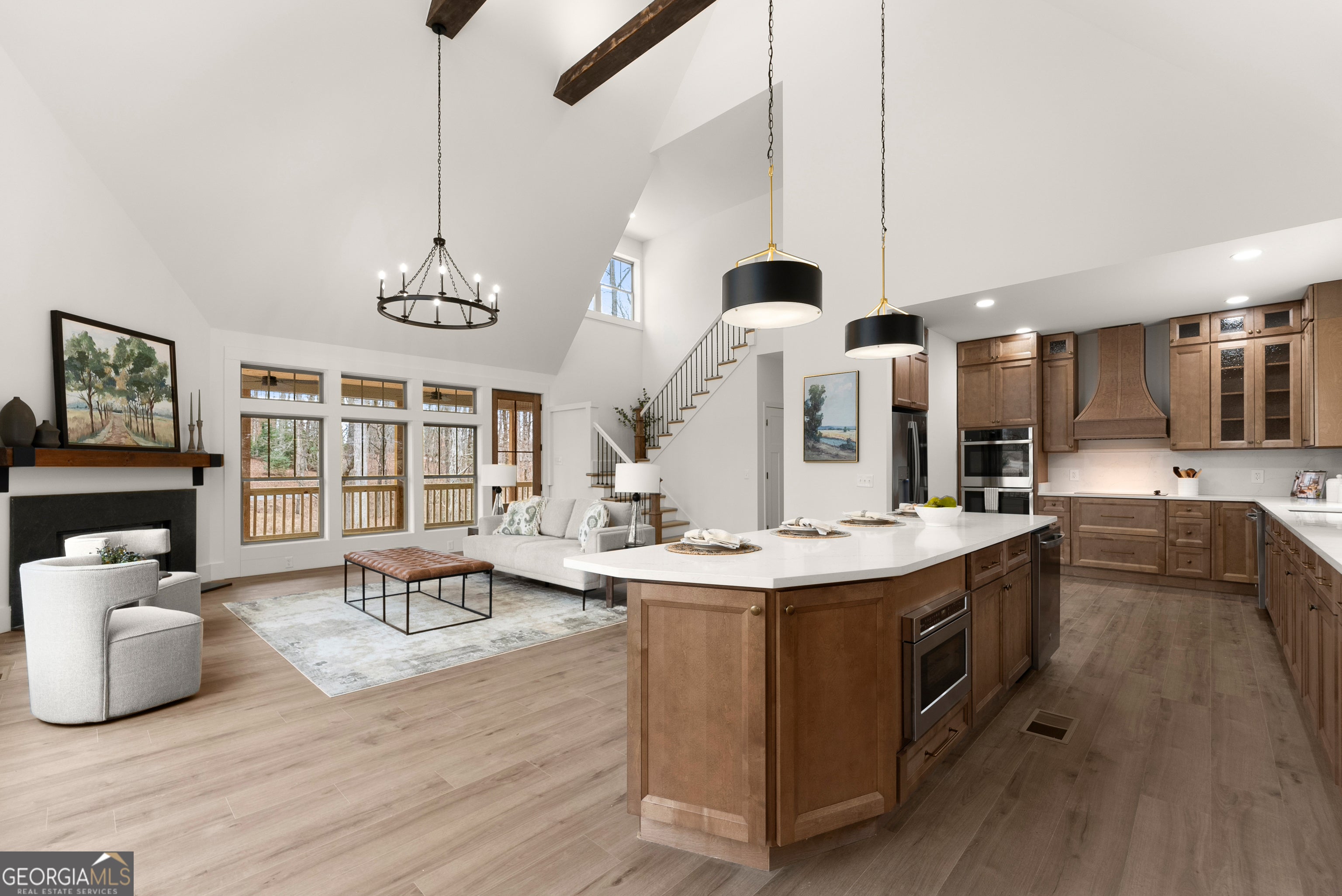 Experience luxury mountain living with rare Lake Lanier access in this brand-new construction home. Located in a quiet, private setting, this modern retreat features two natural streams in the front yard. Inside, the home is designed for comfort, style, and high-end entertaining. The oversized chef's kitchen includes premium finishes, abundant storage, and two dishwashers, making it ideal for large gatherings or everyday convenience. Enhanced lighting throughout highlights the home's craftsmanship and creates a warm, inviting ambiance. Enjoy year-round outdoor living on the large covered deck overlooking the front yard, complete with ceiling fans for added comfort. Perfect for entertaining, the home also features a gas-starter, wood-burning fireplace, creating the ultimate cozy mountain atmosphere. For future upgrades, the property comes pre-wired for a sauna in the basement and pre-wired for a hot tub outside, giving you the option to elevate your mountain-lake lifestyle even further. With its mix of modern amenities, peaceful natural surroundings, and direct access to Lake Lanier activities, this home offers the perfect blend of privacy, recreation, and luxury. Ideal as a full-time residence, vacation home, or investment property. A dock permit has not yet been applied for. Receive lender incentives when you utilize our preferred lender, Austin Saxon- Woodlake Mortgage.