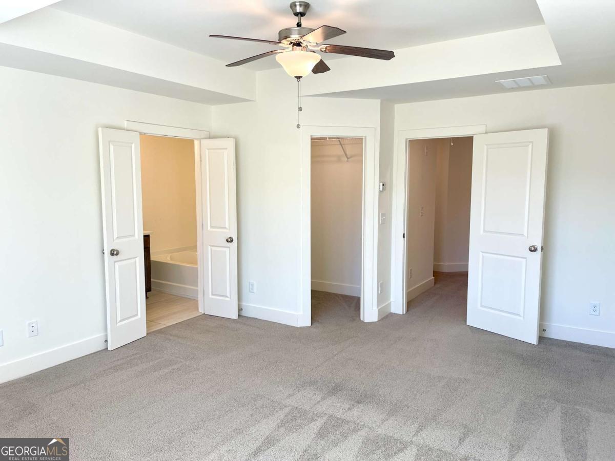 - Interior FeaturesDouble Vanity, High Ceilings, Pulldown Attic Stairs, Separate Shower, Soaking Tub, Tray Ceiling(s), Walk-In Closet(s)