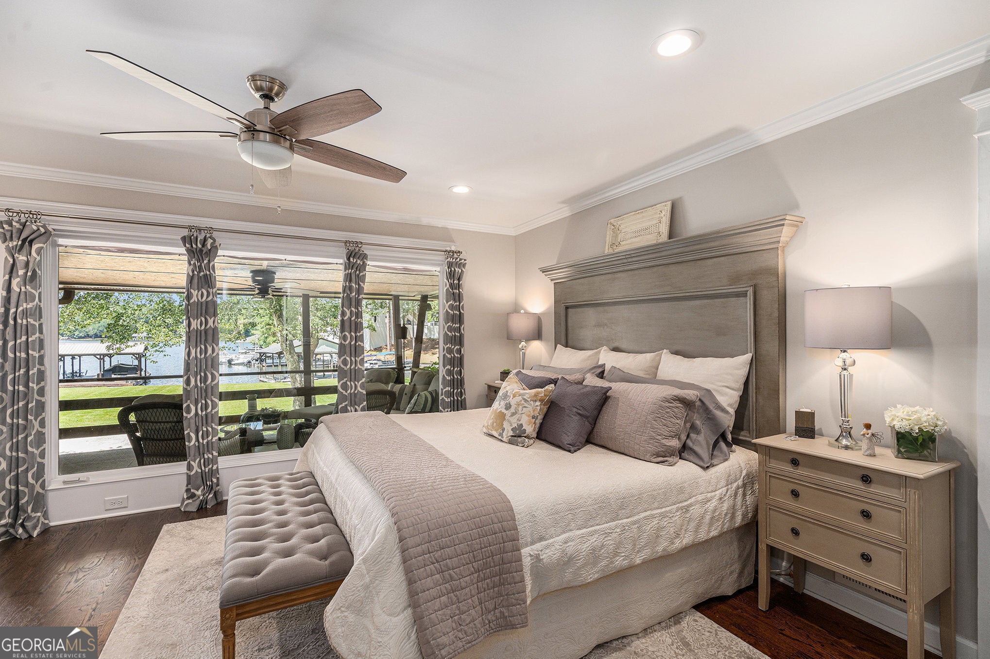 Waterfront living at its finest here on exclusive Lake Spivey. This completely renovated home features breathtaking views and a versatile floor plan with a fully finished basement. On the main level, guests are welcomed by a grand foyer with a barrel-vaulted ceiling and 4-inch red oak hardwood floors. The open-concept great room and dining room are highlighted by a stunning rock fireplace with a gas starter. The spacious kitchen is outfitted with white cabinets, double ovens, a warming drawer, a microwave drawer, and a pot filler faucet. The private primary suite features a large custom walk-in closet and relaxing primary bathroom with a slipper tub, a full shower, heated floors, built-in TV, and a full linen closet. Step from the primary bath onto a secluded patio, complete with water and electricity connections, offering an ideal spot to develop a tranquil outdoor retreat. The downstairs complete in-law suite provides comfort and privacy with its own high-end kitchen, bedroom, full bath, laundry room, den (with a stone fireplace), exercise room, and a dedicated garage. The outdoor amenities are unmatched: a level backyard with a fire pit, a covered dock, a private boat ramp, and generous outdoor living areas perfect for enjoying the lake. Embrace an active lifestyle while boating, fishing, wake boarding/surfing, water skiing, and more - just steps from your back door. Lake Spivey provides a unique, exclusive way of life as the only private lake of its size in the Southeast to permit water sports. Less than 30 minutes to downtown Atlanta and the Atlanta airport. Convenient to shopping, restaurants, I-75, and I-85.