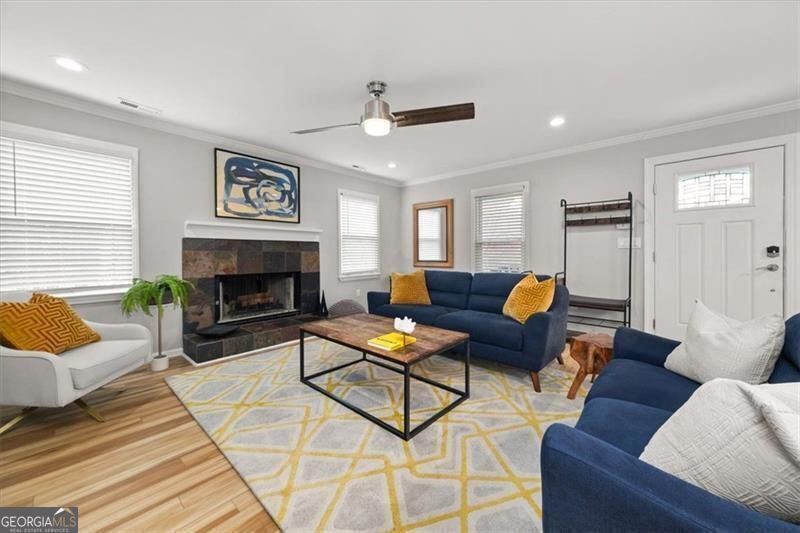 Available January 12th. Prepare to fall in love with this Charming, Fully Furnished O4W Bungalow with seasonal downtown views and private yard in the heart of the MLK Historic District. Nestled amid Federal Park land, and a block from the MLK Birth Home, this quaint home is all about location, and convenience, and enjoys both the energy and peacefulness of the city. The home built in 1995, with its rocking chair porch is designed to fit The Historic District standards and has been lovingly refurbished by the current owner. It boasts 3 bedrooms and 2 baths, brand new floors throughout, customized laundry and storage, a decorative fireplace, off street parking and a private backyard. It is located within blocks of the retail, coffee/donut shops, eateries, and greenspace. It's near all things you love about in-town living - Downtown, Water Tower Park, BeltLine, Krog Street District, Historic Fourth Ward Park, MLK Historic District, Edgewood Entertainment District, Fetch Dog Park, Freedom Park, Inman Park, and easy access to I85 and I20. As a fully furnished home, it is perfect for travelling nurses, adjunct professors, industry professionals, and insurance rentals. Agent/owner will answer any questions you have. Although the home is 3 bedrooms, the smallest bedroom it set up as an office.