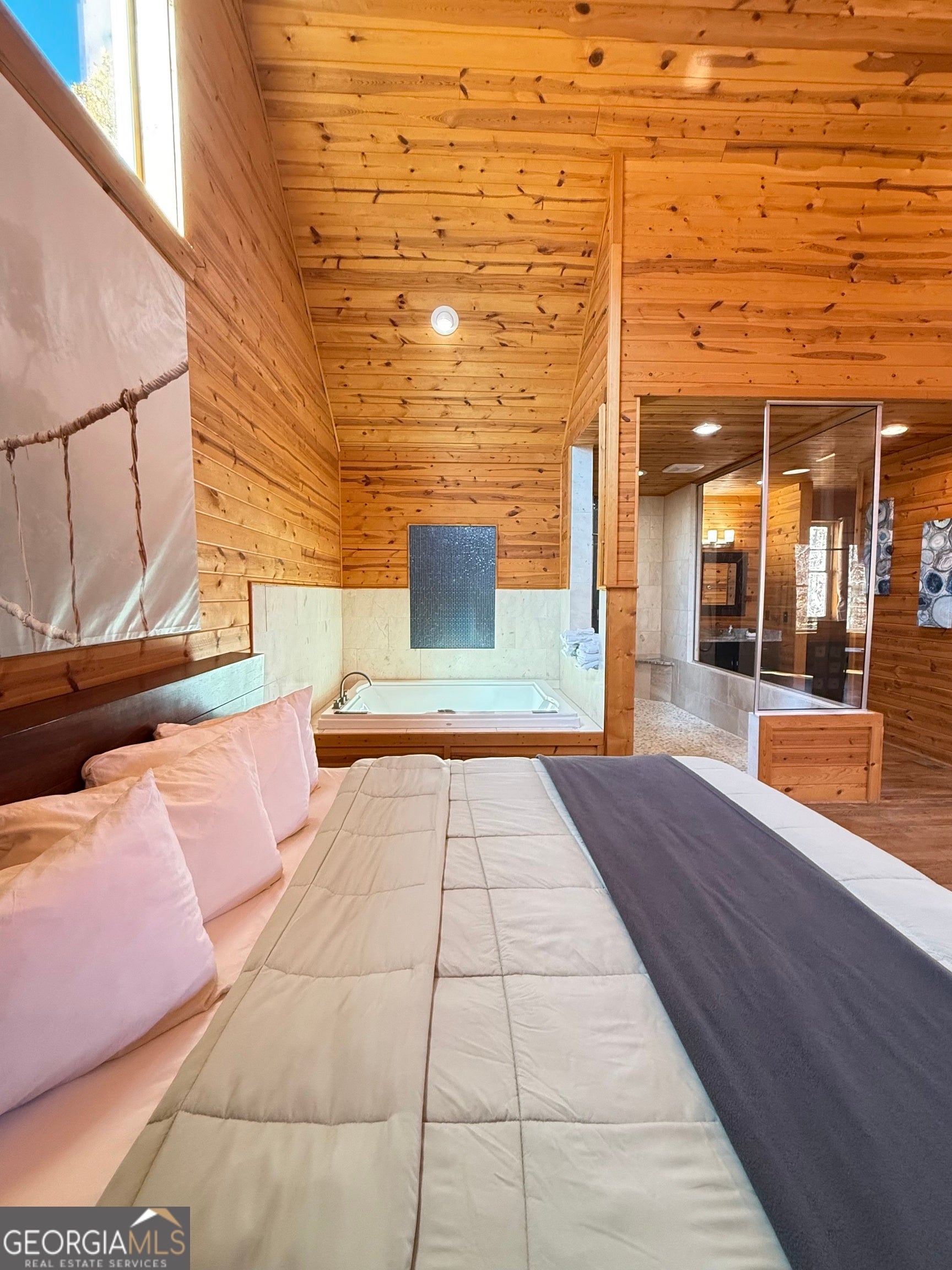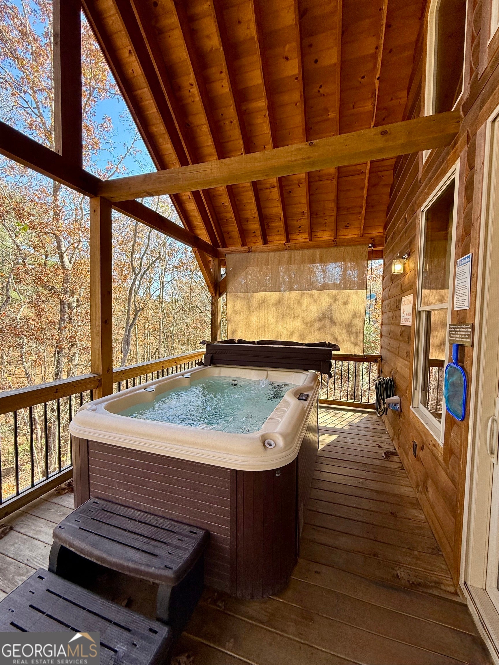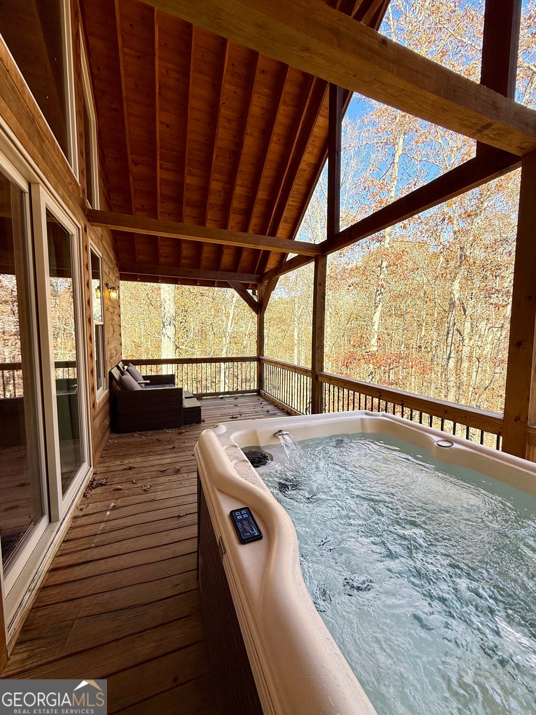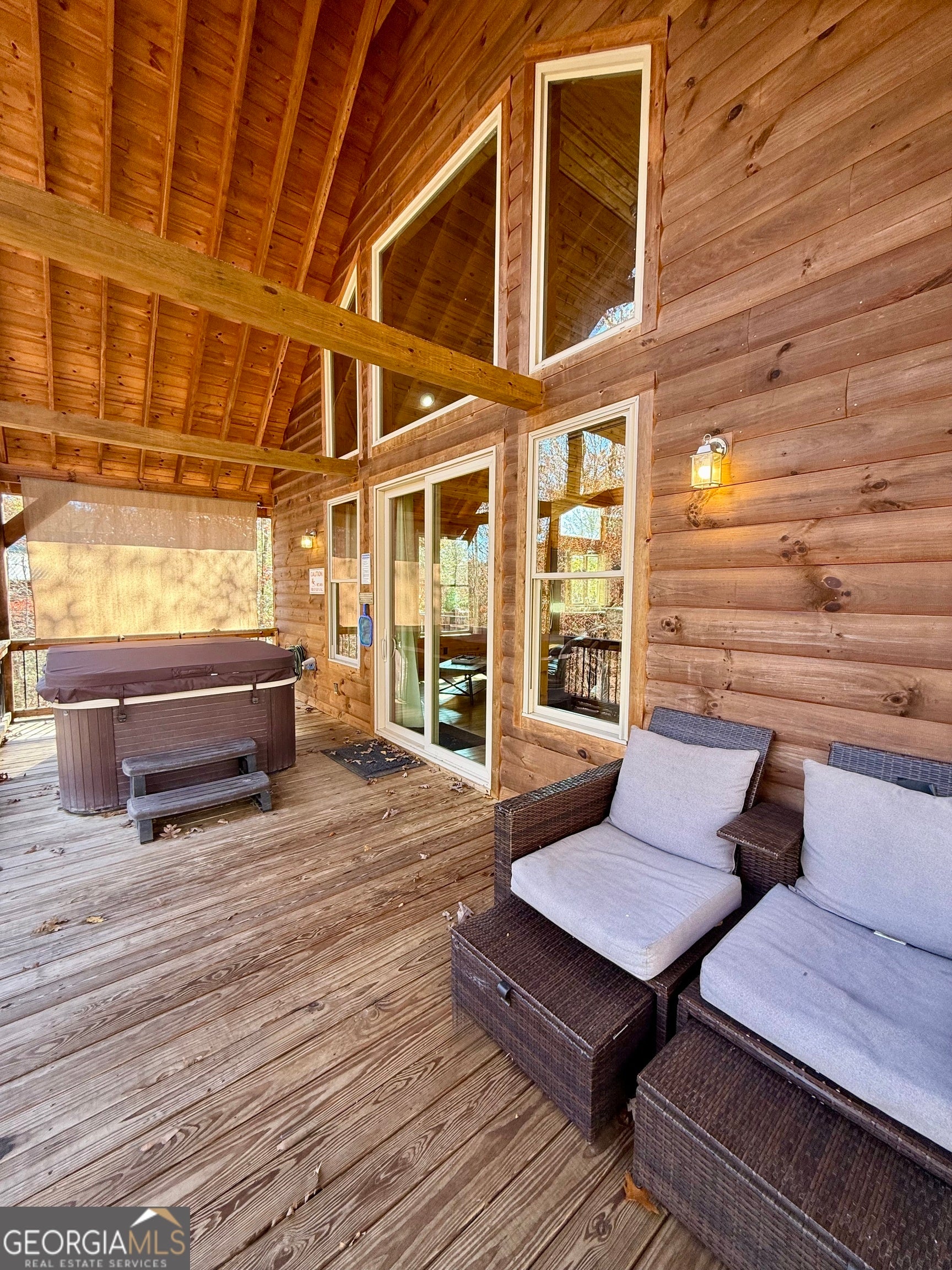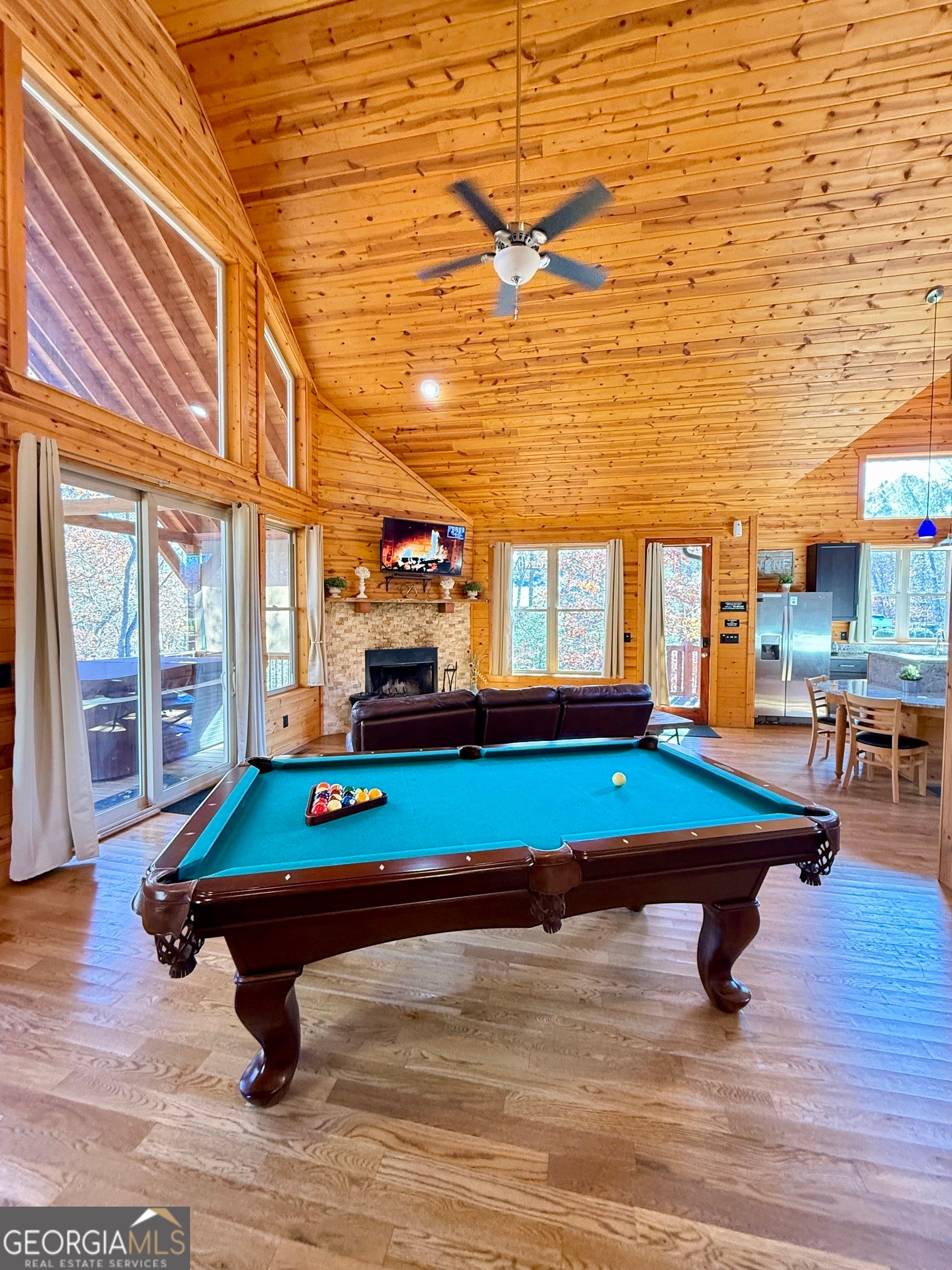 Welcome to "Oasis" - an income-producing mountain retreat ideally located at 265 Maple Ridge in Cleveland, GA. Perfectly situated near North Georgia's award-winning wineries and just minutes from Helen and Dahlonega, this charming cabin offers a true escape with outstanding rental potential. Step inside to an inviting open-concept layout highlighted by hardwood floors and tongue-and-groove walls and ceilings that create the quintessential cabin feel. The centerpiece of the home is the luxurious spa-style bathroom featuring a two-person walk-in tiled shower with dual rain shower heads, body jets, and handheld sprays, an oversized air tub, and a separate water closet. Relax in the cozy living area complete with a wood-burning fireplace, or enjoy cooking in the well-appointed kitchen with stone countertops. A laundry closet with stackable washer and dryer adds convenience. The private covered back deck is the perfect place to unwind, featuring a hot tub and peaceful wooded surroundings. Cabin is offered fully furnished, including a pool table and infrared sauna, making it turnkey for continued short-term rental success. Whether you're seeking an investment, a personal getaway, or both-Oasis delivers comfort, luxury, and an unbeatable location in the heart of North Georgia's wine country.