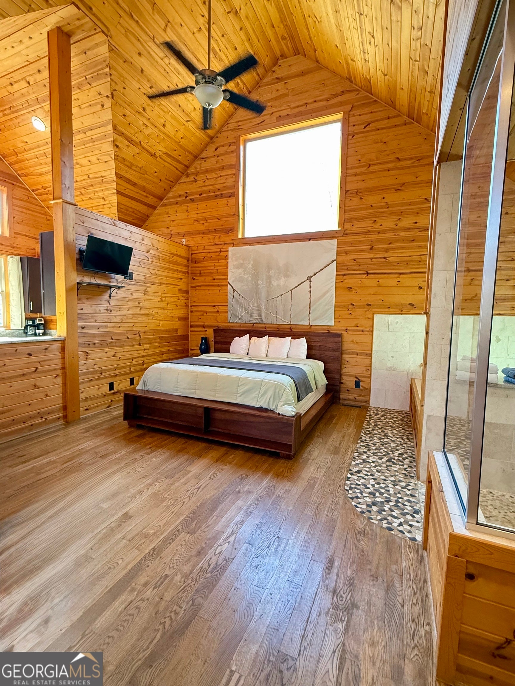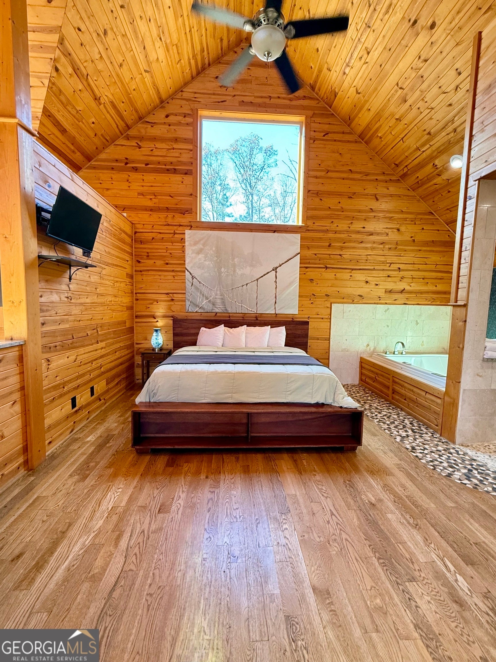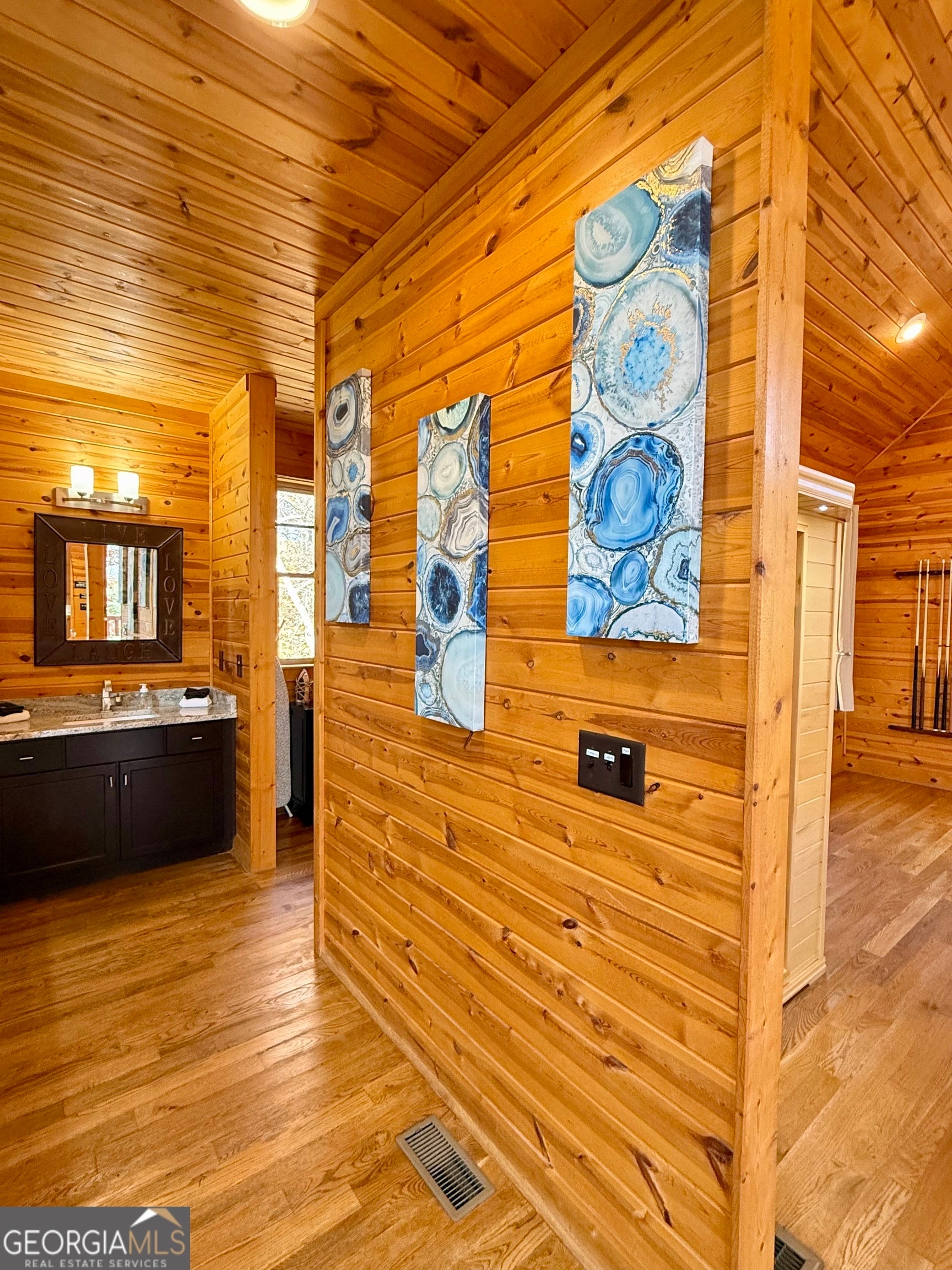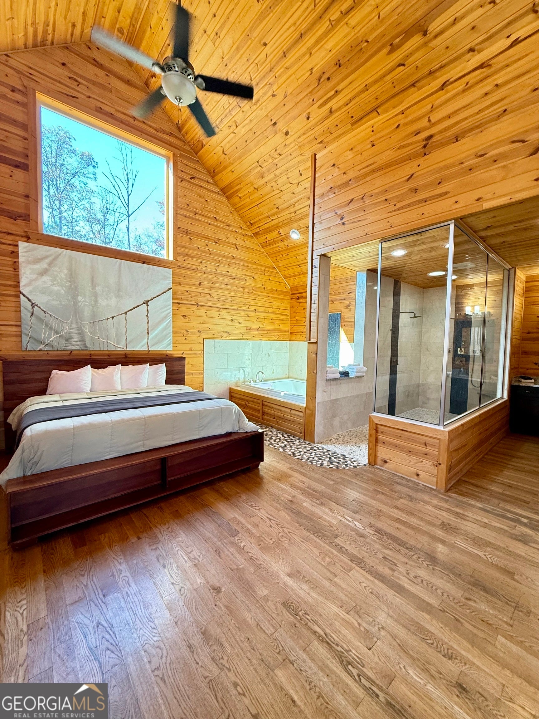 Welcome to "Oasis" - an income-producing mountain retreat ideally located at 265 Maple Ridge in Cleveland, GA. Perfectly situated near North Georgia's award-winning wineries and just minutes from Helen and Dahlonega, this charming cabin offers a true escape with outstanding rental potential. Step inside to an inviting open-concept layout highlighted by hardwood floors and tongue-and-groove walls and ceilings that create the quintessential cabin feel. The centerpiece of the home is the luxurious spa-style bathroom featuring a two-person walk-in tiled shower with dual rain shower heads, body jets, and handheld sprays, an oversized air tub, and a separate water closet. Relax in the cozy living area complete with a wood-burning fireplace, or enjoy cooking in the well-appointed kitchen with stone countertops. A laundry closet with stackable washer and dryer adds convenience. The private covered back deck is the perfect place to unwind, featuring a hot tub and peaceful wooded surroundings. Cabin is offered fully furnished, including a pool table and infrared sauna, making it turnkey for continued short-term rental success. Whether you're seeking an investment, a personal getaway, or both-Oasis delivers comfort, luxury, and an unbeatable location in the heart of North Georgia's wine country.