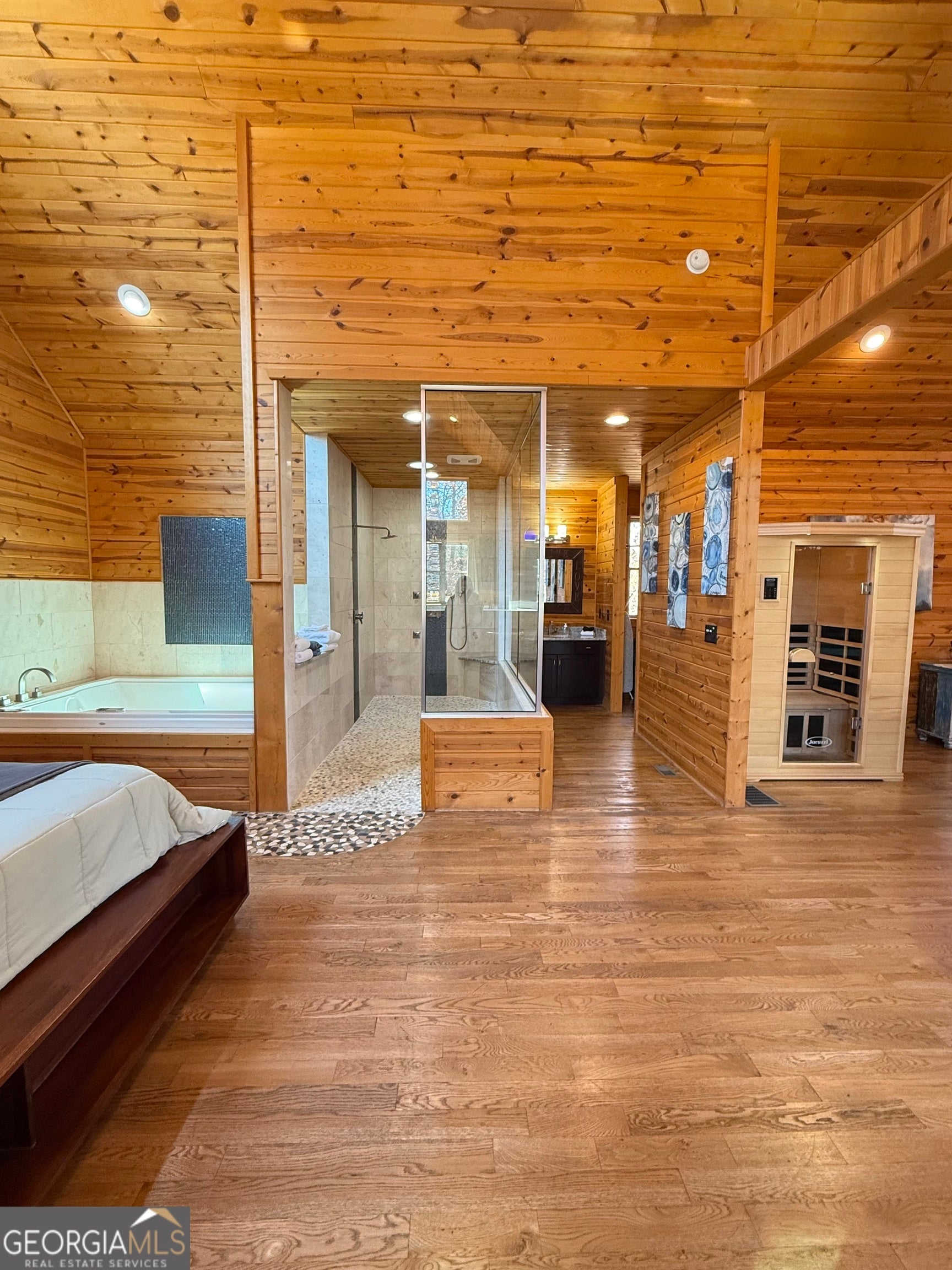 - Interior FeaturesHigh Ceilings, Separate Shower, Whirlpool Bath, Sauna