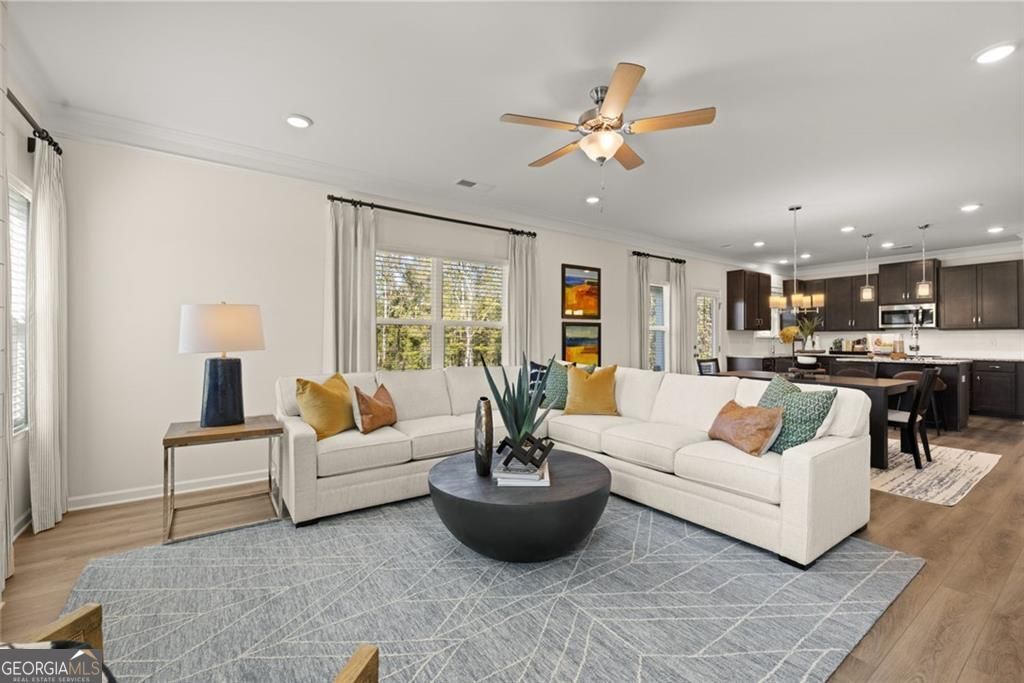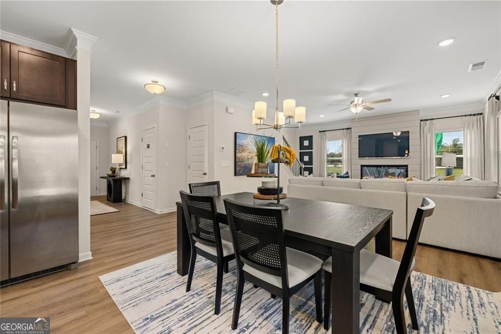 Move-In Ready March! The McGinnis plan by Smith Douglas Homes a stunning new construction home in Jones Ridge. This home offers modern living, exceptional design, and a highly desirable 1/3-acre+ homesite. Step inside to a wide, welcoming entryway that leads to a traditional dining room, ideal for entertaining and gatherings. The rear of the home features an open-concept kitchen and family room, perfect for today's lifestyle. Enjoy gas appliances, abundant counter space, and direct access to the backyard. The spacious family room includes a gas fireplace, creating a warm and inviting atmosphere. Just outside, a large 10x20 patio provides excellent outdoor living space for relaxing, grilling, or hosting. The main floor boasts durable LVP flooring throughout, offering both style and easy maintenance. Upstairs, the private primary suite is a true retreat with a walk-in closet and a spa-like primary bath with a separate tub and shower. Three additional secondary bedrooms each feature their own walk-in closets, delivering outstanding storage. A roomy secondary bath, open loft area, and convenient upstairs laundry room add functionality and comfort. For flexible living, the main level also offers optional configurations, including a first-floor study or fifth bedroom. This move-in ready new construction home in Paulding County provides space, comfort, and value in the sought-after Jones Ridge neighborhood. With upgraded features, a spacious homesite, and quality craftsmanship by Smith Douglas Homes, The McGinnis is a must-see for buyers seeking a beautiful home in Dallas, GA. Seller incentives with use of preferred lender. Photos representative of plan not of actual home.
