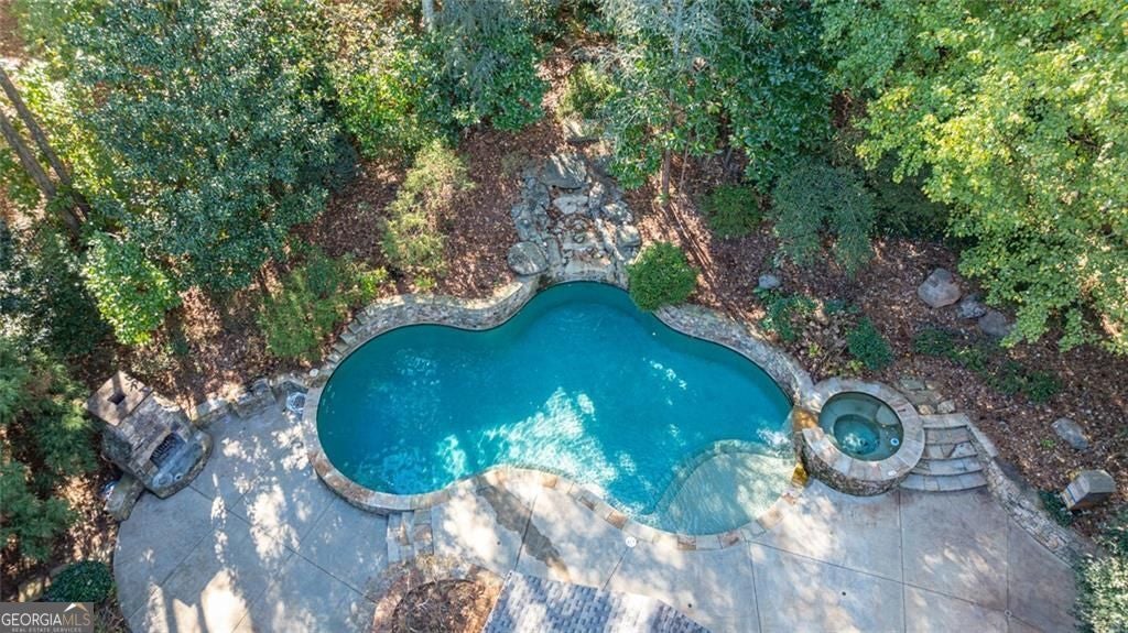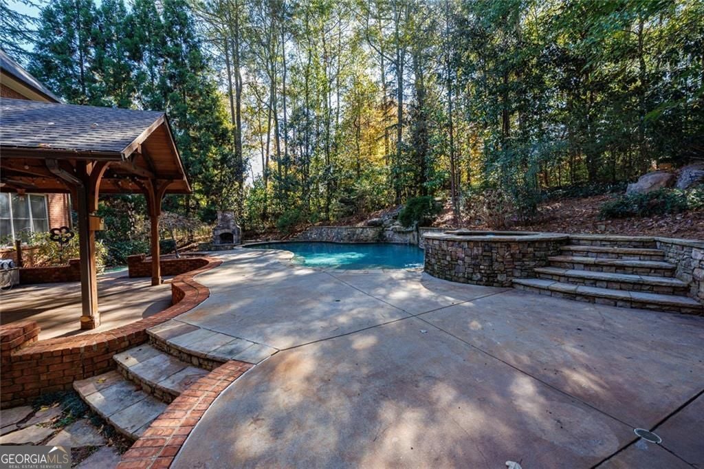 Nestled on a private cul-de-sac in prestigious Sugarloaf Country Club, this exquisite residence features a sought-after walkout pool and outdoor living area. The owners have a florist/ plant business so there are gorgeous plants and flowers everywhere! There is significant wooded space behind the outdoor living areas for the new owner to create more green space, plant fruit trees or further customize your outdoor space. The house offers refined living with timeless architectural details. Designed for both grand entertaining and everyday comfort, the home showcases soaring ceilings, an open floor plan, and elegant custom finishes throughout. The gourmet kitchen is a culinary masterpiece featuring high ceilings, premium appliances, and an adjoining keeping room with a cozy fireplace-perfect for relaxed gatherings. The kitchen, keeping room, and living room all overlook the walkout pool and outdoor living area, creating seamless indoor-outdoor flow. Upstairs, the luxurious primary suite is a private retreat with a spacious sitting area and fireplace, private wet bar, dual vanities, spa tub, oversized shower, and a generous walk-in closet. Four additional ensuite bedrooms each offer private baths and walk-in closets, providing comfort and privacy for family and guests. Step outside to your resort-style backyard, complete with a sparkling pool (8.5 feet deep for jumping/ diving), spa, covered patio, stone fireplace, and beautifully landscaped gardens. The fully fenced backyard ensures total privacy, ideal for entertaining, creating more green space or planting your favorite plants. Additional highlights include four fireplaces throughout the home and outdoor living area, a new roof (2024), updated HVAC systems (2023), and an unfinished daylight terrace level ready to be customized to your vision.