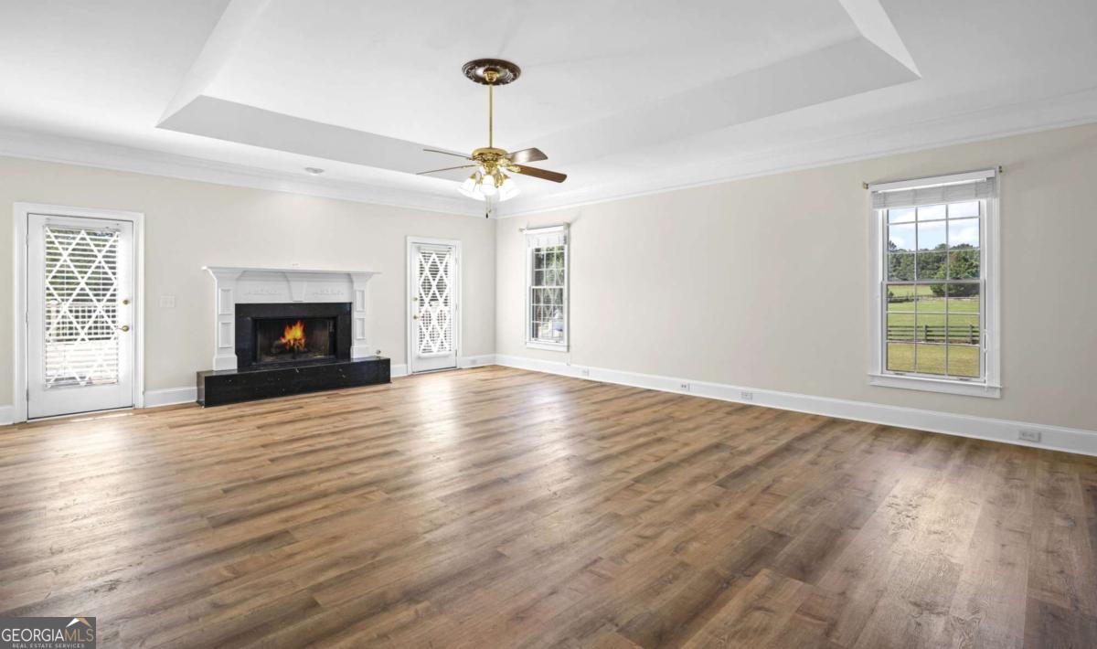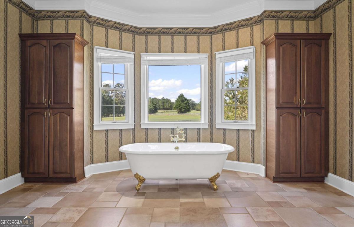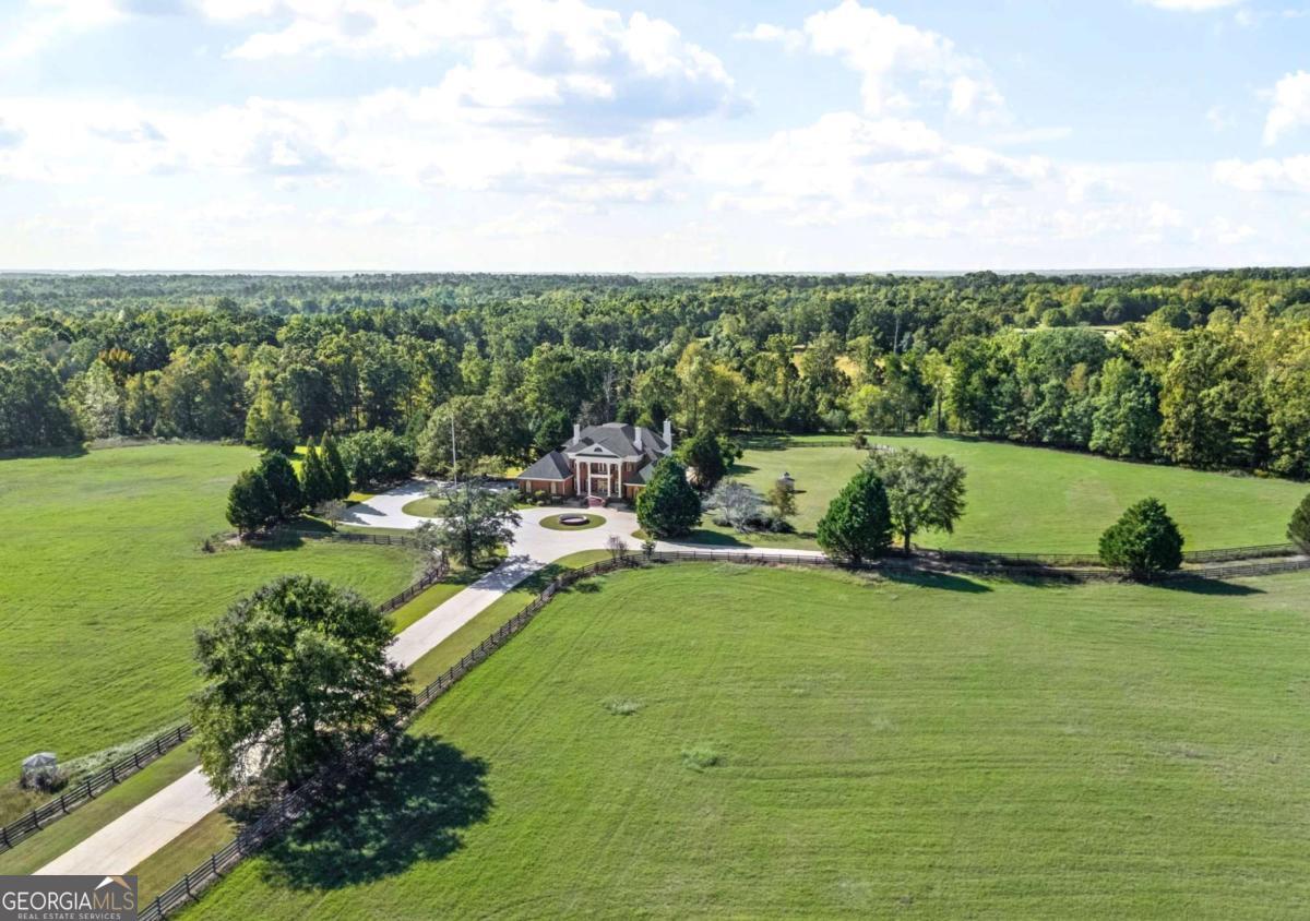 Live the Equestrian Dream. Beautiful Fox Run Farms is located in a quiet all-farm corridor of upscale farms, family farms and equestrian properties in Mansfield GA. For those seeking the "country-life" and charm of small-town living, yet quick accessibility to Athens, Atlanta, Aiken and Lake Oconee, this idyllic farm will capture your heart. WITH TWO RESIDENCES, this 47 acre equestrian estate holds endless possibilities, from a family compound, to a full-fledge equestrian center, a potential wedding/event venue, an income-producing property, as well as a fabulous long-term investment. The dual-entrance estate (farm/equestrian side) and (main residence entrance) hosts dual residences (main residence/farm residence) located on 47 picturesque acres of natural beauty, including a two-acre lake, rich established pastures, mature hardwoods, and a tranquil setting. The elegant iron-gated entrance invites you to the farm, followed by a picturesque 550 feet paved tree-lined drive, with a welcoming fountain enhancing the classic architecture of this brick beauty. Beautifully landscaped, there are breath-taking views of all the surrounding pastures and not a sound to be heard! Exhibiting timeless quality, the interior of this custom home is a lovely blend of "classic" ( the gorgeous entry staircase) with 2025 "comfortable" (the open floorplan off the huge kitchen, the stone-stacked hearth in family room, the outdoors-in style featuring a brand new (huge) deck running the entire length of home). Perfect for entertaining and gathering, this open concept fills the home with light and overlooks the beautiful pool and gardens area. Dine al-fresco on the "Southern-living" screened porch off breakfast area, or entertain lavishly on the huge rear deck. The large kitchen features 6-burner gas stove, double ovens, wine fridge, center island, stone countertops and backsplash, beautiful mill-work and breakfast area. The primary suite on main level opens to rear deck, includes fireplace and oversized bath with a custom dress-in cedar closet. Two front-facing rooms ( one a formal dining, the second could make a lovely home office on main) complete the main-floor footprint. The second-level (with rear staircase) features a loft, and 4 additional bedrooms with large closets, two baths. The terrace level (2120 square feet) is partially-finished, stubbed for bath, has a safe room, beaucoup storage space, and opens to outdoor spaces (shaded patio) then pool. With its own exterior entrances, this space could easily become an in-law suite or apartment for extended family. With an internationally-renowned trainer in the neighborhood, you and your horses can live happily ever after on this fabulous equestrian estate! Entirely fenced and cross-fenced, entirely FENCED road frontage, a 2 acre lake, 14-stall well-constructed barn (runouts and over-sized stalls), separate well for barn, two arenas (uncovered, sanded, lighted), equip storage, shavings shed, parking, separate farm entrance and separate drive corridor to home, numerous flat established pastures (some shaded), hay pastures, woods on property for trails, move-in ready for horses. A 2024 NEWLY- CONSTRUCTED immaculate 3 bedroom/2 bath residence on second story of barn, spacious, lovely and never-lived-in with views of pastures and horses. Pastures are established, well-drained and NO flood zone! Mansfield is located 45 miles from Athens, 48 miles from Atlanta, 55 miles from Macon and 125 miles from Aiken. Mansfield has the charm of a small town yet access to all the amenities and conveniences of a larger city; proximity to several parks and forests for trail riding, close to Lake Sinclair and 45 miles to Lake Oconee. It's quick access to I-20 offers the unique blend of peaceful country living, yet with quick access to metro counties, airports, etc. Fox Run farms is awaiting its new family, and is move-in ready for you, your horses, trainers, barn help, and extended family. Schedule your showing today!