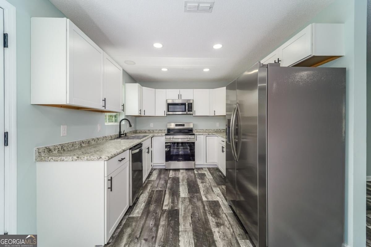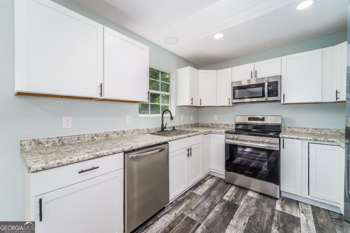 Welcome to 117 Royal Circle - a beautifully remodeled home that feels brand new from top to bottom! This 3-bedroom, 2- bathroom home offers 1,272 square feet of modern comfort and style. Enjoy peace of mind with a new roof, new vinyl siding, new paint, and new flooring throughout. The kitchen is equipped with new stainless steel appliances, sleek finishes, and flows seamlessly into the open- concept great room - perfect for entertaining or everyday living. Bright LED lighting creates a warm, inviting atmosphere in every room. The spacious, fully fenced backyard offers a private outdoor space for relaxing, pets, or gatherings. Additional features include an attached one-car garage and a quiet, friendly neighborhood setting. This home is an excellent opportunity for first-time buyers looking for a truly move-in-ready option. Co-op offered to all buyer agents. Seller holds a Georgia real estate license.