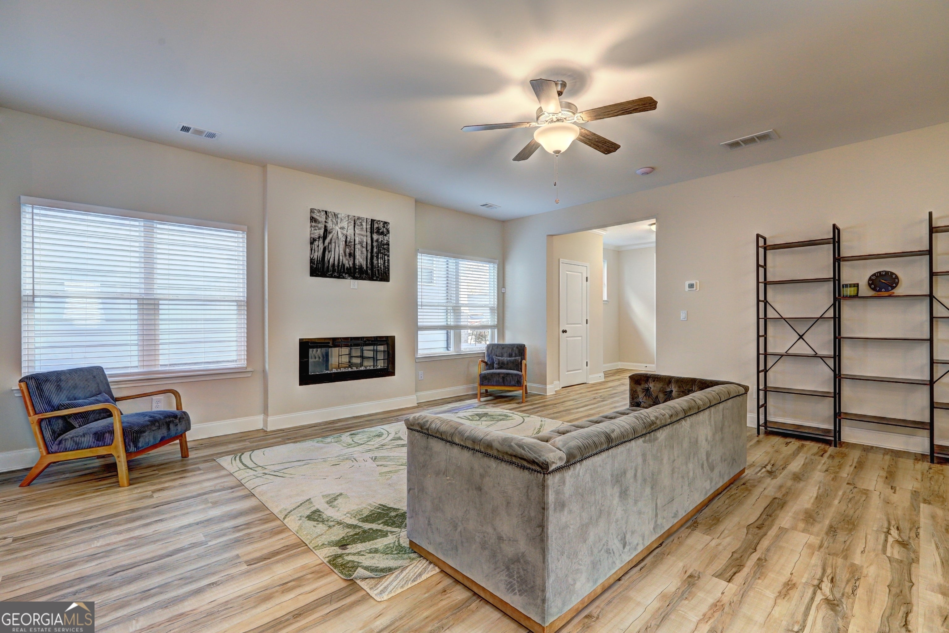 Welcome to this stunning modern style corner lot home in the Prime Buford Location. Built in 2021, comes with 4 beds and 3 full baths, 2902 sq ft, nestled on a premium corner lot. This stunning farmhouse-style property offers a perfect mix of privacy, charm, and modern convenience. This beautifully designed two-story residence boasts a pristine white exterior , creating a timeless and elegant curb appeal. The home features a covered front porch with classic columns, perfect for enjoying morning coffee or evening relaxation. The main level features an open concept living area flooded with natural light from numerous windows, featuring luxury LVP flooring throughout the entire main level, a wide entry hallway that flows seamlessly into the living area, with a spacious kitchen including white cabinetry, granite countertops, a walk-in pantry, and a large center island. The kitchen flows into the family room, creating a great space for everyday living and entertaining. The heart of the home is the gourmet kitchen, showcasing sleek white cabinetry, a beautiful farmhouse sink, a large center island with seating, stainless steel appliances, and stylish pendant lighting. The adjacent dining area opens to a cozy living room, complete with a modern electric fireplace for those chilly evenings. Upstairs, you'll find four generously sized bedrooms, including a luxurious owner's suite with a walk-through closet. The master suite is a true retreat, featuring a spacious bedroom with a tray ceiling and ceiling fan. The en-suite bathroom is a spa-like oasis with a double vanity, large walk-in shower, and separate soaking tub. Additional bedrooms are generously sized and flooded with natural light. Additional highlights include oversized closets, ample natural light, and a well-designed layout that maximizes space and functionality. This move-in-ready home combines modern conveniences with classic charm, offering a comfortable and stylish living experience in a friendly community setting. ** HOA covers lawn care, landscaping, and tree maintenance. Neighborhood amenities include walking trails and a dog park. ** Prime Location: Just minutes to the Mall of Georgia, Lake Lanier, I-85, I-985, and everyday shopping like Kroger, Walmart, and Publix. Don't miss this opportunity to own a move-in-ready home in the Seckinger High School district-an area known for its innovative programs and strong community appeal. Don't miss this incredible opportunity-schedule your showing today!
