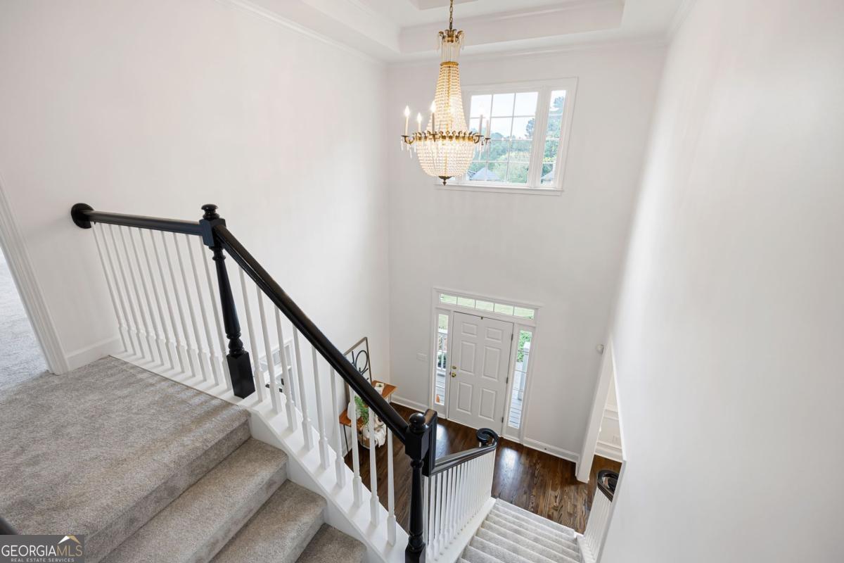 - Interior FeaturesBookcases, Double Vanity, High Ceilings, Pulldown Attic Stairs, Separate Shower, Soaking Tub, Two Story Foyer, Vaulted Ceiling(s), Walk-In Closet(s), Tile Bath, Tray Ceiling(s)