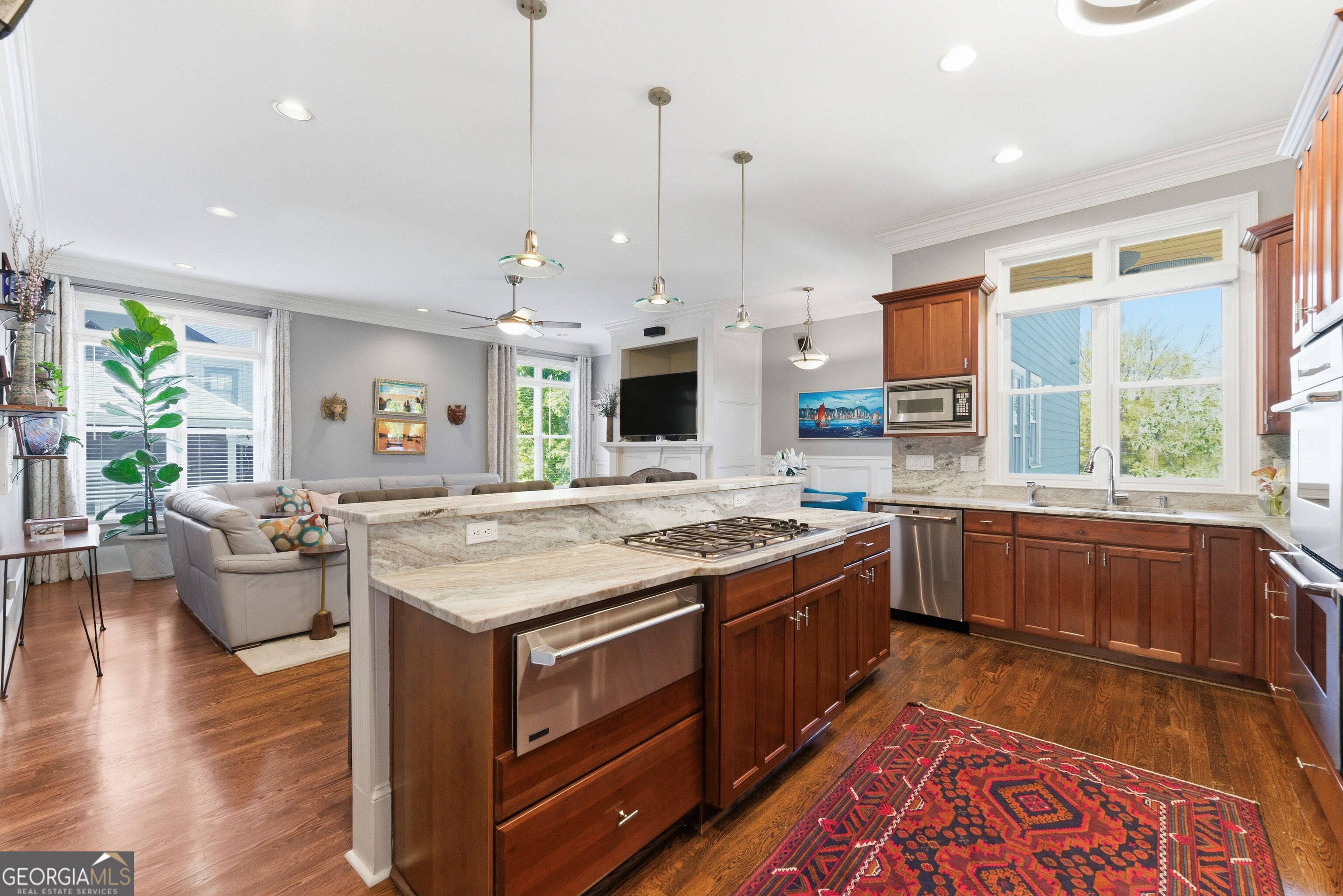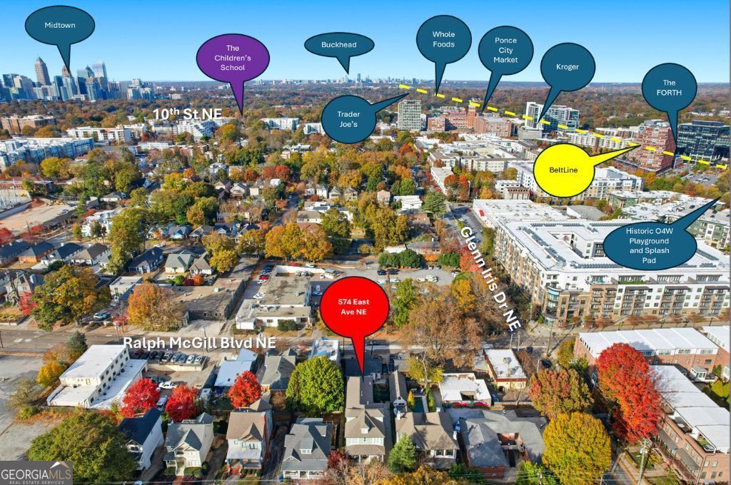 If you've been waiting for the Old Fourth Ward home-the one with walk-everywhere access, unforgettable outdoor spaces, and smart income potential-this is it. Set on coveted East Ave, the residence sits steps from the Eastside BeltLine, Historic Fourth Ward Park and Skatepark, the new neighborhood social/fitness club, award-winning dining, Ponce City Market, and Krog Street Market; a short scooter or bike ride reaches Centennial Olympic Park, Mercedes-Benz Stadium, and State Farm Arena. A gated, south-facing flagstone garden greets you with koi gliding beneath Japanese maples and the sound of water softening the city. The broad front porch is a neighborhood magnet-porch-side conversations, friendships that take root, and O4W's legendary Halloween street party right out front. Inside, a carved front door with dogwood-emblemed stained glass (in the Old Fourth Ward style) opens to 10' ceilings, rich wainscoting and crown, red and white oak floors, and arched transitions that set a refined tone. A fireside sitting room welcomes conversation; a formal dining room hosts milestone dinners. The butler's pantry leads to a chef's kitchen with Sub-Zero, double Thermador ovens plus warming drawer, Thermador range, leathered quartzite, and Rev-A-Shelf storage. The breakfast bar and banquette open to a gracious living room with gas fireplace and an all-season screened porch with natural-gas hookup-ideal for al-fresco meals or crisp morning air. Upstairs, the fireside primary suite offers generous closets and a spa-caliber bath with travertine, a jetted soaking tub, dual vanities, a separate glass-enclosed shower, and a private water closet. Two additional bedrooms enjoy en-suite baths; a fourth large bedroom connects via Jack-and-Jill to a smaller bedroom/office. All five bedrooms feature large walk-in closets and direct bathroom access. A top-floor bonus with half bath flexes as studio, play space, or office. On the terrace level, a custom wine cellar-vintage French riddling racks and EuroCave-sets the stage for tastings before movie nights in the theater. A serene bath, a multi-purpose transition room, and clever storage (including a hidden room) make the level as practical as it is indulgent. The attached three-car garage (epoxy floor, Flow-Wall storage) opens directly into the home for true lock-and-leave convenience. Out back, the property lives like a private club: TimberTech/Azek composite decks, an under-deck kitchenette and lounge, low-maintenance turf, landscape lighting, and an oversized Swim Spa with powerful swim jets and spa seating. Backyard BBQs, game-day gatherings, twilight dinners-this is where memories multiply. A major advantage is the private-entry, updated one-bedroom apartment-ideal for offsetting costs, guest independence, or a quiet studio. It includes a full kitchen, laundry, fireplace, a large balcony over the backyard, and a dedicated garage space off the gated drive. Documented rental history (most recently ~$1,800/month; records available); recently renovated for a long-term family stay. Quality and care are evident throughout in meticulous maintenance and major updates: two new HVAC systems (2021), two new water heaters (2021), a 2016 architectural roof, and a 2022 multi-level composite deck system. Life here is about enjoyment and venturing out, not punch lists. Beloved by its neighbors, this premier spot on East Ave is the place to be-where front-porch hellos become long conversations, where holidays spill from the dining room to the outdoor living rooms, and where daily life feels special. With income generation, true walkability, resort-style outdoor living, and a traditional plan refined for modern comfort, 574 East Ave NE is a home to thrive in, feel alive in, and be genuinely at home.