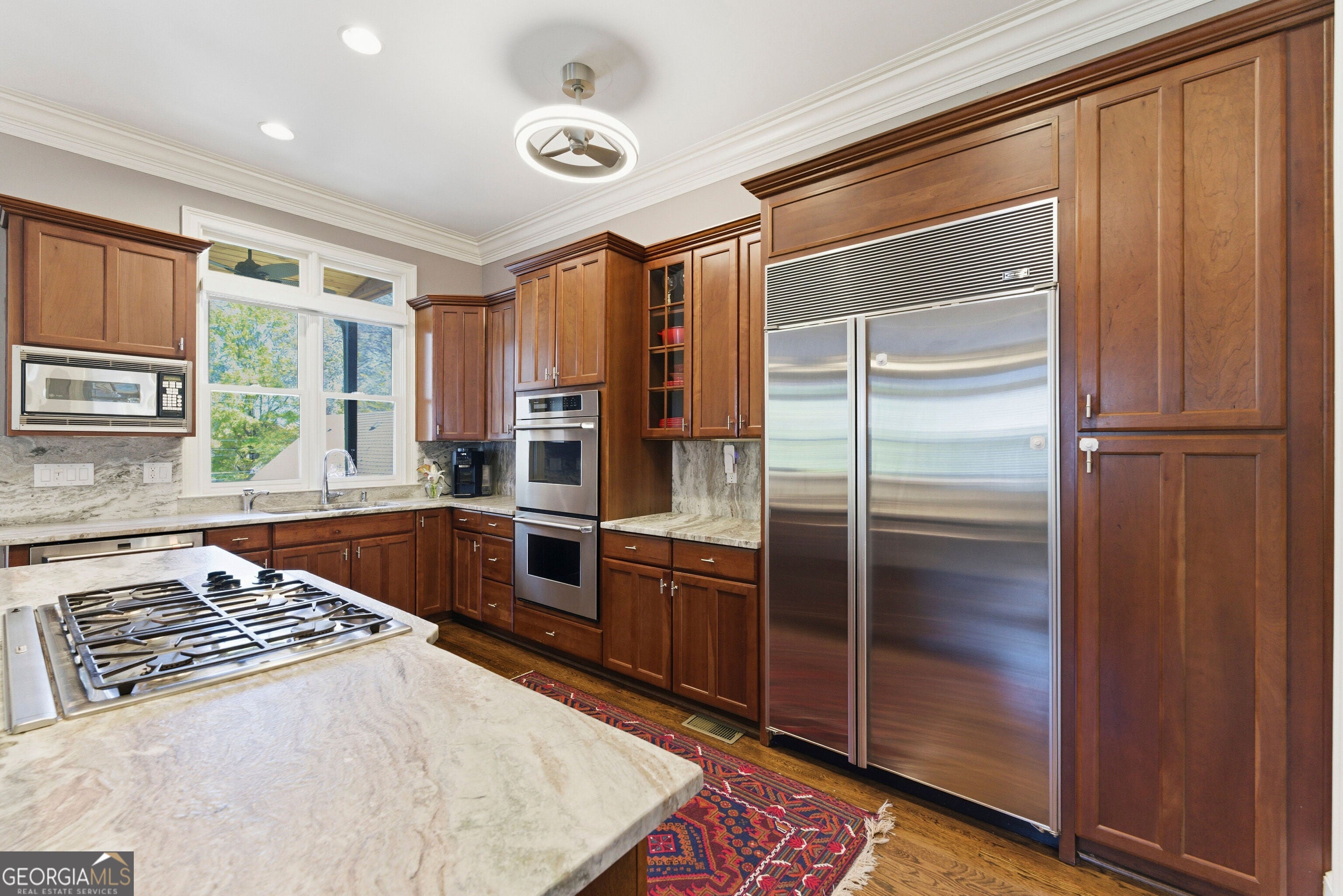 - AppliancesDishwasher, Double Oven, Gas Water Heater, Microwave, Refrigerator, Stainless Steel Appliance(s), Cooktop, Oven (Wall)