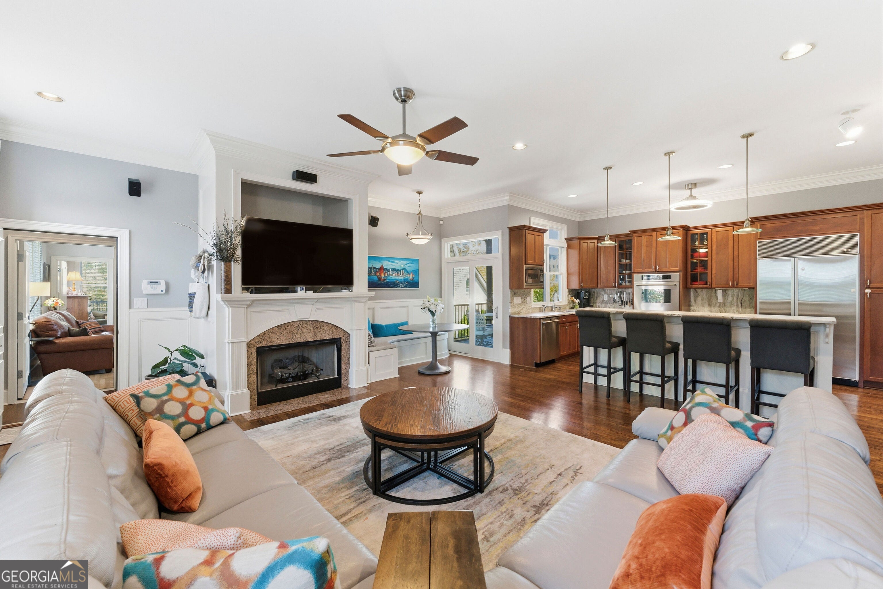 LOCATION. LUXURY. LIFESTYLE. Lavishly updated and lovingly maintained, the luring architecture of this residence with lofty 10' CEILINGS, luxurious crown molding/wainscoting, is filled with luminous light throughout. This traditional gem, only 25 years old, keeps the style of the century-old neighboring homes in the HISTORIC OLD FOURTH WARD. Feel at peace in your PRIVATE, fenced-in, perennial ZEN GARDEN complete with mature landscaping and KOI POND with waterfall beneath Japanese maples off the flagstone patio courtyard below oversized SOUTHERN-FACING front porch. High-end kitchen appliances (Sub-Zero, Thermador, Cafe), screened-in porch off kitchen banquette, NEW LEATHERED QUARTZITE COUNTERTOPS in kitchen and BUTLER'S PANTRY, upgraded lighting throughout, MOEN/KOHLER bathroom fixtures, refinished red/white oak floors, WINE CELLAR w/ EuroCave and French riddling racks, formal dining and living rooms, MOVIE THEATHER, game room, gym, SECRET PANIC ROOM, 4 gas fireplaces, generous en-suite bedrooms, lofted office/flex room with half bath. . .too many amenities and upgrades to list - a must see. The PRIVATE BACKYARD OASIS is perfect for entertaining with SWIM SPA HOT TUB alongside cool-touch TimberTech AZEK deck space, covered kitchenette, and astroturf yard. Access the backyard through the THREE CAR ATTACHED GARAGE off the GATED PRIVATE DRIVEWAY which also leads to the updated 900sq ft. multi-functional ATTACHED APARTMENT that has been utilized as a studio, an in-law/Au Pair suite, and a rental unit (INCOME PROPERTY last rented for $1800/month in 2024 which COVERS ALL PROPERTY TAXES). 2 HV/ACs and 2 HOT WATER TANKS replaced in 2021. Don't miss your chance to own this traditional masterpiece in the most WALKABLE neighborhood ITP: minutes by foot, bike, or scooter to the BeltLine, Historic Fourth Ward Park & Skate Park, Ponce City Market, Krog Street Market, Centennial Olympic Park, Mercedes-Benz Stadium, State Farm Arena, award winning restaurants, the PATH, and top workplaces in midtown and downtown Atlanta. With a traditional plan refined for modern comfort, 574 East Ave NE is a home to thrive in, feel alive in, and be genuinely at home.