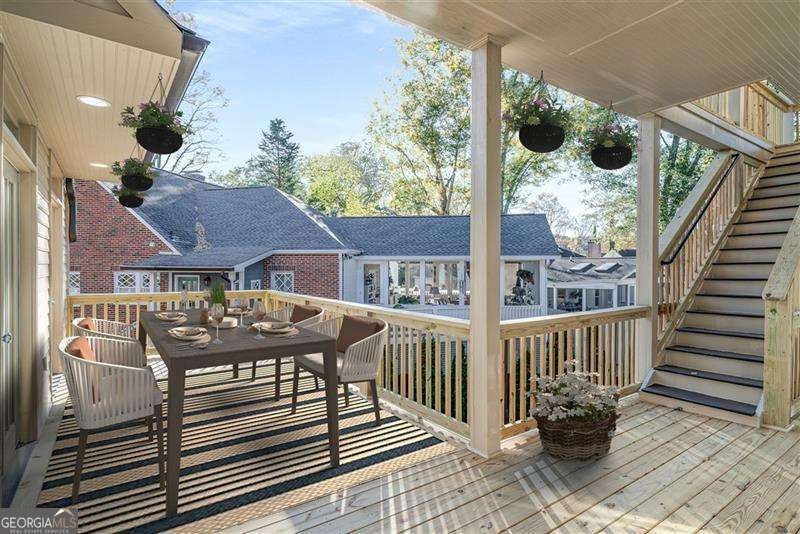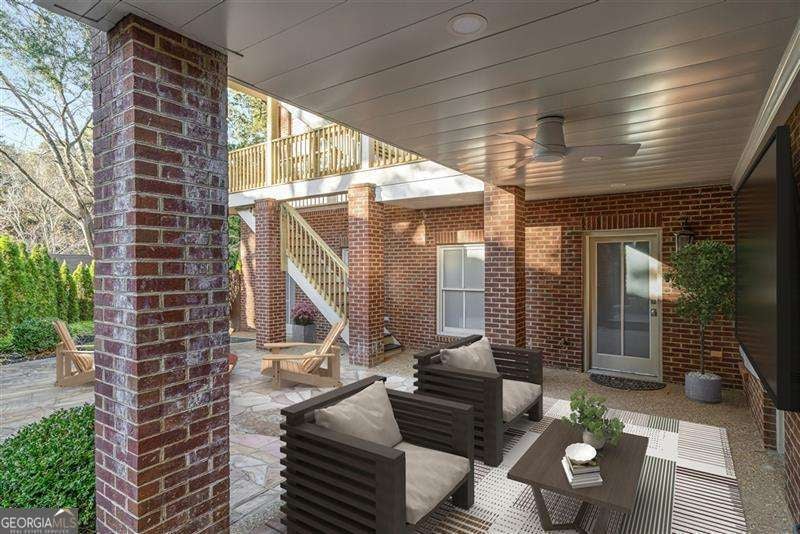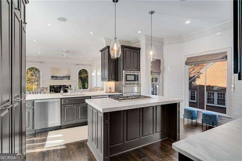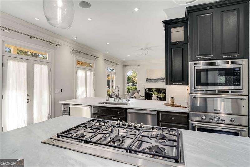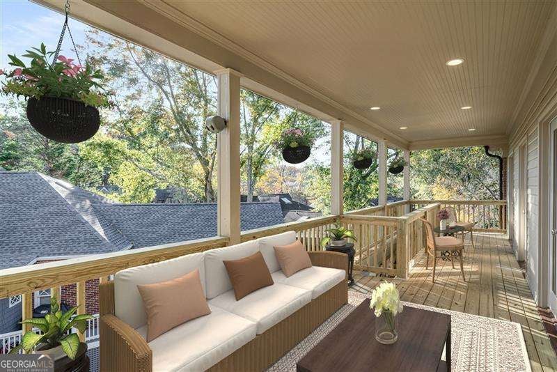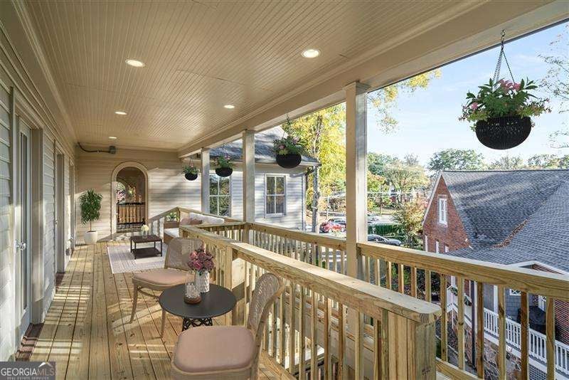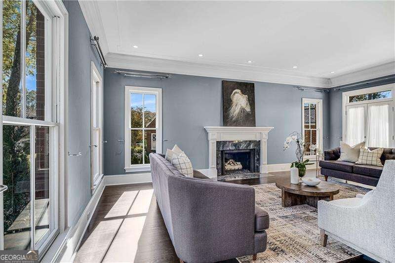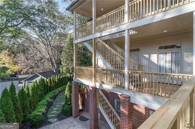 Refined and timeless, this Morningside residence blends modern luxury with classic charm in one of Atlanta's most walkable historic neighborhoods. Every inch of this fully renovated home reflects meticulous craftsmanship and elegant design. Sunlight fills spacious rooms with high ceilings, rich moldings, arched windows and doorways, coffered ceilings, and gleaming, newly refinished hardwood floors. The grand two-story marble foyer welcomes you into an inviting fireside living room with French doors opening to a covered porch, and a formal dining room perfectly sized for entertaining. The home is designed with a pre-built elevator shaft for future elevator installation which is a great option to have. The true chef's kitchen showcases custom cabinetry, marble countertops, 2 dishwashers, warming drawer, microwave, separate cooktop and premium Thermador and Miele appliances, anchored by a large island with breakfast bar and a bright breakfast nook open to the family room and balcony. Sought-after beverage bar with a wine cooler located in the family room, and just off the kitchen is a perfect addition. Special touches throughout include a "Harry Potter" style hidden closet under the stairs. Upstairs, the serene primary suite features a spa-quality marble bath with dual vanities, soaking tub, and oversized shower. Two additional bedrooms share a beautifully finished bath. The terrace level offers a private bedroom, bath, and living area with its own entry, ideal for guests or an in-law suite. Outside, a private and professionally landscaped fenced backyard features an oversized stone patio. The two-story deck was installed 10-2025 (buyer should plan on staining in 3 months, 1/2026, after the curing process has completed) and offers multiple spaces for relaxing and entertaining to make your own! There are 2 EV chargers for your convenience, one in the front of the home next to a brick parking pad, and the other in the garage. Located just blocks from Morningside Village, Morningside Elementary and minutes from Piedmont Park, and the BeltLine. A very walkable neighborhood with coffee shops, restaurants and spa, an exceptional opportunity to be in one of Atlanta's most coveted neighborhoods.