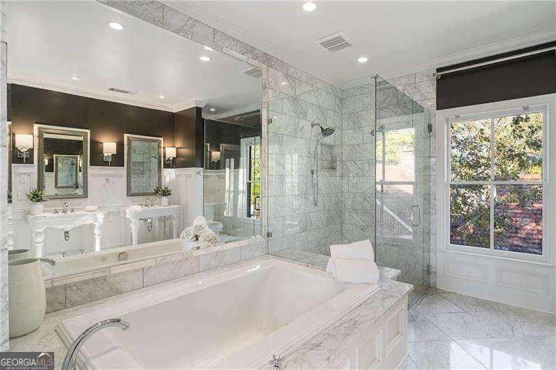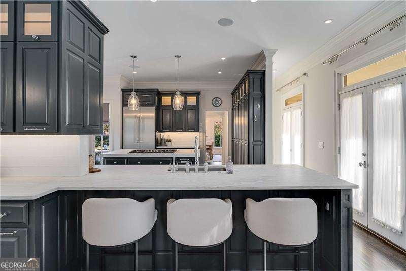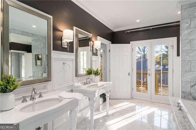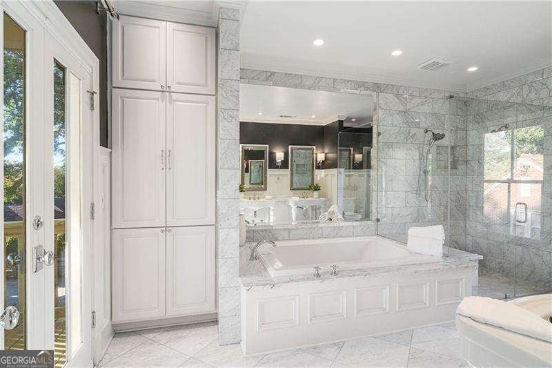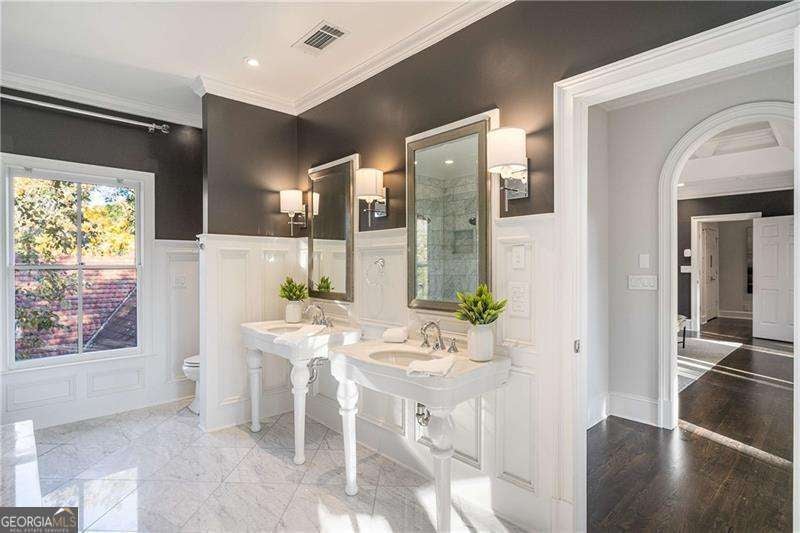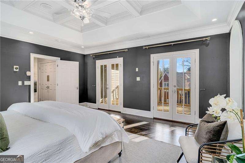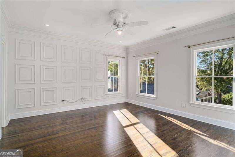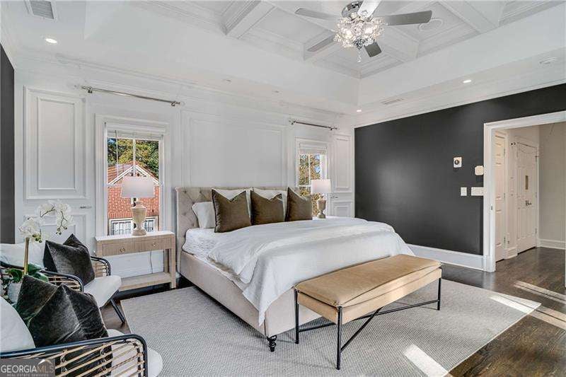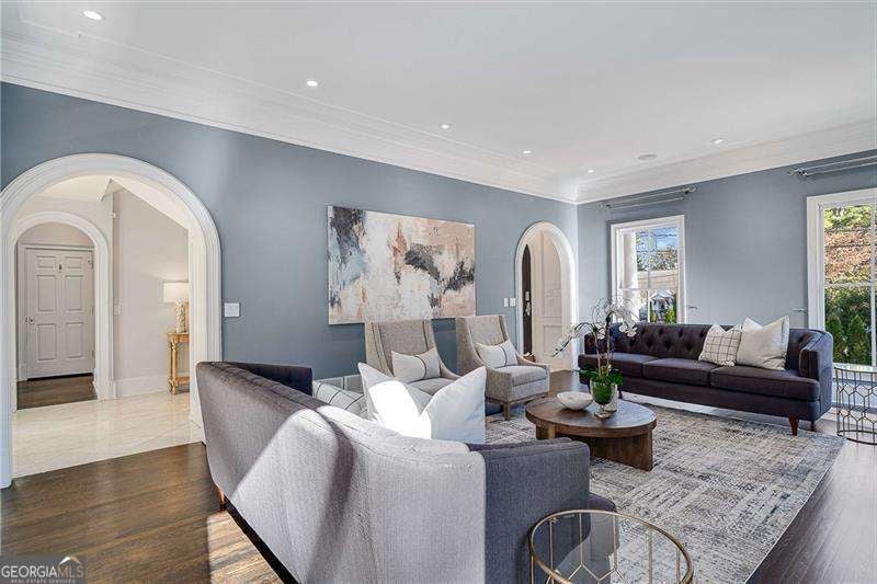 Refined and timeless, this Morningside residence blends modern luxury with classic charm in one of Atlanta's most walkable historic neighborhoods. Every inch of this fully renovated home reflects meticulous craftsmanship and elegant design. Sunlight fills spacious rooms with high ceilings, rich moldings, arched windows and doorways, coffered ceilings, and gleaming, newly refinished hardwood floors. The grand two-story marble foyer welcomes you into an inviting fireside living room with French doors opening to a covered porch, and a formal dining room perfectly sized for entertaining. The home is designed with a pre-built elevator shaft for future elevator installation which is a great option to have. The true chef's kitchen showcases custom cabinetry, marble countertops, 2 dishwashers, warming drawer, microwave, separate cooktop and premium Thermador and Miele appliances, anchored by a large island with breakfast bar and a bright breakfast nook open to the family room and balcony. Sought-after beverage bar with a wine cooler located in the family room, and just off the kitchen is a perfect addition. Special touches throughout include a "Harry Potter" style hidden closet under the stairs. Upstairs, the serene primary suite features a spa-quality marble bath with dual vanities, soaking tub, and oversized shower. Two additional bedrooms share a beautifully finished bath. The terrace level offers a private bedroom, bath, and living area with its own entry, ideal for guests or an in-law suite. Outside, a private and professionally landscaped fenced backyard features an oversized stone patio. The two-story deck was installed 10-2025 (buyer should plan on staining in 3 months, 1/2026, after the curing process has completed) and offers multiple spaces for relaxing and entertaining to make your own! There are 2 EV chargers for your convenience, one in the front of the home next to a brick parking pad, and the other in the garage. Located just blocks from Morningside Village, Morningside Elementary and minutes from Piedmont Park, and the BeltLine. A very walkable neighborhood with coffee shops, restaurants and spa, an exceptional opportunity to be in one of Atlanta's most coveted neighborhoods.