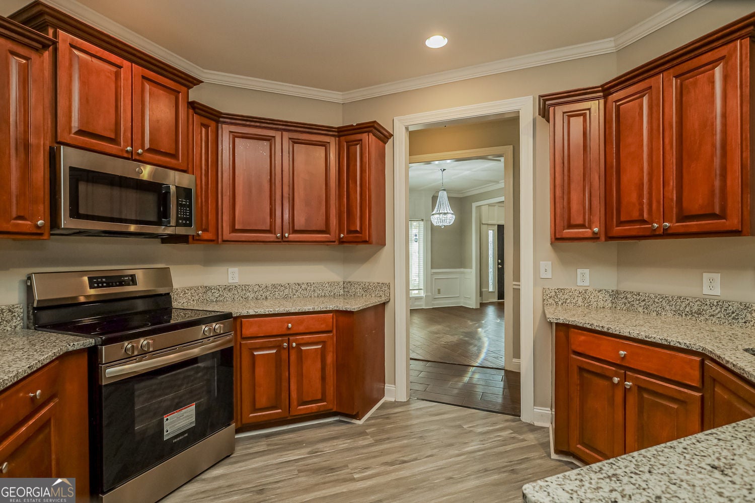 Nestled at 1405 Landon Drive in Locust Grove, Georgia, this attractive property presents an opportunity to own a delightful residential home in Henry County. Displaying great condition throughout, this residence offers a harmonious blend of comfort and style. The living room is a study in elegance, defined by its high, vaulted ceiling which amplifies the sense of space and light; a fireplace stands ready to provide warmth and a focal point for gatherings, while crown molding adds a touch of refinement. In the kitchen, the stone countertops provide a durable and beautiful surface for culinary exploration, complemented by a kitchen peninsula that enhances functionality, and crown molding which echoes the home's attention to detail. The primary bedroom serves as a private sanctuary, where a tray ceiling adds architectural interest and crown molding provides a sophisticated touch. Within the bathroom, a double vanity offers ample space for personal care, while the walk-in shower and jetted tub create a spa-like atmosphere for relaxation. This 2585 square foot home, built in 2004, also features a welcoming porch that extends the living space outdoors and a walk-in closet that offers generous storage. With its thoughtfully designed spaces and desirable features, this Locust Grove residence offers an exceptional opportunity to embrace a comfortable and stylish lifestyle.