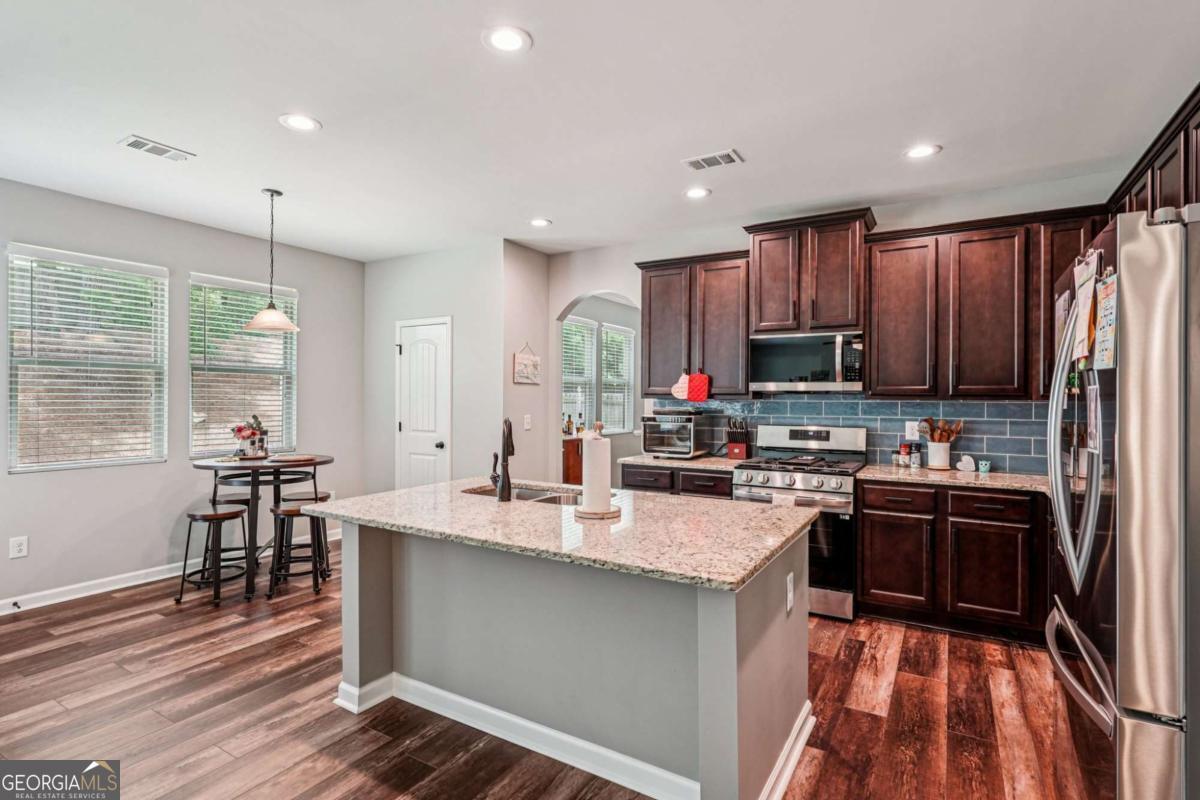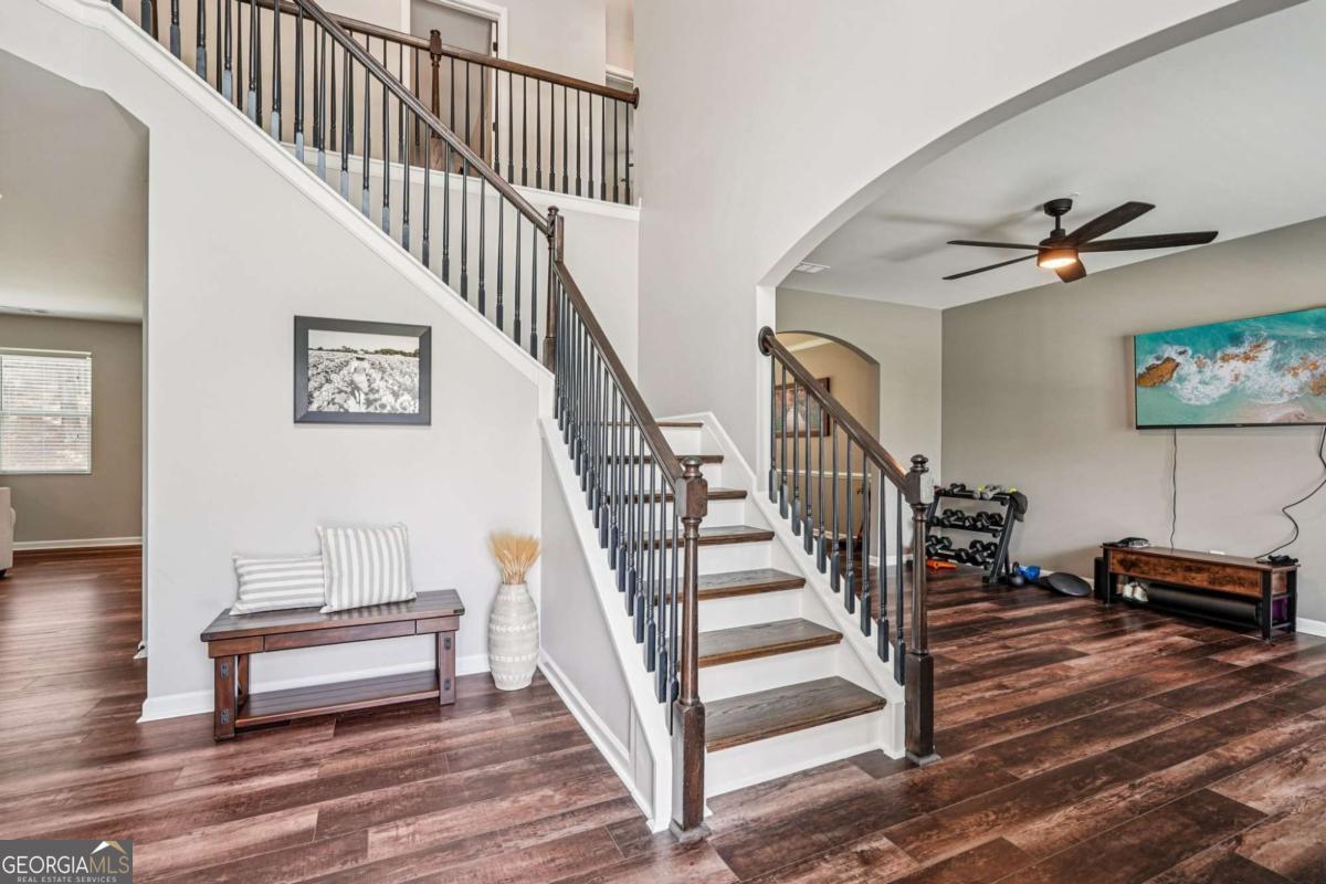 Close in the month of December and received a $2,000 credit to be used toward closing costs or a rate buydown! Ask about this home's below market, ASSUMABLE MORTGAGE. Discover your dream home in the sought-after Harmony Grove Subdivision - where comfort, style, and convenience come together perfectly! This stunning, move-in-ready residence has been beautifully updated and meticulously maintained, offering the ideal blend of modern upgrades and timeless charm. Enjoy access to a sparkling community pool, top-rated North Paulding schools, and an unbeatable location just minutes from shopping, dining, and entertainment. Step through the front door into a dramatic two-story foyer that instantly says "welcome home." To the right, a versatile flex space flows seamlessly into an elegant formal dining room - perfect for remote work or sophisticated gatherings. The heart of the home is the breathtaking open-concept kitchen and living area, designed for effortless entertaining. You'll love the sleek updated appliances, gorgeous solid-surface countertops, abundant cabinetry, and a layout that keeps everyone connected. Step outside to your own private oasis: a fully fenced backyard, complete with a top-of-the-line Green Acres shed - perfect for play, pets, gardening, or simply relaxing in complete seclusion. Upstairs, retreat to the expansive owner's suite featuring a luxurious en-suite bath with dual vanities, a soothing soaking tub, separate shower, and a huge walk-in closet. Three additional generously sized bedrooms, a well-appointed guest bathroom, and a convenient upstairs laundry room complete the second floor - making daily life a breeze. Homes this perfect don't last long in Harmony Grove! Schedule your private tour today and fall in love with the lifestyle you've been waiting for. Your new beginning starts here!