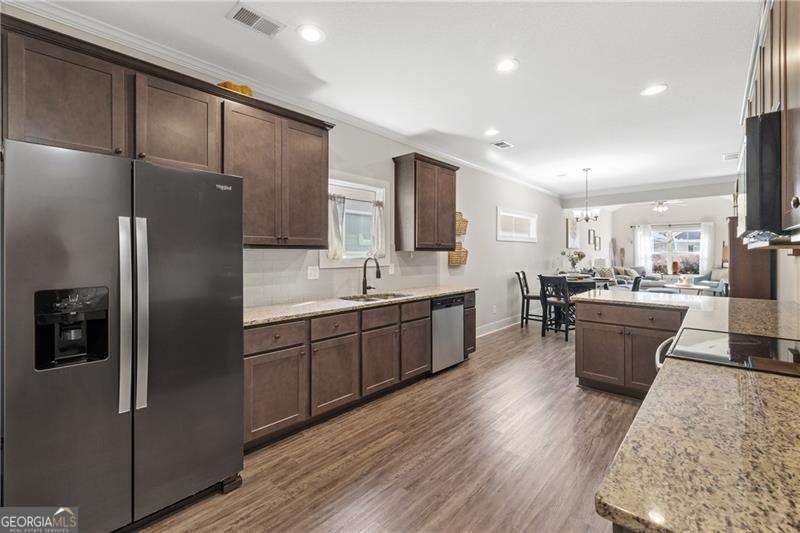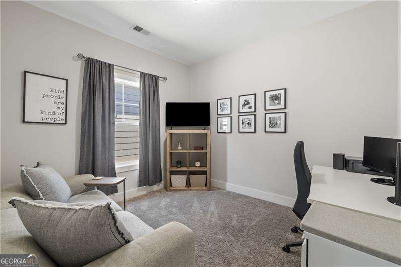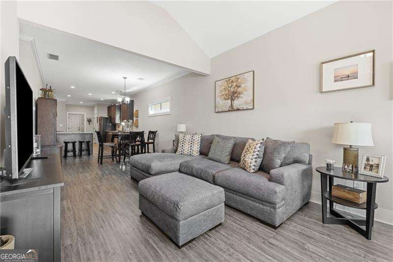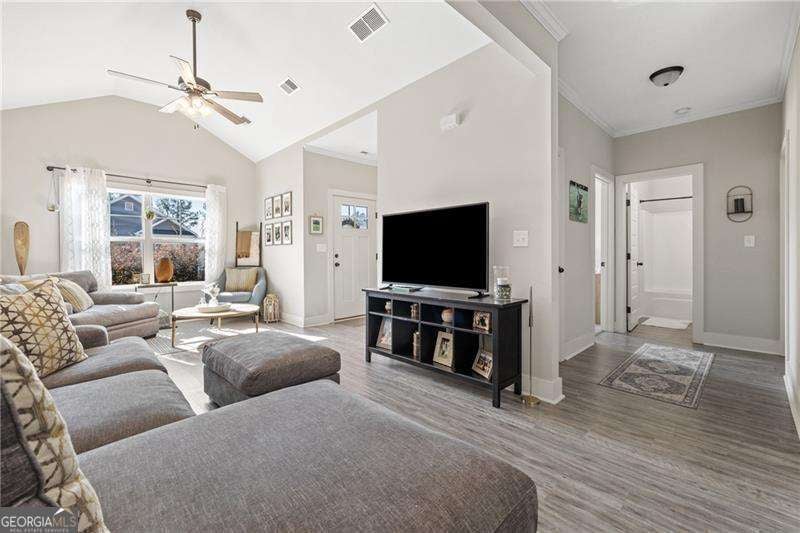 Welcome to 40 Calloway Lane - where life feels a little softer, slower, and sweeter. Tucked into a quiet pocket of Cartersville and just under 10 minutes to downtown, this charming five-year-young ranch invites you to imagine your mornings beginning on the covered front porch, wrapped in the calm of a new day. Coffee in hand. Sun drifting across the neighborhood. A peaceful moment all your own. Inside, the home opens into a light-filled living space that feels instantly welcoming. The family room becomes the heart of everyday life - a place to curl up with a good book, unwind after work, or enjoy easy conversation with the people you love. Natural flow carries you into the kitchen, where granite countertops, stainless steel appliances, and a generous breakfast peninsula make hosting feel effortless. Picture friends pulling up a seat while dinner simmers, kids doing homework at the counter, or weekend brunches that linger longer than planned. The dining area sits just beside it, perfectly placed for cozy dinners at home or holiday gatherings that feel a little extra special. The split-bedroom layout creates both connection and privacy. Two guest rooms sit together on one side of the home - ideal for family, friends, or a dedicated office or hobby space. Across the home, the primary suite offers a quiet retreat. Wake up to soft morning light, enjoy a spacious walk-in closet, and unwind in an en-suite featuring dual vanities, granite counters, and a walk-in shower designed for relaxation. A roomy mudroom/laundry area connects to the two-car garage, giving you a convenient drop zone for shoes, coats, backpacks, and the everyday rhythms of life. Step outside and the peaceful front porch calls you back - for evening wine, sunset watching, or simply breathing in a little fresh air before the day ends. Beyond the home's walls, the location truly shines. Everything important is near: coffee shops, boutique finds, seasonal festivals in downtown Cartersville, and schools and churches close enough for an easy walk - imagine strolling your kids to school, waving to neighbors along the way, and returning home before breakfast is finished. Located in the friendly Victoria Village community, you'll enjoy a pool, clubhouse, green space, and low-maintenance living thanks to a well-run HOA. With no rental restrictions and a home that's only five years old, you get modern systems, low maintenance, and flexibility for the future. If you've been searching for a home that feels warm, easy, and beautifully lived in - this is it. Life unfolds gently at 40 Calloway Lane.