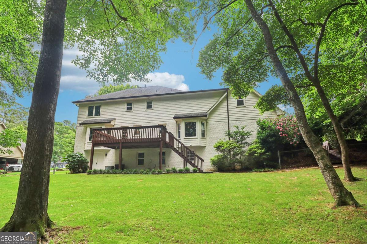***Priced to Sell***New Exterior Paint & Windows***Bonus Room***Finished Basement***This elegant home sits on a large, private lot with mature trees and beautifully maintained landscaping. Inside, rich hardwood floors flow throughout the main level. A formal dining room and living room flank the foyer, while the inviting family room features a floor-to-ceiling brick fireplace and a wall of windows overlooking the serene backyard. The updated kitchen features granite countertops, white cabinetry, a tile backsplash, stainless steel appliances, a large island, and a bright breakfast room. A spacious laundry room with granite counters and a half bath complete the main level. Upstairs, the oversized primary suite offers hardwood floors, dual closets, and a luxurious bath with double vanities, soaking tub, and separate shower. A private bonus room-accessible from the suite or its own staircase-makes an ideal office or flex space. Three additional bedrooms with hardwood floors share a full hall bath with dual sinks. The partially finished terrace level provides two large living areas (one with outdoor access), a bedroom, and a full bath-perfect for a guest suite, media room, or home office. Outdoors, enjoy the freshly stained upper deck, covered patio, and fenced backyard. Recent upgrades include: gutters with leaf guards, sprinkler system, outdoor lighting, imported mahogany double front door, new paint, and new windows. Don't miss your opportunity - book your tour today!