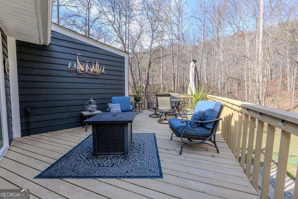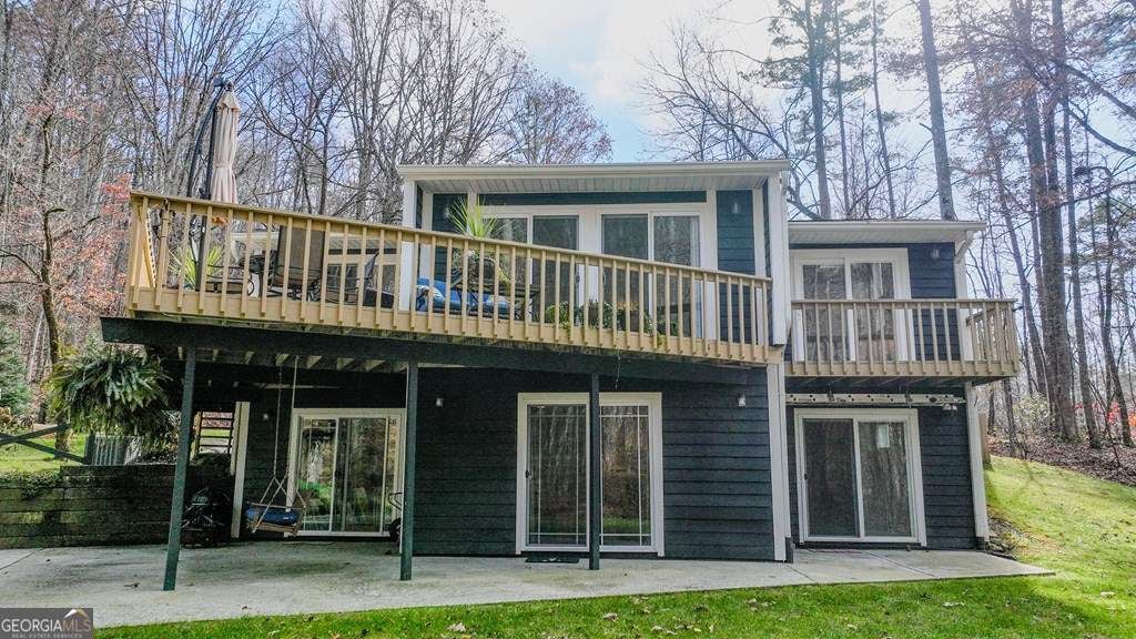 One of those rare homes that just feels right the moment you walk in. Beautiful usable 1-acre lot w/ mature trees & creek running along the back, this property delivers a peaceful, nature-immersed lifestyle-while still being only a short, easy drive to Hayesville & Hiawassee's restaurants, shops, & outdoor activities. The owners have meticulously maintained & thoughtfully updated the home. The HVAC remains under warranty, the septic was inspected in June 2025, & utilities include public water & Kinetic by Windstream internet-w/ fiber available nearby, ideal for remote work or streaming. Inside, the home blends modern comfort w/ warm, organic character. Wood beams, abundant natural light, and low-maintenance vinyl plank flooring create an inviting, cohesive atmosphere. High-end lighting and sconces-each on dimmers-allow you to set the perfect mood, while top-tier heated ceiling fans add a luxurious touch. Nearly every room features sliding glass doors, creating a seamless connection to the outdoors. The kitchen is a true centerpiece, offering generous workspace, a large granite island, a coffee bar, and excellent storage. It opens to the main living area, complete w/ a cozy wood-burning fireplace-perfect for mountain evenings. The primary suite is thoughtfully appointed w/ Juliet balcony, a double-head tiled shower, & custom closet systems that maximize organization. Crown molding, chair rail, and beadboard accents elevate the space w/ timeless detail. On the terrace level, you'll find a private secondary bedroom w/ its own full bath & double vanity-ideal for guests or multigenerational living. A second living area offers a flue & designated space for adding a wood-burning stove, a wine bar, & walk-out access to the patio, overlooking the natural landscape. Outdoors, the property continues to shine. A fenced front yard keeps pets safe & happy; a carport w/ storage, dedicated RV/boat parking pad, & open space offer options for gardening simply enjoying mountain life.