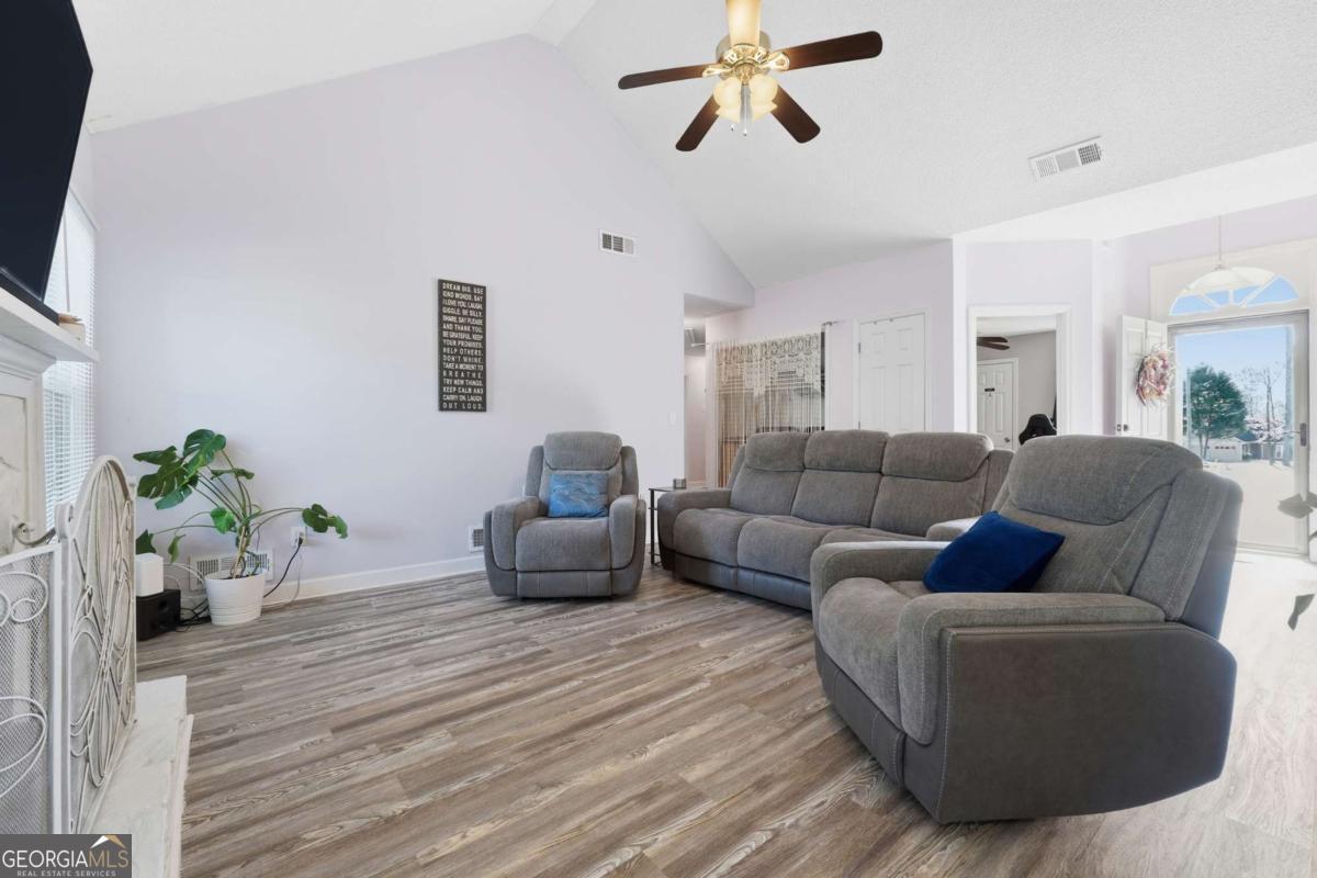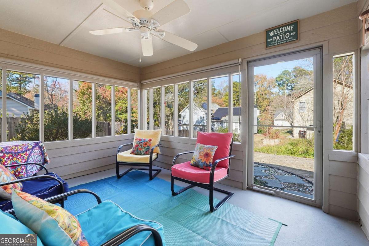 Welcome to this beautifully maintained ranch home in the highly sought-after Country Walk community of Powder Springs! This charming residence offers bright, open living spaces, modern updates, and a warm, inviting layout perfect for everyday comfort. Step into a sun-filled living room featuring vaulted ceilings, fresh flooring, and a cozy fireplace that anchors the space. The dining room flows seamlessly into a crisp, white kitchen equipped with stainless steel appliances, ample cabinetry, and a cheerful breakfast area framed by large arched windows. The spacious sunroom provides the perfect year-round escape for morning coffee, relaxing evenings, or entertaining guests. You'll love the generous primary suite with a soaking tub and stand up shower, along with well-appointed secondary bedrooms. Outside, enjoy a private sunroom to relax, play, or simply unwind. Located in the highly sought-after Country Walk community, enjoy resort-style amenities including a sparkling pool, tennis courts, playground, clubhouse, and walking access to the scenic Silver Comet Trail. Everyday conveniences are right within the neighborhood with an on-site store and gas station! Don't miss this move-in ready home in one of Powder Springs' most desirable communities!