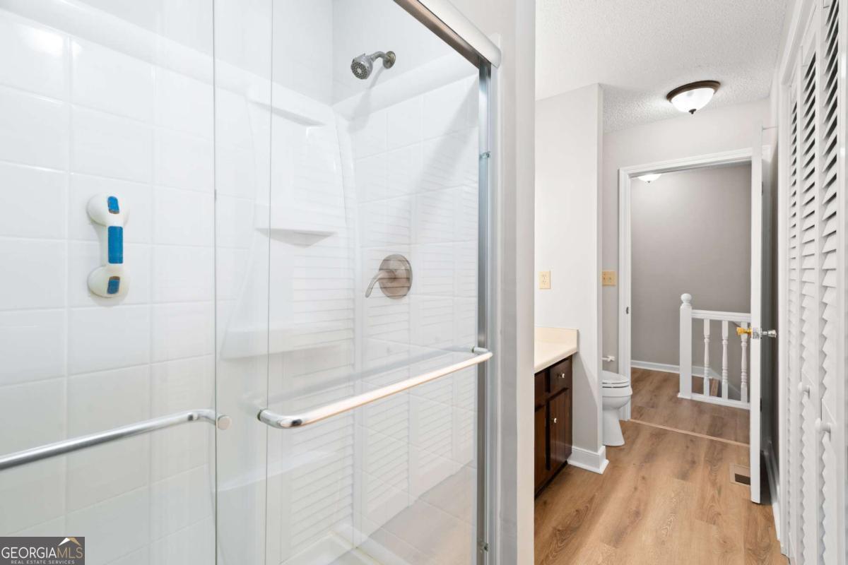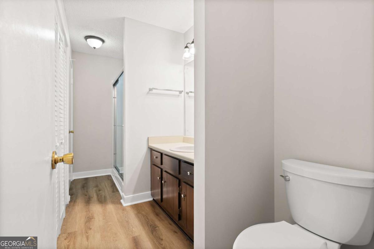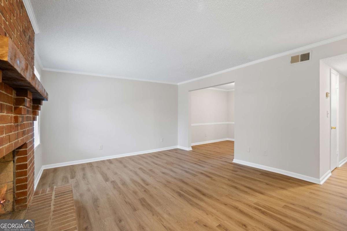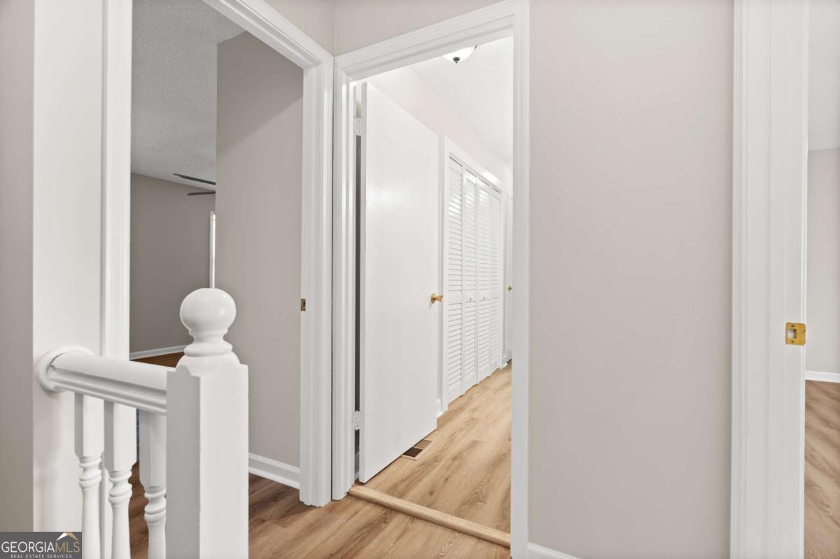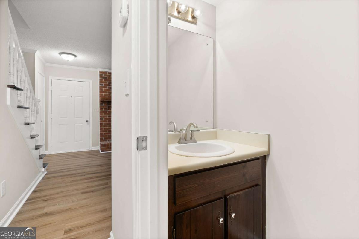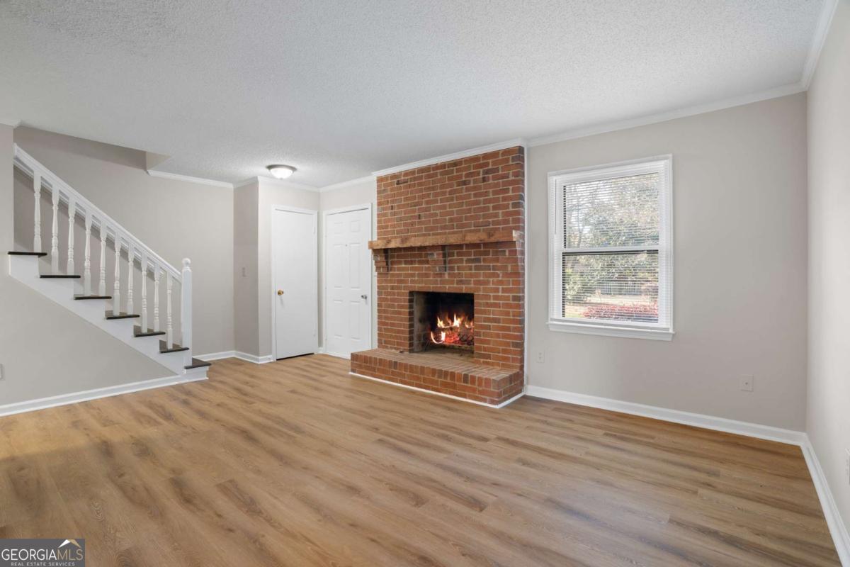 Welcome home to 489 Little Road, a beautifully refreshed 2 Bedroom, 1.5 Bath Brick Townhome offering low-maintenance living in the heart of East Cobb. With thoughtful updates throughout and an unbeatable location, this home delivers convenience, comfort and value all in one. Step inside to a bright, open main level featuring all new luxury vinyl plank flooring, fresh interior paint and a spacious family room anchored by a charming brick fireplace. The separate dining room flows easily into the galley kitchen, equipped with stainless steel appliances, wood cabinetry and direct access to your private fenced patio - perfect for grilling or relaxing outdoors. A convenient half bath on the main floor adds everyday practicality, while the additional dining nook provides space for relaxing morning coffee or late night snacks. Upstairs, you'll find two large bedrooms with generous closet space and updated light fixtures. The full bathroom includes an extended vanity, updated lighting, a crisp neutral design, and a dedicated laundry area tucked behind louvered doors for easy access and maximum convenience. Outside, enjoy a fully fenced private courtyard-style patio with room for plants, seating, and storage - plus a rear gate leading directly to the parking area. The community setting offers plenty of green space and mature trees for a quiet neighborhood feel. Located minutes from The Battery, Truist Park, I-75, restaurants, and top-rated East Cobb schools, this move-in-ready home is a hidden gem.