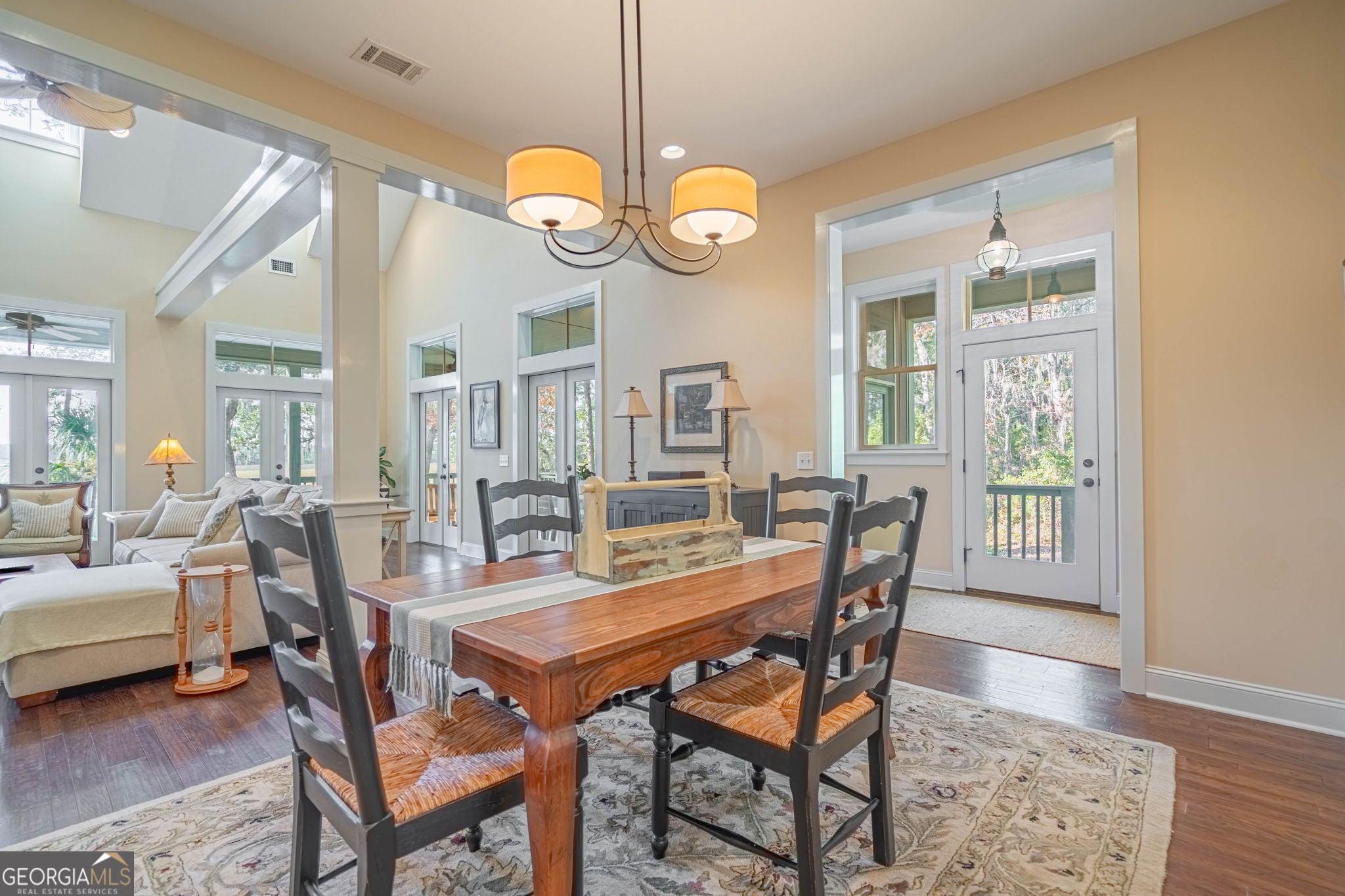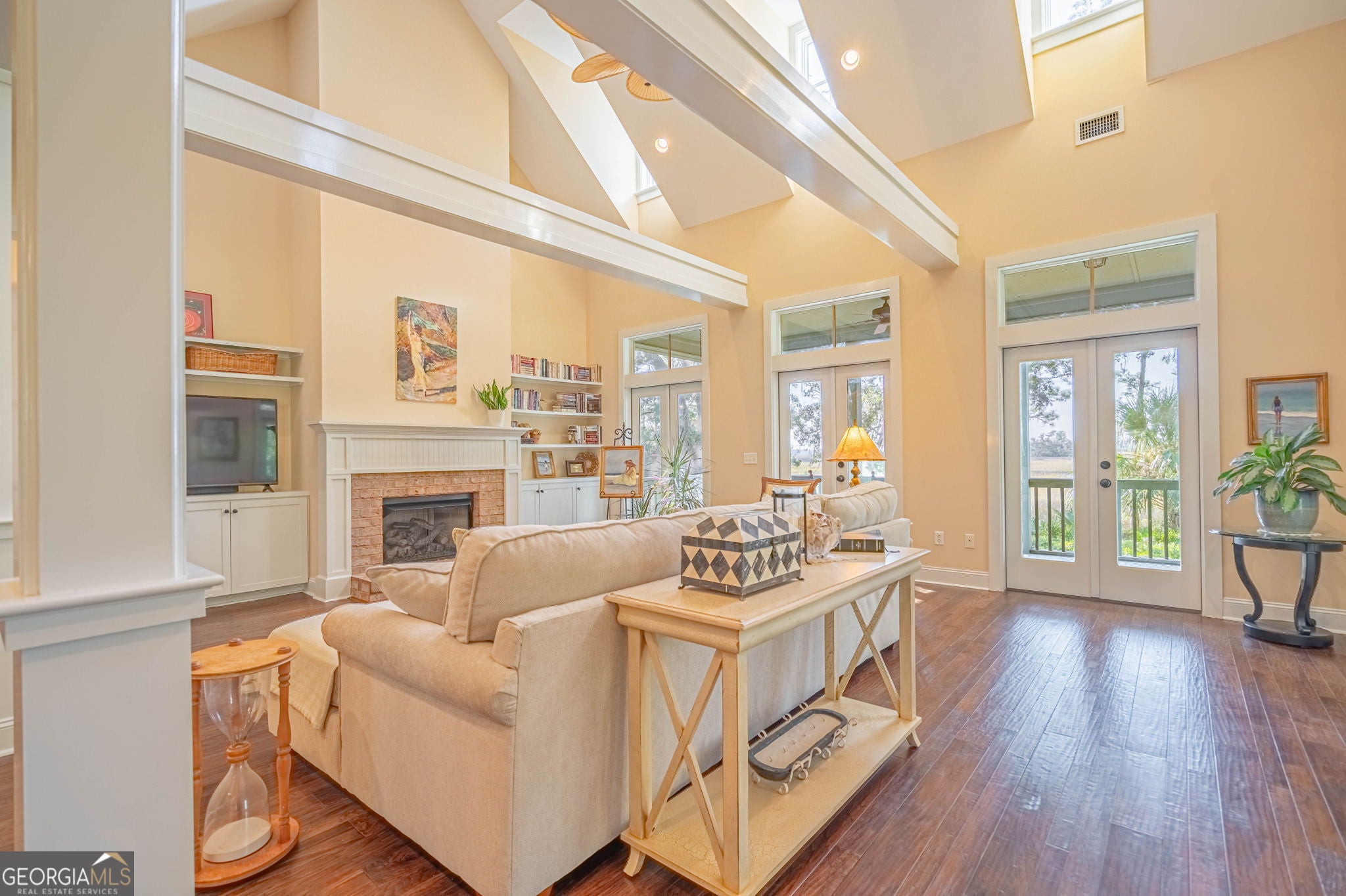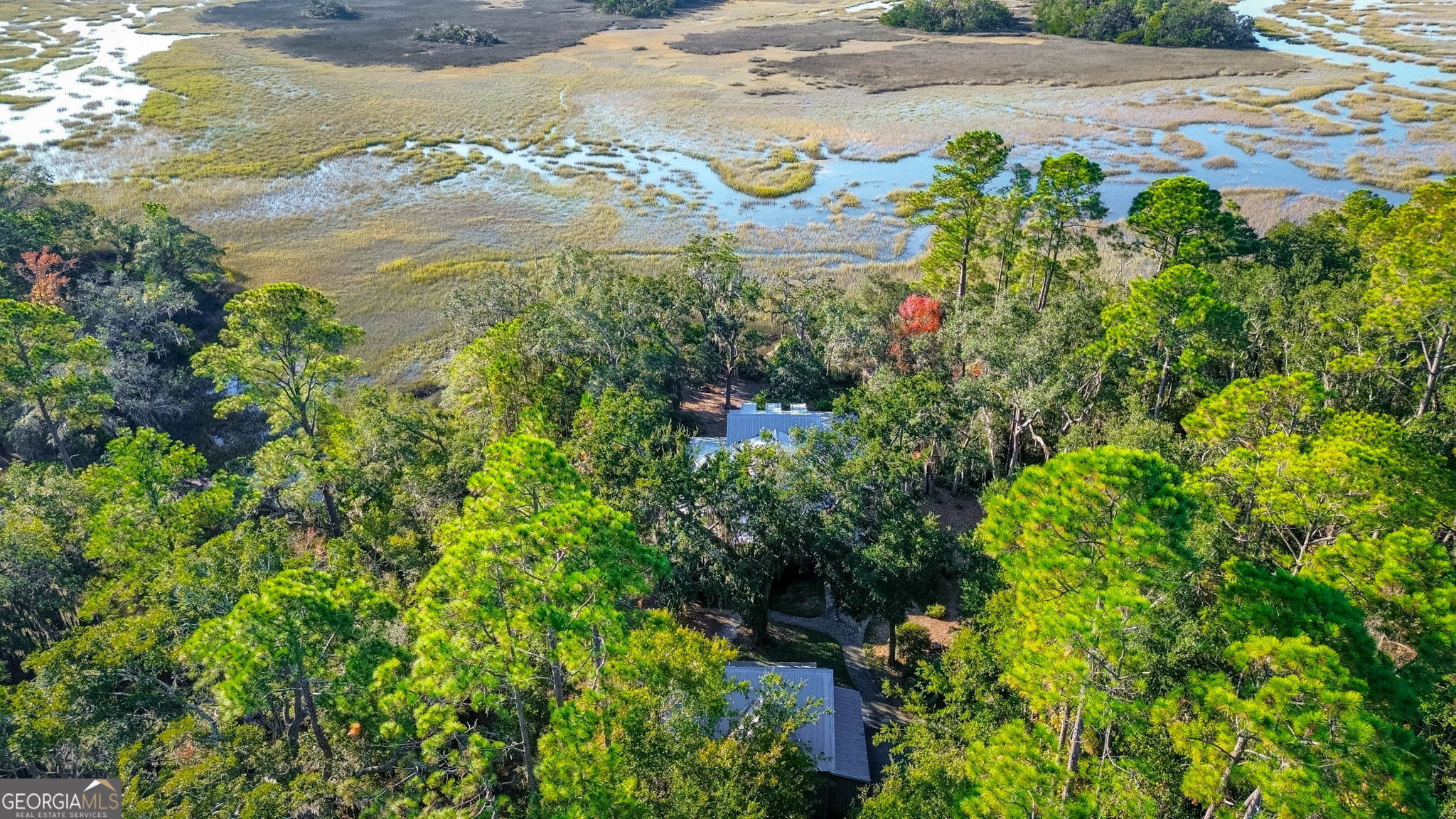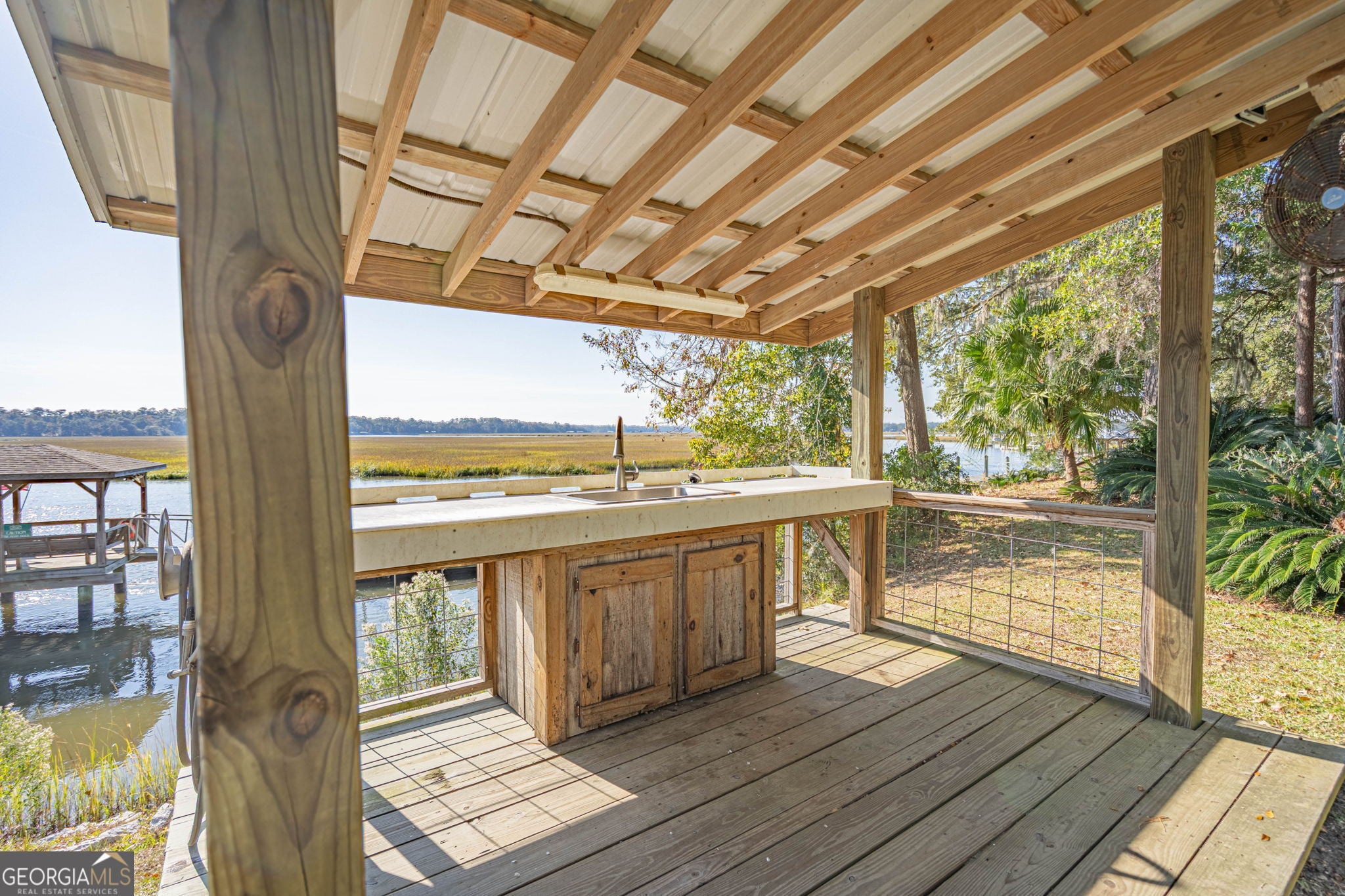 Enjoy the serene marsh view and elevated Lowcountry living in this beautifully designed custom home featuring 2 bedrooms and 2 bathrooms in the main house, plus a 1 bedroom, 1 bathroom carriage house. As you enter, the warmth of Hickory engineered hardwood floors flows throughout the main living areas, leading you into an open floor plan. Vaulted ceilings and exposed wooden beams create a spacious, airy feel, while French doors line the living room, filling the space with natural light and framing the marsh view. The gas fireplace with surrounding built-in shelving provides a cozy focal point. The large kitchen is perfect for gatherings, offering an oversized island, granite countertops, and plenty of workspace. The primary bedroom provides an additional marsh view, and the adjoining bathroom includes a soothing soaking tub and separate shower. The detached carriage house adds not only an additional 1,040sf under air, but also flexibility and function with its own bedroom and bathroom, along with a 2-car garage, potting room, and an office/hobby space ideal for guests or creative pursuits. Unwind on the wraparound porch, enjoy the comfort of the screened-in section, or step into the backyard on a cool evening to enjoy the firepit. Neighborhood amenities include a boat launch, day dock, community center, and a convenient fish-cleaning station perfect for those who love spending time on the water. A rare combination of comfort, craftsmanship, and coastal charm, this home is ready to welcome you!