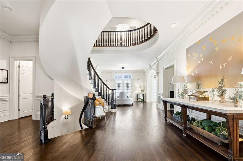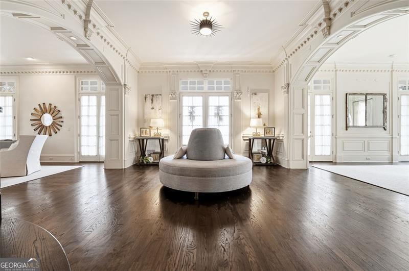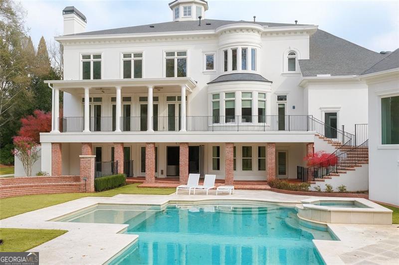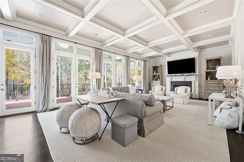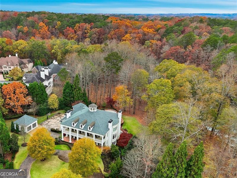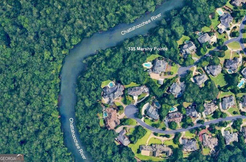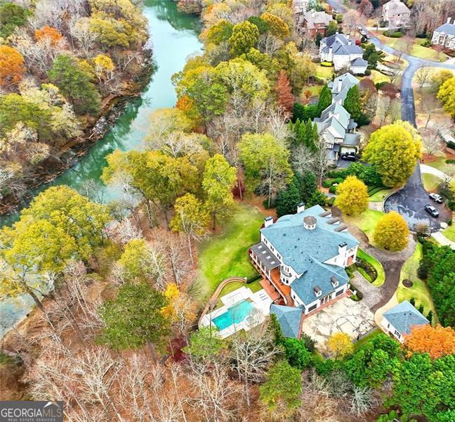 Commanding 2.16 acres across two cul-de-sac lots and 275 feet of Chattahoochee River frontage, this extraordinary estate in gated Winfield on the River offers a level of privacy, scale, and togetherness that defines exceptional living. Inside, 12,717 SF of thoughtfully designed living space balances grandeur with everyday comfort. Classic Southern elegance shows up in the multi-layer trim profiles, layered millwork and molding, tall ceilings, a sweeping curved staircase, arched openings, and generously scaled rooms. Columned, double-height front porches, custom stone-inset fireplaces, and hardwood floors throughout work together to create a residence that feels both stately and warmly inviting. The river is the quiet centerpiece of this estate, a constant, calming presence, with main living spaces oriented to enjoy its changing light and movement. An oversized chef's kitchen with grand center island and bayed breakfast nook opens to the family room, where floor-to-ceiling windows and French doors lead to expansive rear decks overlooking the river and grounds. Formal living and dining rooms, each with a fireplace, anchor the main level for holidays and celebrations, while a richly paneled office with large river-facing windows offers an inspiring setting. The primary suite spans the rear of the home, with full-length windows framing continuous, unobstructed views of the river. It includes a private fireplace, sitting area, foyer, room-sized walk-in closet, and spa-like bath with freestanding tub. Three additional spacious secondary bedrooms, an immense laundry room, and bonus storage ensure everyone has room. The double-height front porch gives two of the secondary bedrooms French door access to generous verandas ideal for reading or unwinding in the fresh air. The terrace level is designed for effortless entertaining and multi-generational living, with a full second kitchen and bar, wine cellar, gym, theater space, multiple gathering areas, and a private guest or in-law suite with its own laundry. Floor-to-ceiling folding glass doors open the space to the pool terrace and backyard, allowing parties and family gatherings to flow seamlessly. Resort-caliber amenities continue outside, where the pool, sun shelf, waterfall features and hot tub are paired with a large Isokern fireplace and seating area. A 6th bedroom en suite and pool entertainment area is tucked beneath the garages with oversized projector screen, and floor-to-ceiling folding glass doors to watch movies or the big game while you're in the pool or sitting fireside. Extensive upper and lower covered decks provide multiple options for lounging and dining amidst the river and treetops. Beyond the hardscape, the land itself is a showpiece. Towering hardwoods offer shade and limbs for forts, rope swings, and zip lines. Flat, grassy lawns-perfect for soccer games, trampolines and slip-and-slides-are kept lush by a dedicated irrigation well. A separate wooded side yard once discreetly housed a full-size batting cage. A stone firepit and seating area sit close to the river's edge, inviting s'mores, stargazing, and quiet conversation. Easy drop-in access to the river makes kayaking, fishing, swimming, and taking a natural "cold plunge" a simple part of everyday life. The spacious motor court is a safe, contained spot to play, learn to ride bikes, and shoot hoops. Six full-size garages provide rare capacity for every car, kayak, bike, hobby, and passion project your family will dream up. Major recent improvements include new roof, spray foam insulation, windows, exterior paint, garage doors, and a deep well motor. All of this is within at beautiful gated community, just minutes from top-rated schools, The Forum, and the Atlanta Athletic Club-yet a world away in privacy and setting. Elegant yet relaxed, substantial yet welcoming, this riverfront estate offers the rare combination of luxury, land, and the opportunity to live life well.