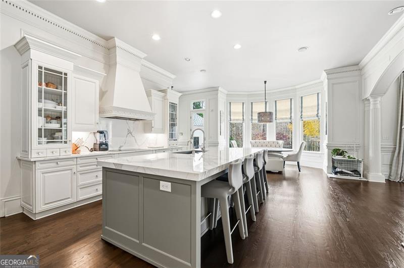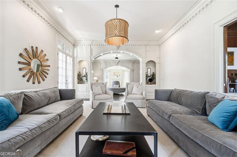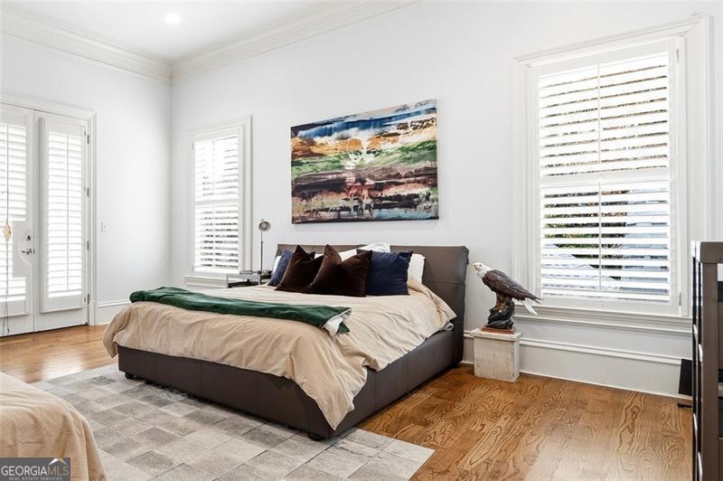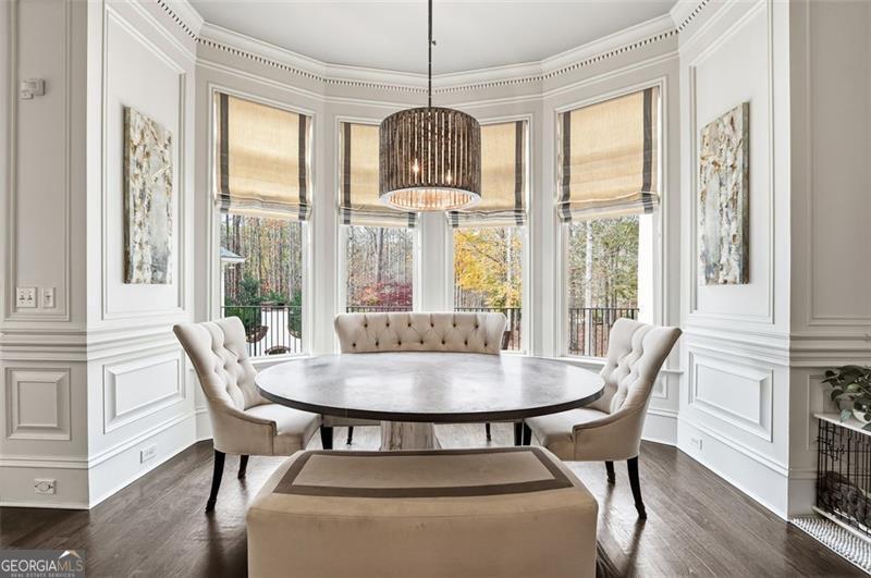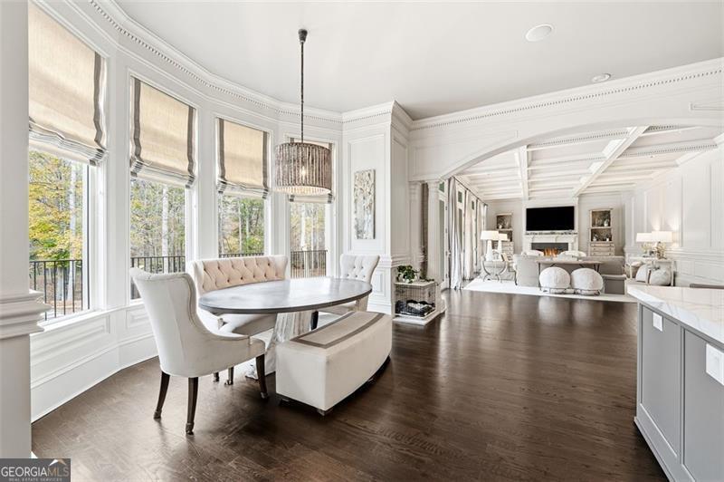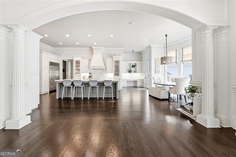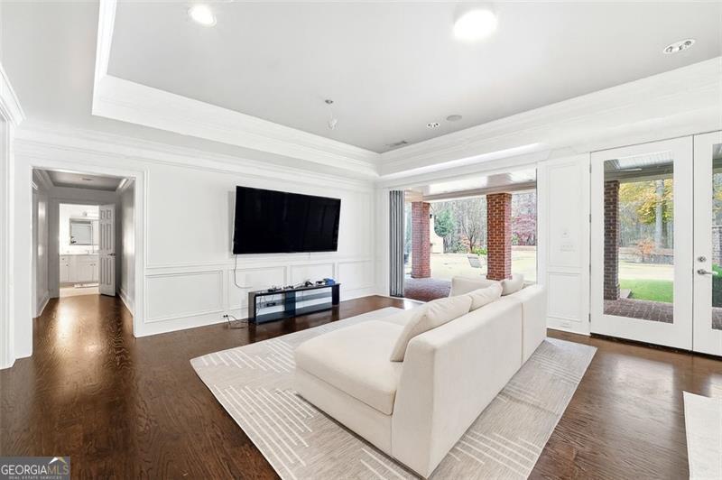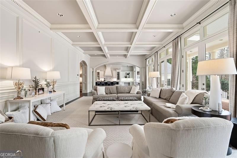 Commanding 2.16 acres across two cul-de-sac lots and 275 feet of Chattahoochee River frontage, this extraordinary estate in gated Winfield on the River offers a level of privacy, scale, and togetherness that defines exceptional living. Inside, 12,717 SF of thoughtfully designed living space balances grandeur with everyday comfort. Classic Southern elegance shows up in the multi-layer trim profiles, layered millwork and molding, tall ceilings, a sweeping curved staircase, arched openings, and generously scaled rooms. Columned, double-height front porches, custom stone-inset fireplaces, and hardwood floors throughout work together to create a residence that feels both stately and warmly inviting. The river is the quiet centerpiece of this estate, a constant, calming presence, with main living spaces oriented to enjoy its changing light and movement. An oversized chef's kitchen with grand center island and bayed breakfast nook opens to the family room, where floor-to-ceiling windows and French doors lead to expansive rear decks overlooking the river and grounds. Formal living and dining rooms, each with a fireplace, anchor the main level for holidays and celebrations, while a richly paneled office with large river-facing windows offers an inspiring setting. The primary suite spans the rear of the home, with full-length windows framing continuous, unobstructed views of the river. It includes a private fireplace, sitting area, foyer, room-sized walk-in closet, and spa-like bath with freestanding tub. Three additional spacious secondary bedrooms, an immense laundry room, and bonus storage ensure everyone has room. The double-height front porch gives two of the secondary bedrooms French door access to generous verandas ideal for reading or unwinding in the fresh air. The terrace level is designed for effortless entertaining and multi-generational living, with a full second kitchen and bar, wine cellar, gym, theater space, multiple gathering areas, and a private guest or in-law suite with its own laundry. Floor-to-ceiling folding glass doors open the space to the pool terrace and backyard, allowing parties and family gatherings to flow seamlessly. Resort-caliber amenities continue outside, where the pool, sun shelf, waterfall features and hot tub are paired with a large Isokern fireplace and seating area. A 6th bedroom en suite and pool entertainment area is tucked beneath the garages with oversized projector screen, and floor-to-ceiling folding glass doors to watch movies or the big game while you're in the pool or sitting fireside. Extensive upper and lower covered decks provide multiple options for lounging and dining amidst the river and treetops. Beyond the hardscape, the land itself is a showpiece. Towering hardwoods offer shade and limbs for forts, rope swings, and zip lines. Flat, grassy lawns-perfect for soccer games, trampolines and slip-and-slides-are kept lush by a dedicated irrigation well. A separate wooded side yard once discreetly housed a full-size batting cage. A stone firepit and seating area sit close to the river's edge, inviting s'mores, stargazing, and quiet conversation. Easy drop-in access to the river makes kayaking, fishing, swimming, and taking a natural "cold plunge" a simple part of everyday life. The spacious motor court is a safe, contained spot to play, learn to ride bikes, and shoot hoops. Six full-size garages provide rare capacity for every car, kayak, bike, hobby, and passion project your family will dream up. Major recent improvements include new roof, spray foam insulation, windows, exterior paint, garage doors, and a deep well motor. All of this is within at beautiful gated community, just minutes from top-rated schools, The Forum, and the Atlanta Athletic Club-yet a world away in privacy and setting. Elegant yet relaxed, substantial yet welcoming, this riverfront estate offers the rare combination of luxury, land, and the opportunity to live life well.