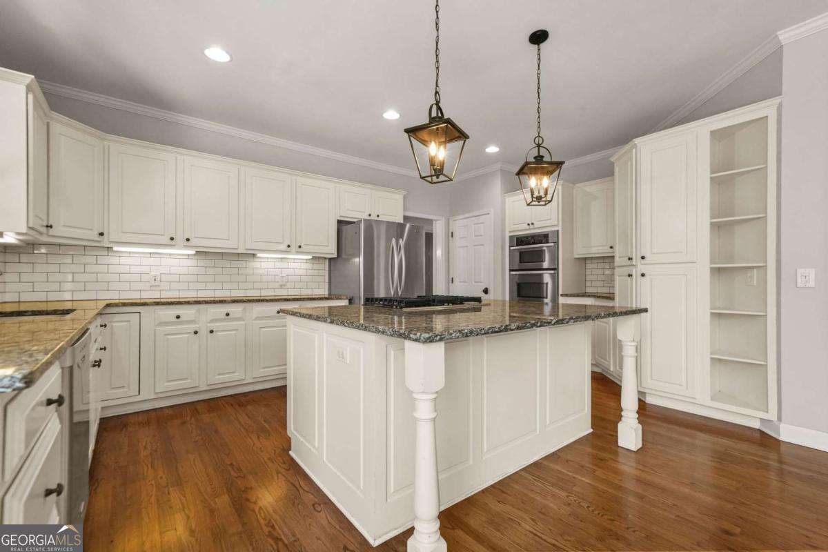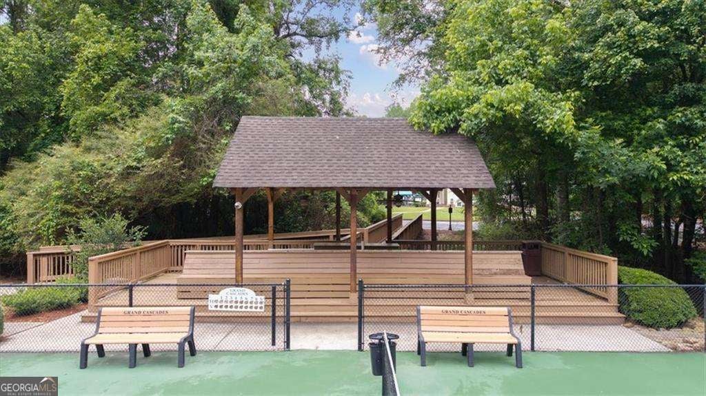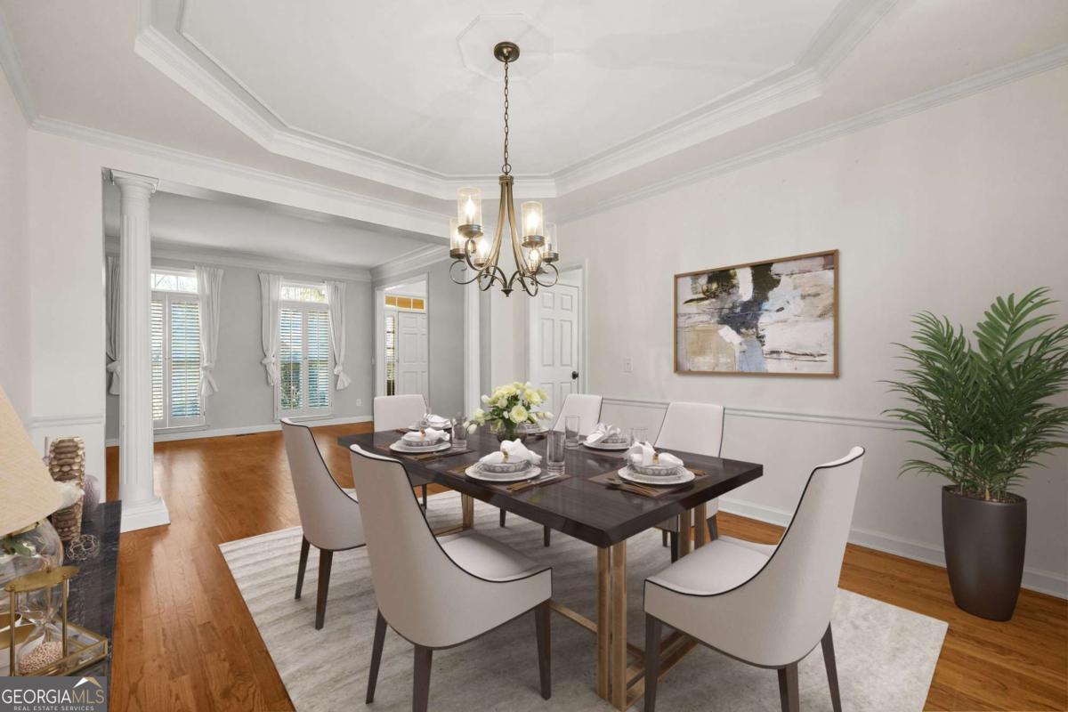 Welcome to this beautifully designed executive home located in the highly sought-after Grand Cascades community in Suwanee. Tucked away on a quiet street with mature landscaping and outstanding curb appeal, this expansive residence offers 4,400+ sq ft of finished living space, including a fully finished terrace level-ideal for today's flexible living needs. The main level welcomes you with a bright two-story foyer, a formal dining room, and a spacious home office. The open family room features custom built-ins and a gas fireplace and flows seamlessly into the well-appointed kitchen with white cabinetry, stone countertops, breakfast bar, breakfast area, and views into the living space. The oversized owner's suite offers a private sitting area, double vanities, and a whirlpool tub. Upstairs includes generously sized secondary bedrooms, highlighted by a private guest suite, along with brand-new waterproof, scratch-resistant LVP flooring and fresh paint throughout the upper-level bedrooms. The fully finished terrace level includes a complete second kitchen, living area, bedroom, full bath, and exterior entry-perfect for multi-generational living, in-law accommodations, or potential rental use. Outdoor living truly shines with a cleared and expanded backyard, enhanced by newly installed grass, privacy trees along the rear fence line, and a freshly painted and pressure-washed extended deck-ideal for entertaining or relaxing. Mature landscaping has been thoughtfully improved with tree removal in both the front and backyard, opening up the property while maintaining privacy. Homeowners often enjoy views of deer passing through the wooded buffer beyond the fence. Significant recent upgrades provide peace of mind and long-term value, including a new HVAC system on the main level, a roof just a few years old, and upgraded 6-inch gutters with gutter guards. Grand Cascades is one of South Forsyth's premier communities, offering resort-style amenities including a Jr. Olympic pool, clubhouse, fitness center, playground, six tennis courts, volleyball, soccer and baseball fields, two stocked lakes, and miles of scenic walking trails along the Chattahoochee River. Zoned for Settles Bridge Elementary, Riverwatch Middle, and Lambert High School. This is a rare opportunity to own a beautifully updated, spacious home in a premier neighborhood with exceptional amenities and convenient access to all that Suwanee has to offer.