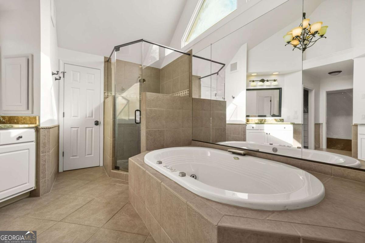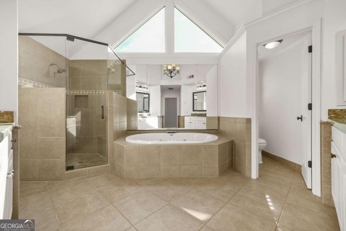 - Interior FeaturesBeamed Ceilings, Bookcases, Double Vanity, High Ceilings, In-Law Floorplan, Rear Stairs, Separate Shower, Tile Bath, Tray Ceiling(s), Two Story Foyer, Vaulted Ceiling(s), Walk-In Closet(s), Whirlpool Bath