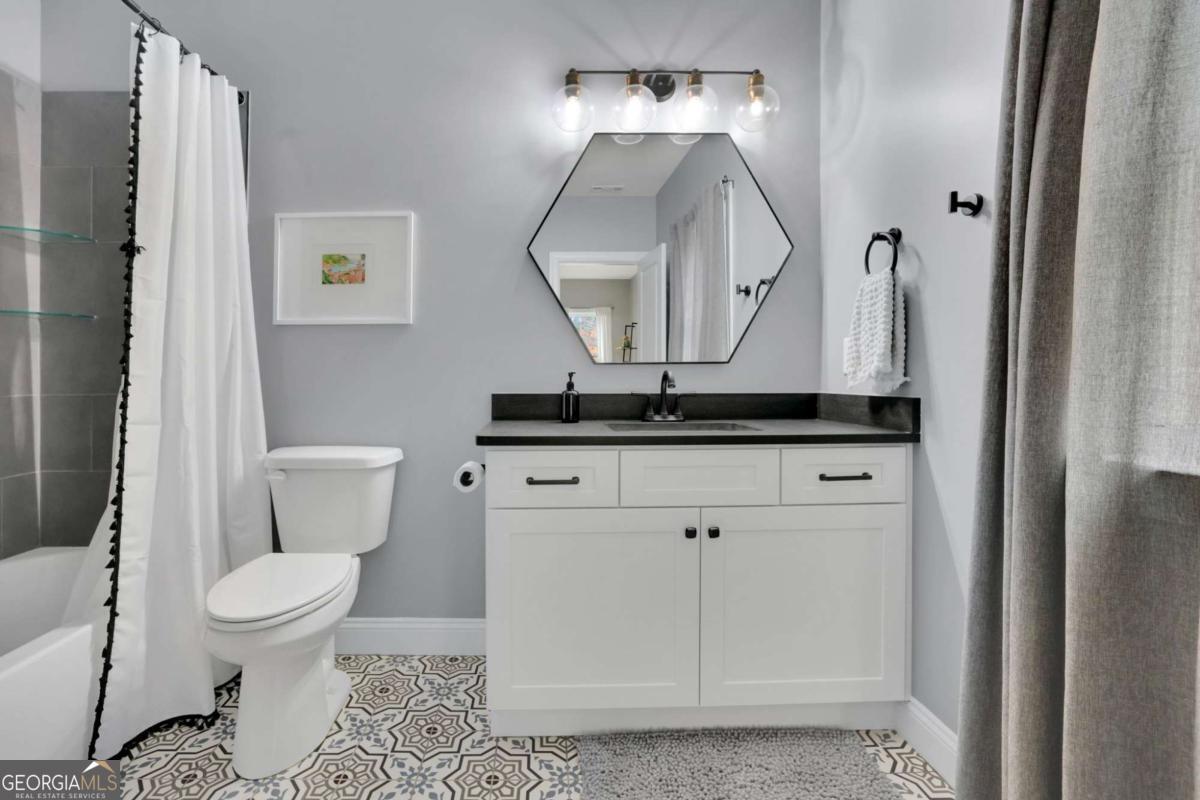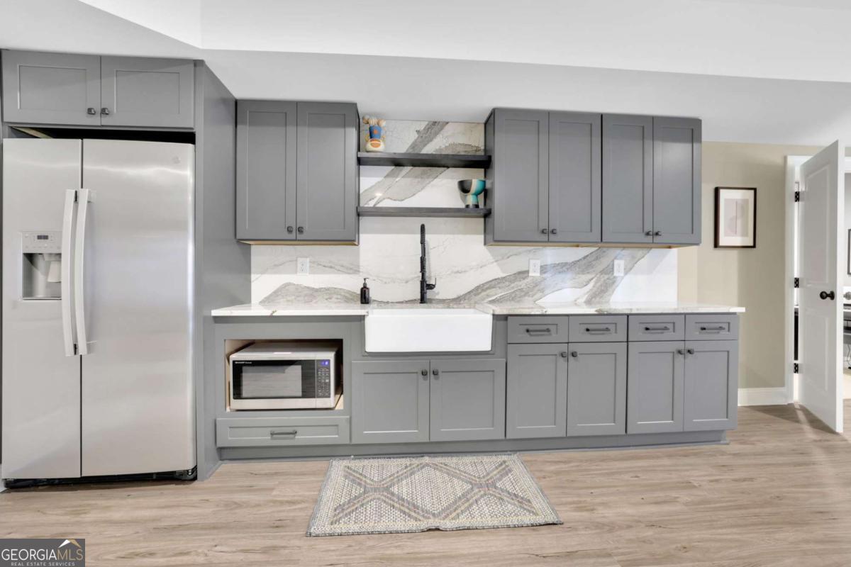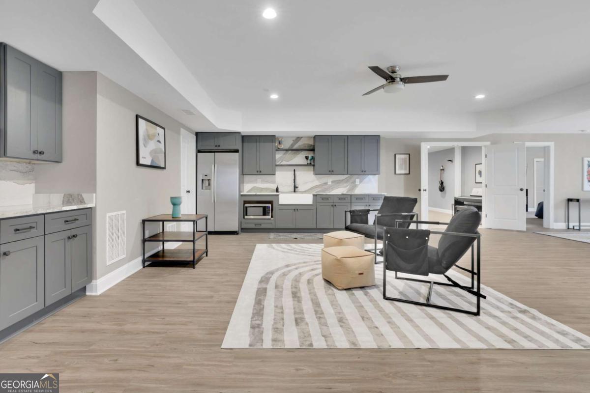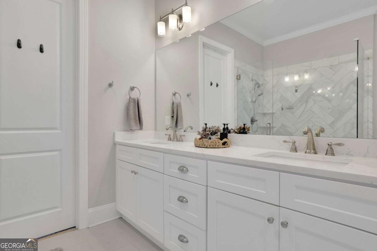 WELCOME HOME!!!Discover an exceptional luxury estate in the heart of Roswell-a rare newer-construction home set on a full 1-acre private lot, an increasingly hard-to-find feature in this highly desired area. With over 7,000 square feet of beautifully designed living space, this residence blends elegance, comfort, and thoughtful functionality. MAIN LEVEL: Experience a true open-concept design beginning with an impressive dining area that comfortably accommodates a 12+ seat dining table, ideal for hosting large gatherings. The oversized living room features an elegant gas fireplace, custom built-in bookcases, and beautiful views of the private backyard, matching the natural light and views enjoyed from the family room. The chef's kitchen is the heart of the home, offering an oversized island, designer countertops, premium finishes, and a spacious walk-in pantry. The kitchen opens seamlessly to both the living room and the family room, which includes a second fireplace and expansive windows overlooking the backyard. Both rooms provide direct access to the covered, oversized back porch, creating the perfect flow for indoor-outdoor living and entertaining. The primary suite on the main level offers tranquil views of the backyard and features a luxurious bathroom with a soaking tub, oversized shower, and dual vanities. The his-and-hers walk-in closet connects conveniently to the main-level laundry room, which also provides access from the common hallway. A mudroom, half bathroom, and a 3-car garage complete the main level. SECOND LEVEL: The upper level includes three spacious bedrooms, each with its own private bathroom and walk-in closet, offering comfort and privacy for family or guests. A second laundry room provides added convenience, along with attic space for extra storage. FULLY FINISHED BASEMENT (OVER 2,000 SQ FT): The expansive lower level is designed for versatility, featuring a private bedroom with an en-suite bathroom and walk-in closet, a full kitchen, and a music/media room with acoustic soundproofing-perfect for musicians, creators, or home theater enthusiasts. A dedicated gym/bonus room adds additional flexibility. The basement opens to a covered patio with direct access to the flat, private backyard, perfect for outdoor living and recreation. This extraordinary estate offers space, luxury, and convenience-close to Downtown Roswell, Alpharetta, Milton, and located within one of Fulton County's top-rated school districts. A rare North Fulton gem, combining acreage, newer construction, and exceptional craftsmanship