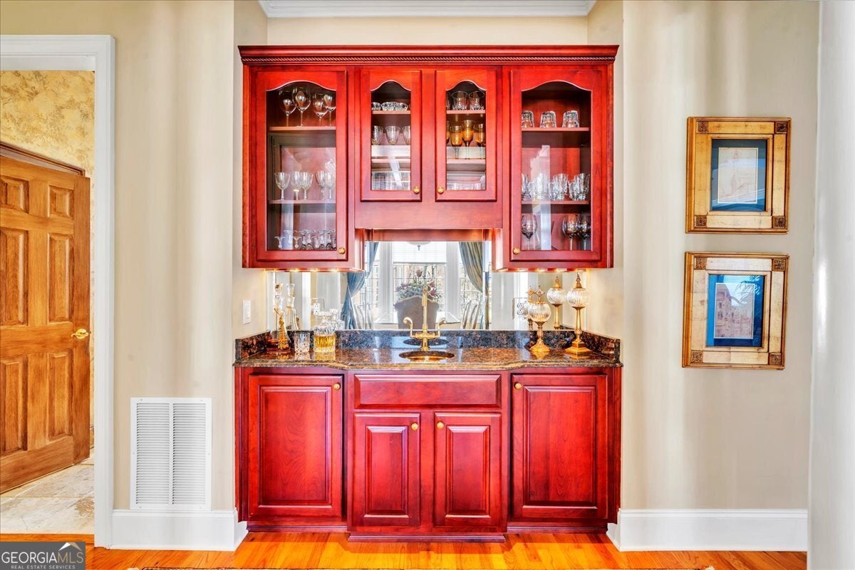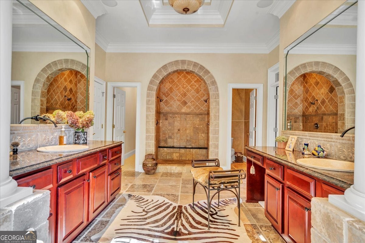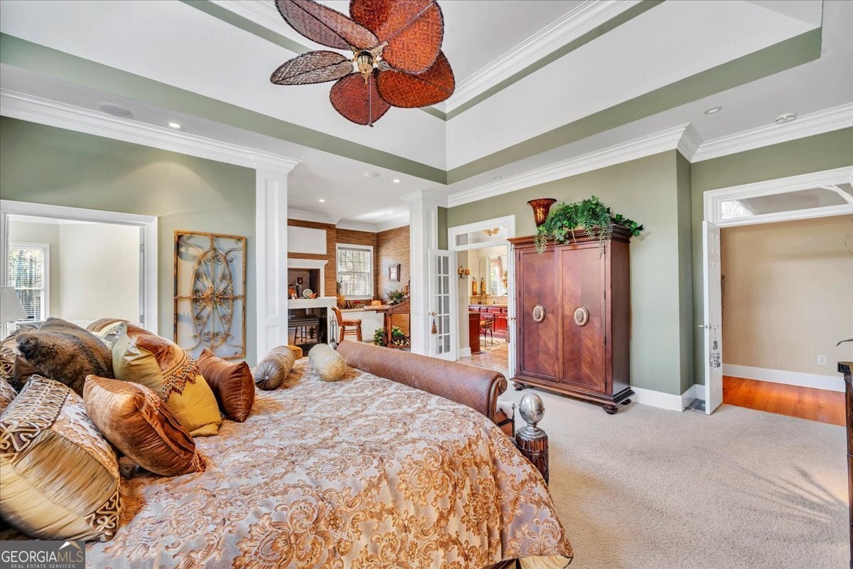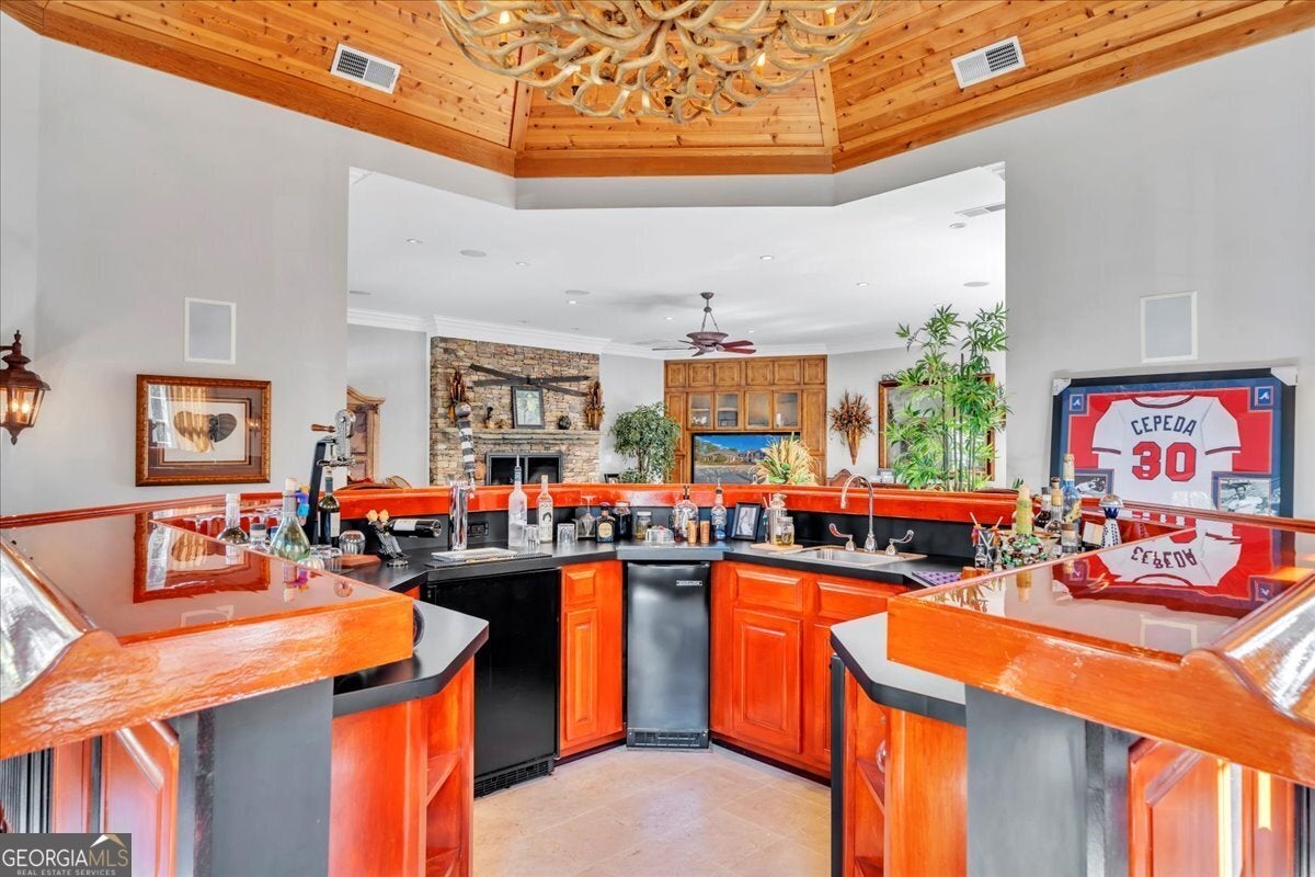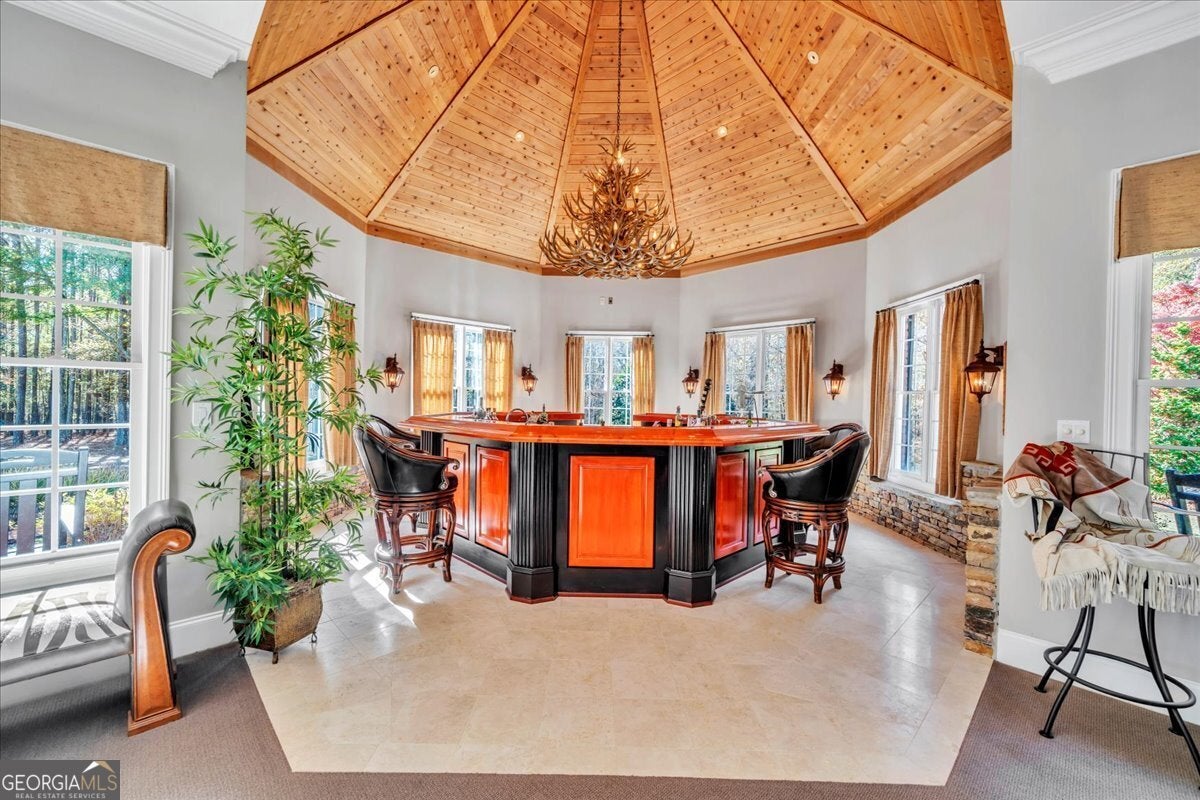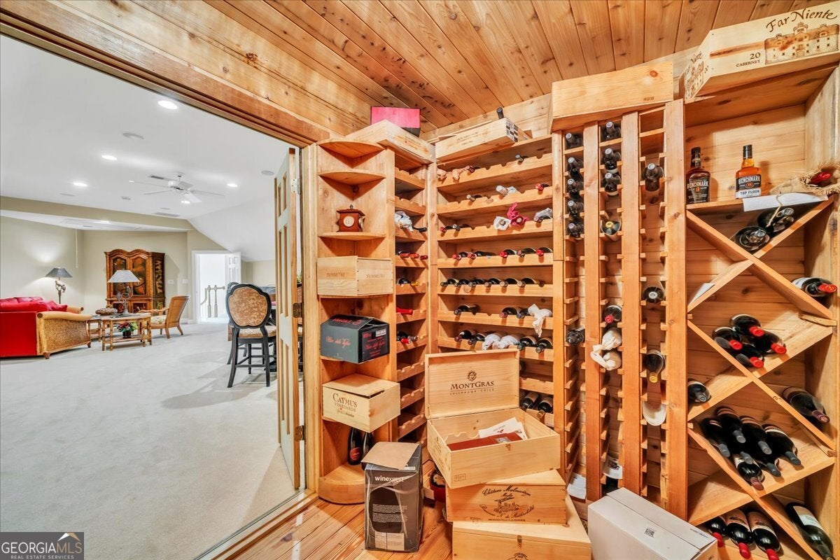 - Interior FeaturesBeamed Ceilings, Bookcases, Central Vacuum, Double Vanity, High Ceilings, In-Law Floorplan, Master On Main Level, Separate Shower, Soaking Tub, Tray Ceiling(s), Walk-In Closet(s), Wet Bar, Whirlpool Bath, Wine Cellar