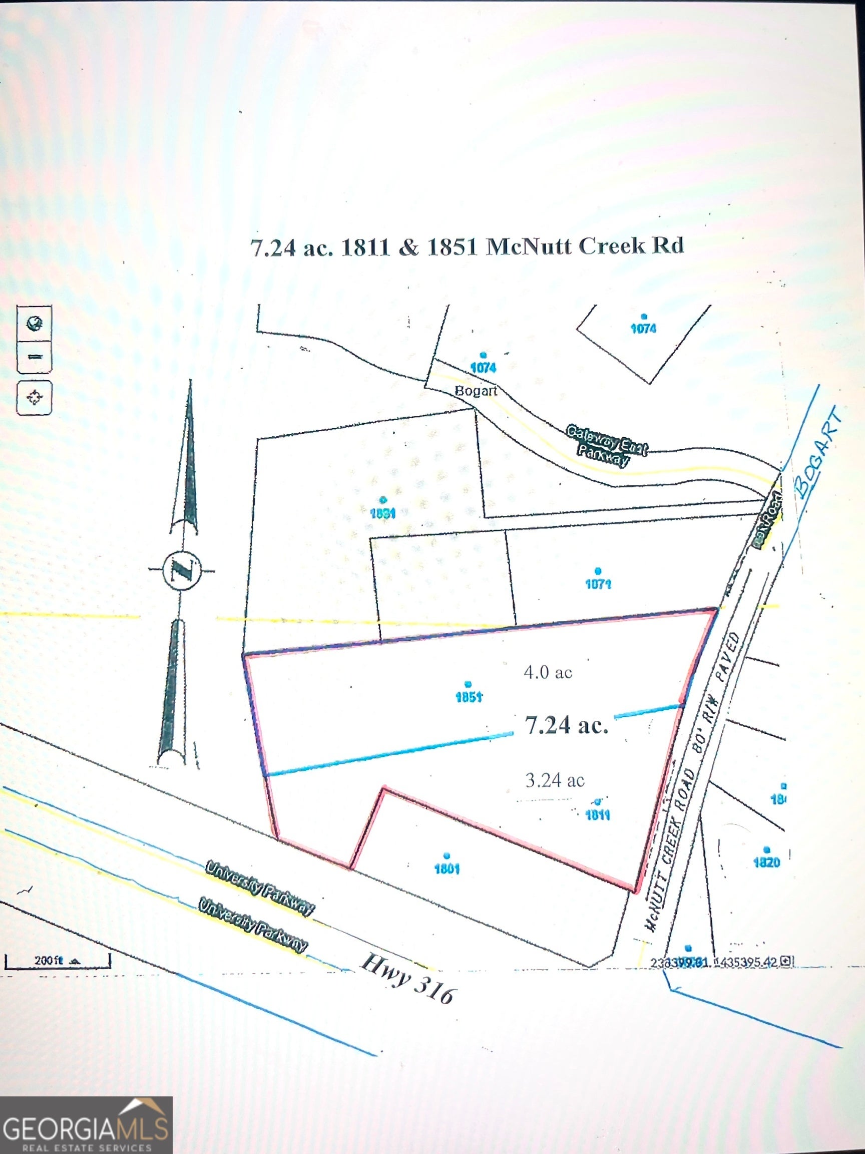 MAJOR PRICE REDUCTION! - Seller Ready to Sell (AS-IS) A rare opportunity to own 3.25 acres in highly desirable Oconee County. This property features a 2BR / 1BA farmhouse-style home with over 1,290 sq ft, being sold AS-IS with cash closing preferred. With its location and layout, this property offers strong commercial potential as well as residential possibilities. Located in the North Oconee High School district, the property sits just a few hundred feet from the access point to Hwy 316, where Georgia Department of Transportation plans improvements and re-engineering of the corridor. The location offers excellent connectivity - only 5 miles to Athens, 2 miles to Bogart, and approximately 45-50 miles to Atlanta. The land provides ample room for additional buildings, parking, or future development. Currently zoned AG and class R4, the property includes county water, electricity, natural gas, septic, and new fiber internet availability. A creek borders the rear of the property, where a sewer line runs that may offer potential connection. Buyers are encouraged to verify zoning, permits, utility access, and potential uses with the appropriate authorities Additional advantages include double road frontage on Hwy 316 and McNutt Creek Rd, along with the local fire station located within the same block-adding convenience and accessibility. Bonus Opportunity...... The adjacent 4-acre property at 1851 McNutt Creek Rd is also available and has recently been reduced. Combined, the two properties could total 7.25 acres, creating an even larger commercial or development opportunity in this growing corridor. Opportunities like this in Oconee County are becoming increasingly rare - schedule your showing and explore the potential today. Buyers are encouraged to verify zoning, permits, utility access, and potential uses with the appropriate authorities.