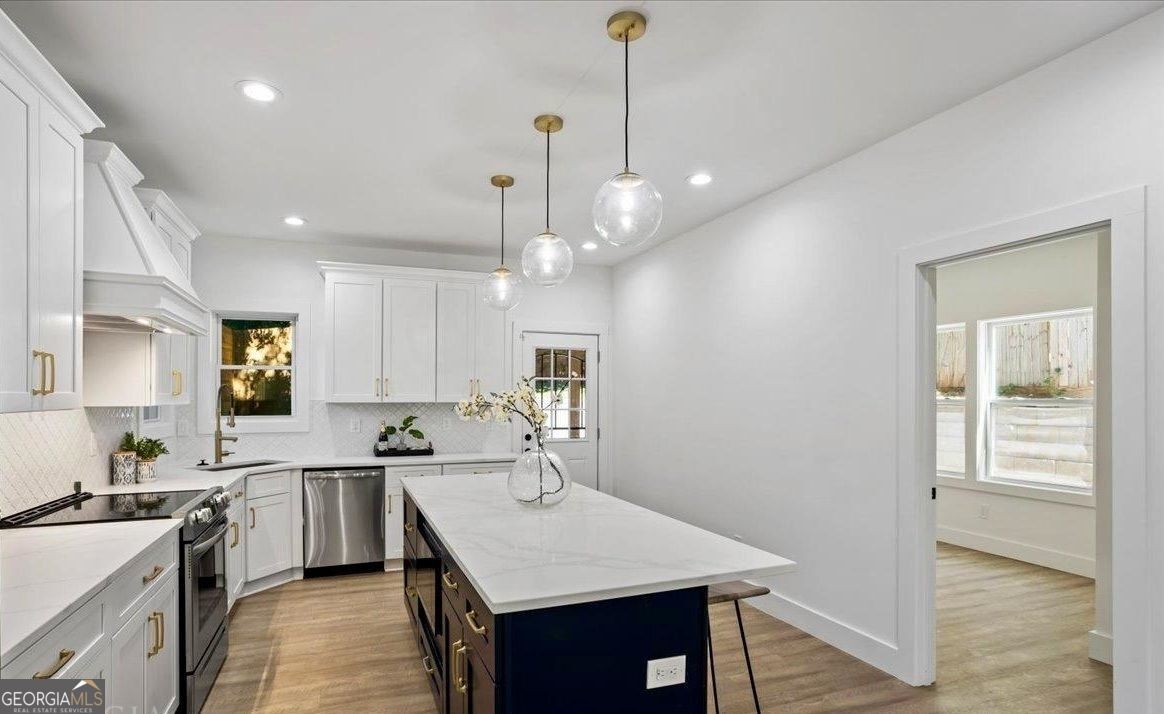 Location, location, location! This luxurious designer masterpiece-a nearly brand-new, recent construction-sits in the vibrant heart of Atlanta, mere minutes from Downtown and only two blocks from iconic Morehouse College Stadium. Enjoy unrivaled proximity to the Falcon's Stadium, the historic West End Mall, serene state parks, Hartsfield-Jackson Airport, the Beltline, public transit, celebrated restaurants, boutique shops, and several world-renowned colleges and universities. An exceptional elementary school graces the same street, just steps from the local park. Nestled in the highly coveted Ashview Heights community, this radiant home offers an unparalleled blend of elegance, convenience, and modern living. From the moment you enter this three-year-old dream home, sunlight cascades through four grand windows, illuminating the open concept living, dining, and kitchen spaces with a warm, inviting glow. The living room's show-stopping color-changing electric fireplace instantly commands attention-an artistic centerpiece that sets the tone for relaxation, celebration, and effortless style. Flat-screen televisions line the walls of every room-including the living room-creating a sophisticated, fully outfitted home ready for entertainment and enjoyment at the highest level. The gourmet chef's kitchen is a visual triumph, anchored by an impressive eight-foot island crowned with leather stools. High-end stainless-steel appliances-including a gleaming double-sided refrigerator with ice maker-pair beautifully with the custom-designed range hood, curated lighting, and meticulous designer finishes. Every detail whispers luxury. With one ample-sized bedroom on the main level and three additional bedrooms upstairs-including the outstanding owner's suite-this home offers generous space and thoughtful flow. Three full baths ensure comfort for residents and guests alike. Up the staircase, the conveniently placed laundry area serves all three upper bedrooms. The owner's suite is nothing short of magnificent. The principal bath dazzles with a vaulted ceiling, a heavenly skylight, a grand spa-style shower, double vanities, and exquisite marble tile flooring. The expansive walk-in California closet provides boutique-style organization that elevates daily living. Step onto your private balcony in the evening and unwind as the sun slips gently below the horizon. Outside, a charming private patio and beautifully landscaped yard beckons you to linger beneath the shade of a glorious magnolia tree, sipping sweet tea as summer breezes dance through its branches. The totally fenced backyard offers endless peaceful and private moments. Thoughtfully designed gated parking awaits just around the corner. Both main and upper levels boast proud 9-foot ceilings, adding openness and grandeur to every room. Moments from the Westside Beltline and the new Westside Park, this outstanding designer residence is a rare offering-luxury, beauty, and convenience woven into every inch of its splendid design. Get in place just in time for the FIFA World Cup just minutes from this home! This rental will not last long. It's furnished and waiting for you to entertain with your family and friends in the New Year!