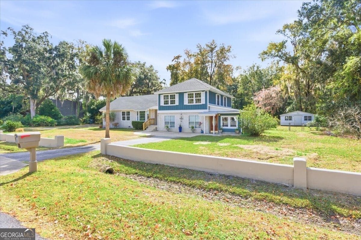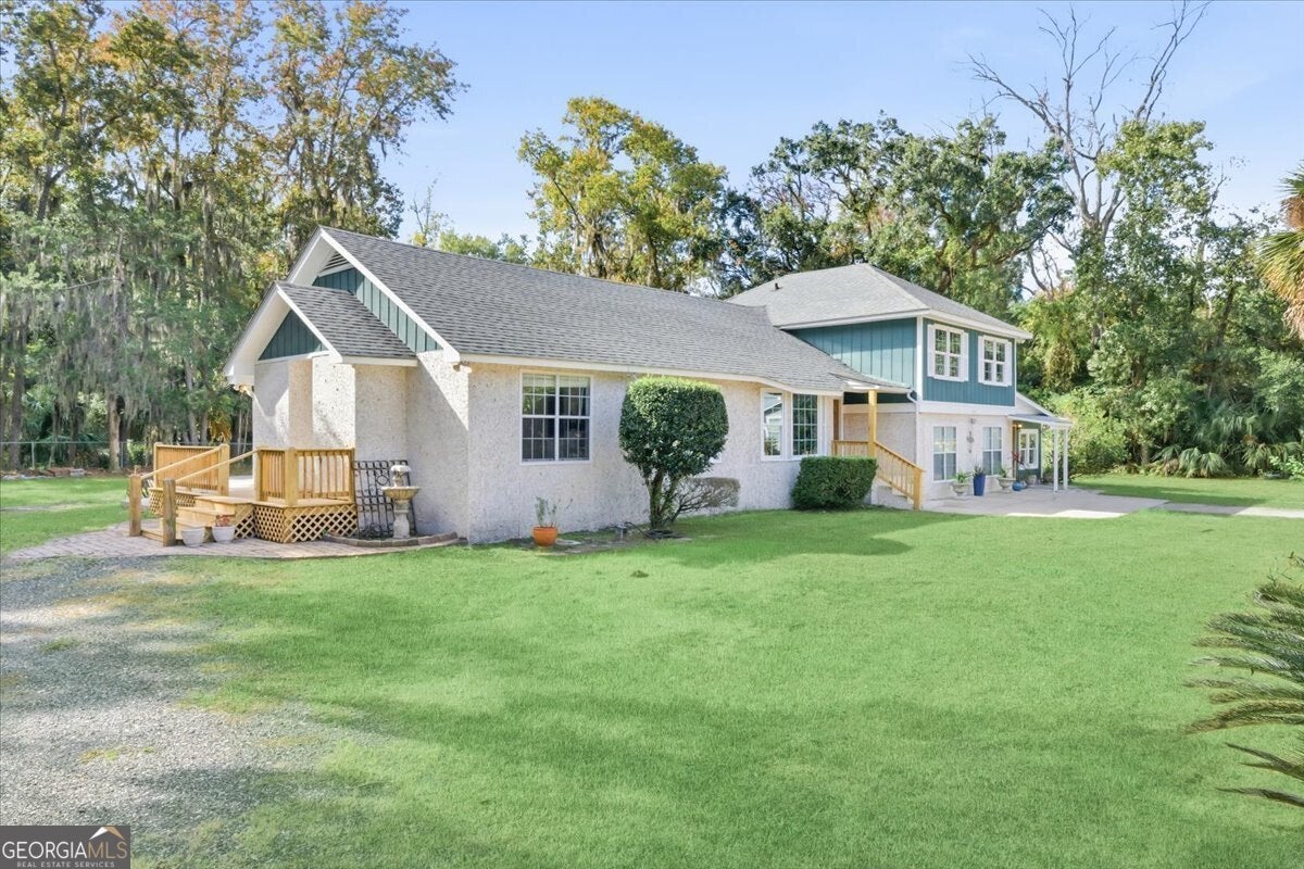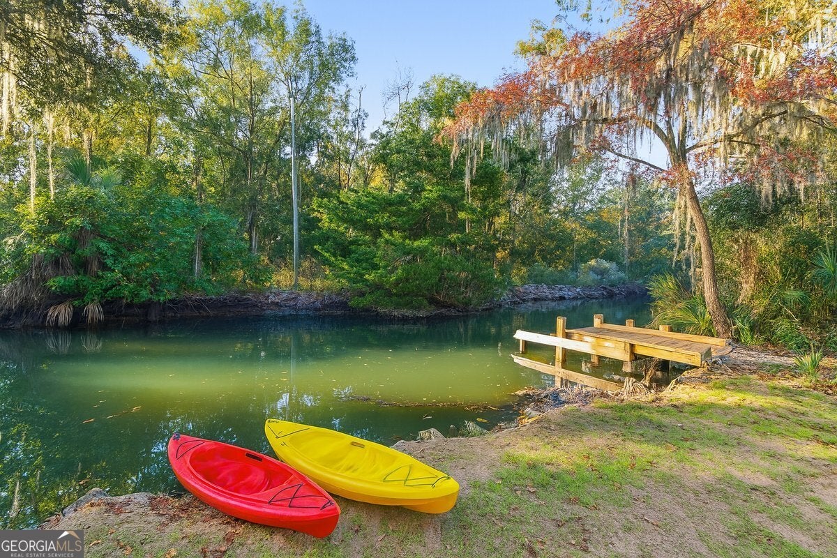 230 Yacht Road offers a rare combination of versatility, privacy, and waterfront access-no HOA, just coastal living on your terms. Set on a half-acre lot along a tidal creek that reaches deep water in under half a mile, this property includes a private dock, making it ideal for boating, fishing, and exploring the Georgia coast. Inside, the home features 3 bedrooms, 2.5 bathrooms, and a flexible layout full of possibilities. A bonus room functions as a fully operational commissary kitchen, while a separate, oversized space-previously used as a beauty salon-includes its own private entrance, offering potential for a home business, studio, or conversion into a second suite. A convenient half bath nearby could easily be expanded into a full bath, creating a massive master suite. The kitchen is truly expansive, offering abundant cabinetry and prep space, perfect for anyone who loves to cook or entertain. A wood-burning stove adds charm and provides functional heat during cooler months. The home also includes new windows, built-in bookshelves, a wet bar, fruit trees, ample storage throughout, and a separate outbuilding for additional storage needs. A large parking pad is ready to accommodate a food truck, RV, or extra vehicles, and a fireproof safe conveys with the property. Whether you're looking for a multi-use space, an income-producing opportunity, or a peaceful waterfront retreat, 230 Yacht Road delivers something truly special.