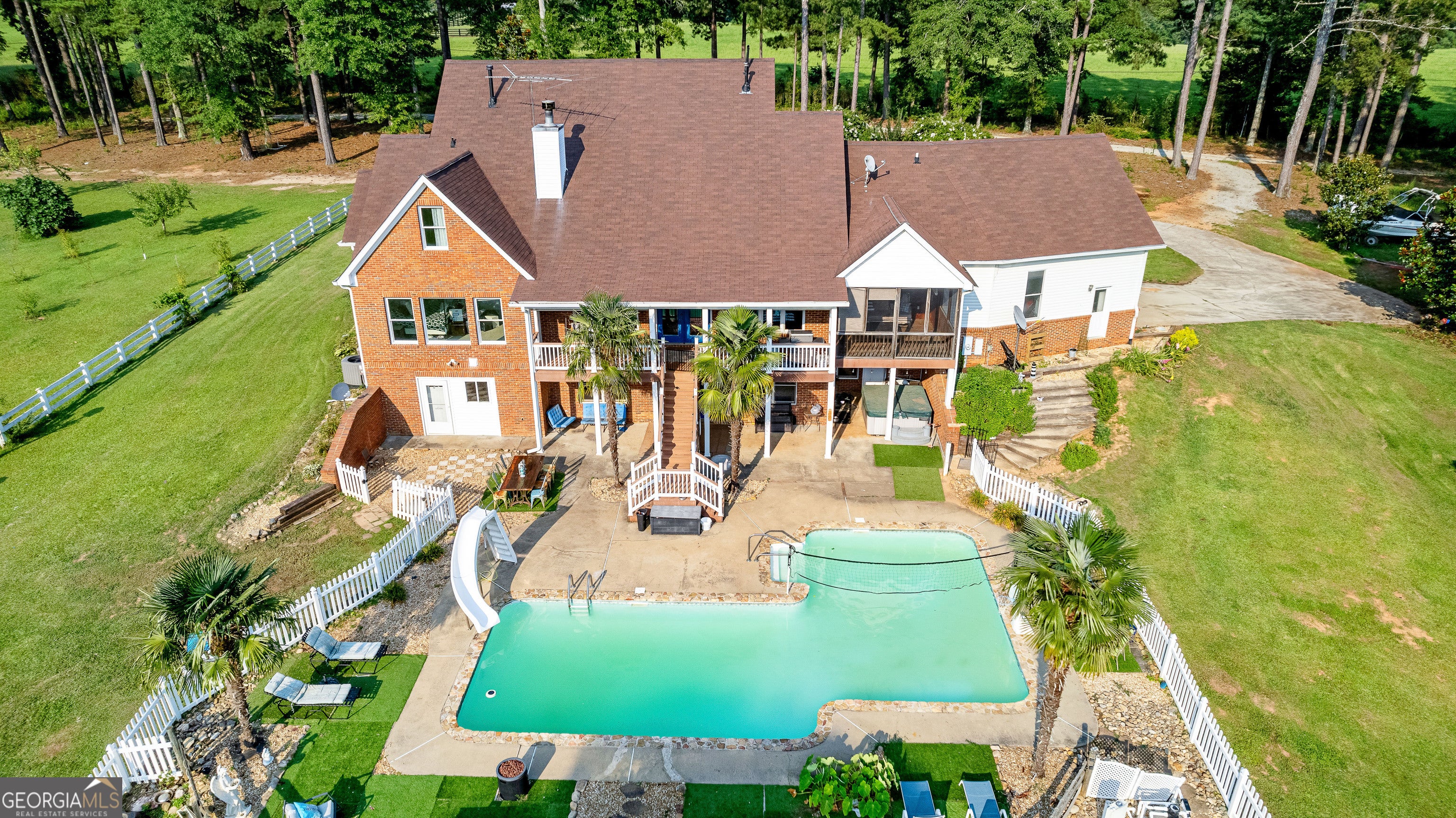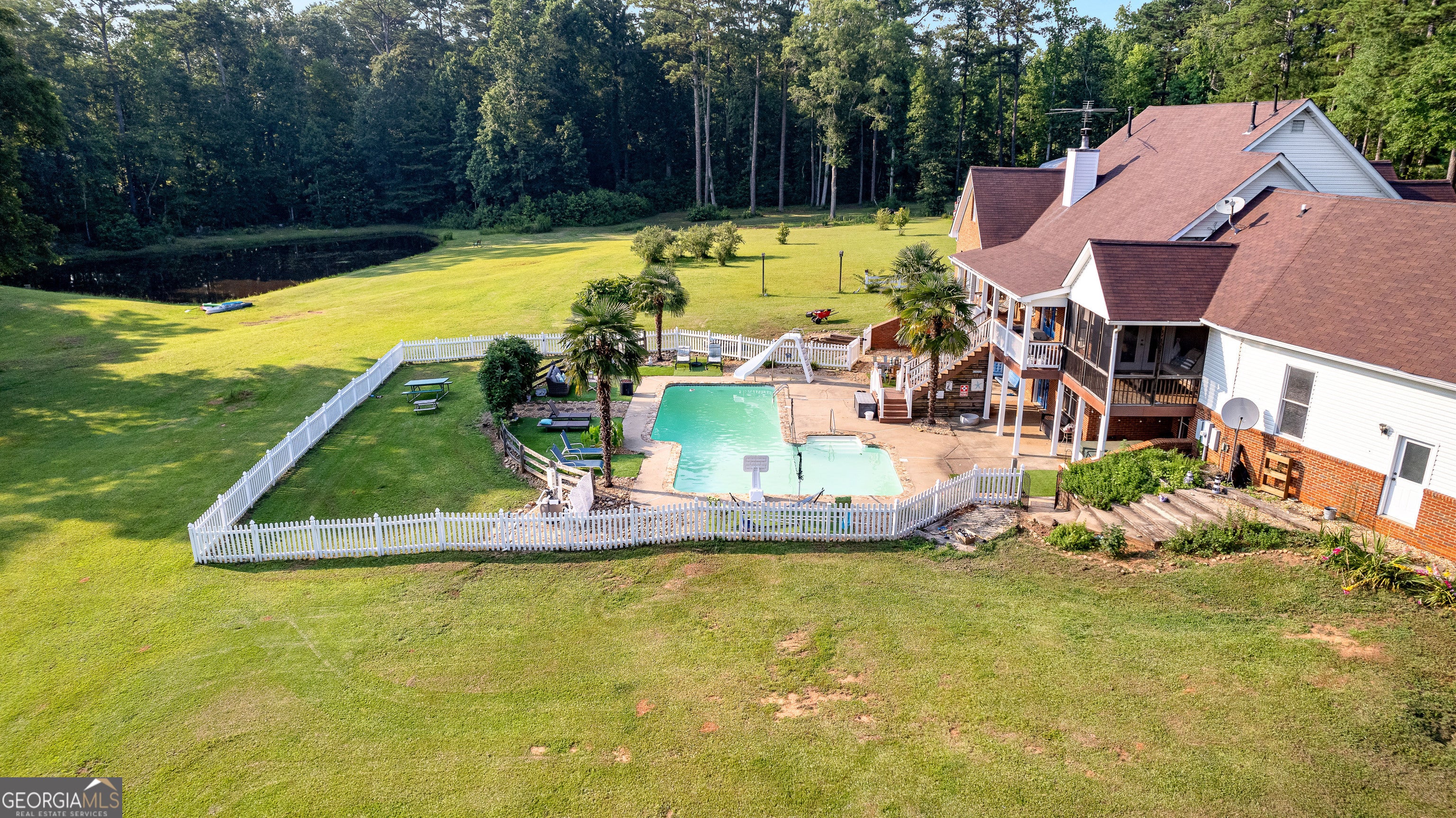 Priced below New Appraisal! Such a great opportunity. Welcome home to this tranquil almost 11 acres with a catfish filled pond, swimming pool, hot tub and nearly 6,000 square feet of space to raise your family and entertain. It's also just minutes from downtown Newnan and not far to the interstate. Situated on a private road right off of Welcome road it offers such privacy and country living. The barn gives tons of storage or opportunity for you to bring your farm animals or start the homesteading that you have possibly been dreaming of doing. It has a large open main floor with the master on the main. The finished daylight basement leads out to the swimming pool and boasts another full kitchen and bathroom. This would be a great multi generational home.