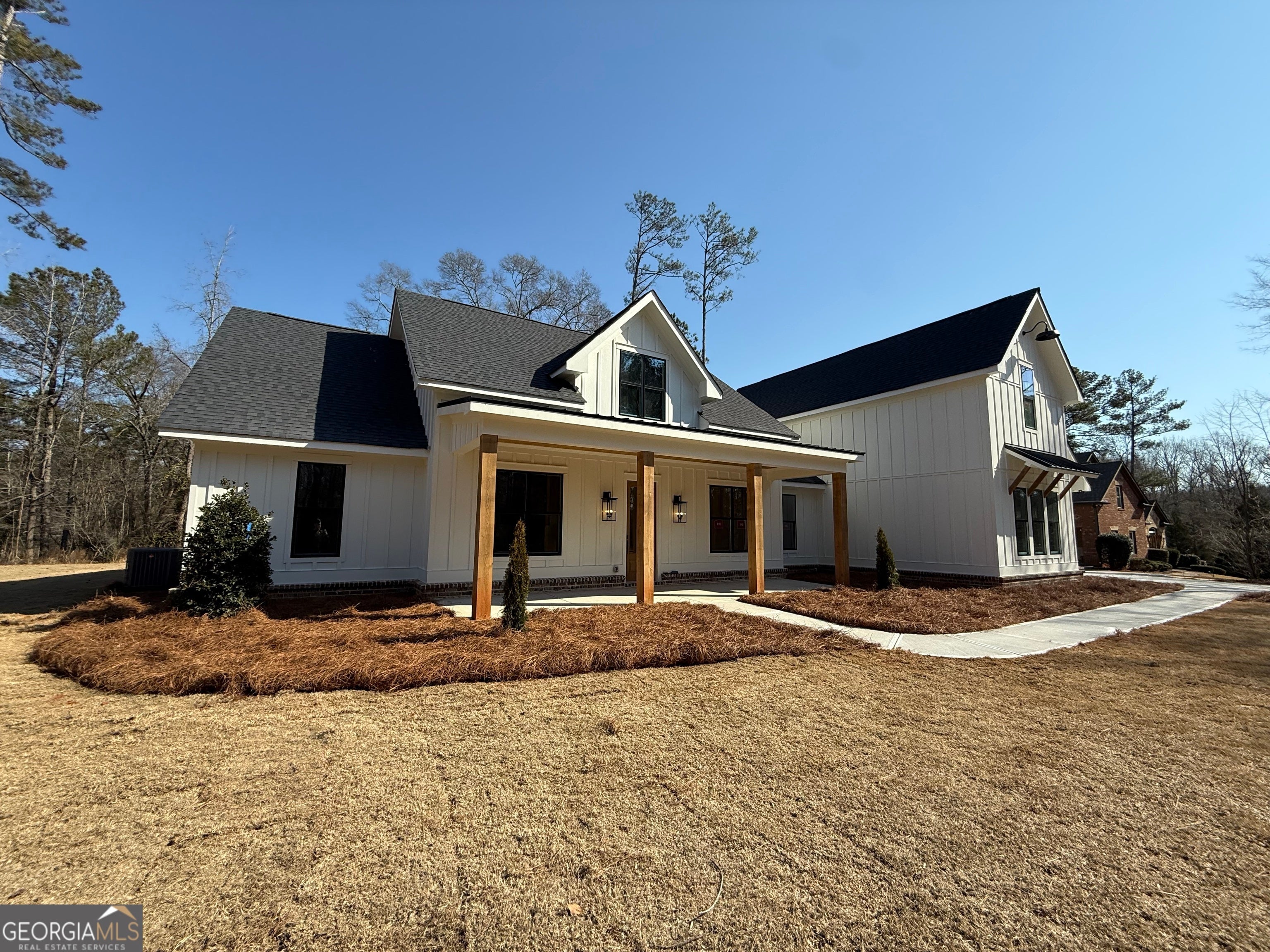 This stunning 5-bedroom, 4.5-bath ranch home blends timeless farmhouse charm with modern luxury. Thoughtfully designed for comfort and style, the open-concept layout features warm natural finishes, abundant windows, and soaring ceilings that create an inviting, airy atmosphere throughout. At the heart of the home is a spacious chef's kitchen complete with premium appliances, a large center island, and highend cabinetry-perfect for everyday living or hosting family and friends. The adjoining dining and living areas flow seamlessly together, anchored by a cozy fireplace and picturesque views of the property. The generous primary suite offers a peaceful escape with a free-standing tub bath and a walk-in closet. Four additional bedrooms provide plenty of space for family, guests, or a home office, with well-appointed bathrooms throughout for convenience and privacy. A 3-car garage offers ample room for vehicles, storage, or workshop space, while the ranch-style layout ensures easy, comfortable living on single level with a bonus room. Styled with classic farmhouse details-such as board-and-batten siding, rustic cedar accents, and welcoming outdoor spaces-this home has both character and contemporary appeal. Perfect for those seeking space, style, and modern country living, this farmhouse ranch is ready to welcome you home.