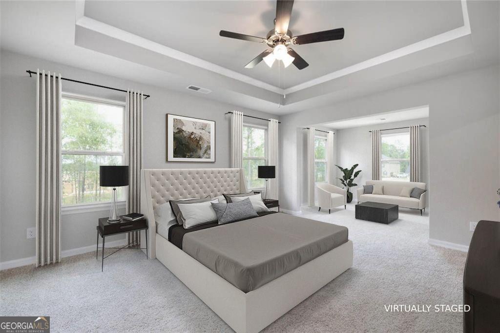 - Interior FeaturesDouble Vanity, High Ceilings, Tray Ceiling(s), Vaulted Ceiling(s), Walk-In Closet(s)