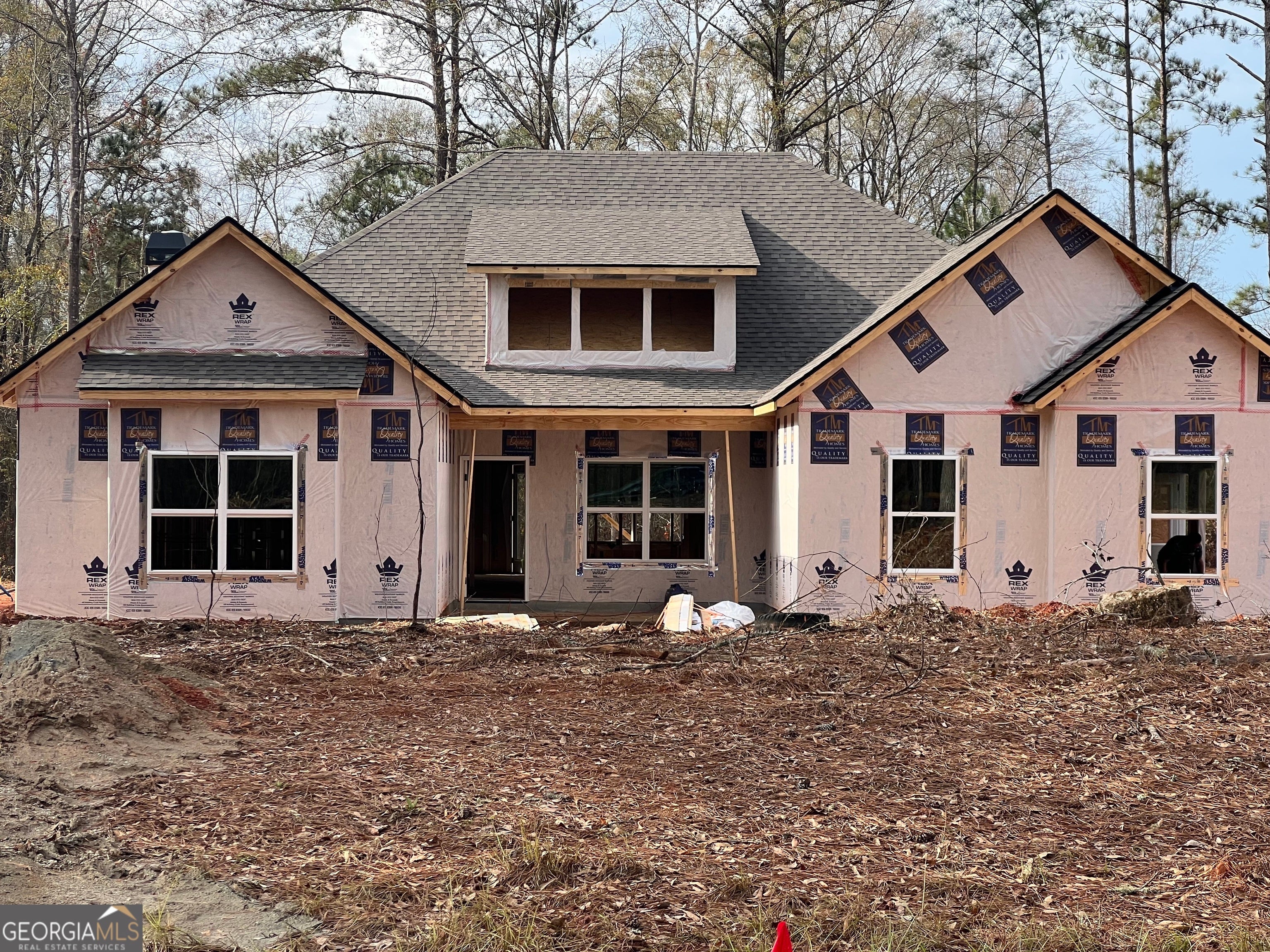 Trademark Quality Homes presents The Blanton - a true ranch on a beautiful 2-acre lot. This 4-bedroom, 2-bath home features an open-concept design and a desirable split-bedroom floor plan, offering both comfort and privacy. The spacious owner's suite includes tray ceilings and a spa-inspired bathroom with double vanities, a soaking tub, a tiled shower, and a large walk-in closet that conveniently connects to the laundry room. The kitchen showcases designer finishes including a large island, quartz countertops, tile backsplash, stainless steel appliances, and a walk-in pantry, all open to the main living space - perfect for entertaining or everyday living. Situated on a serene 2-acre lot with a beautiful tree-lined backdrop, this home provides a peaceful setting while still offering a convenient location just 13 minutes from downtown Senoia. Several additional lots are available for pre-sale.