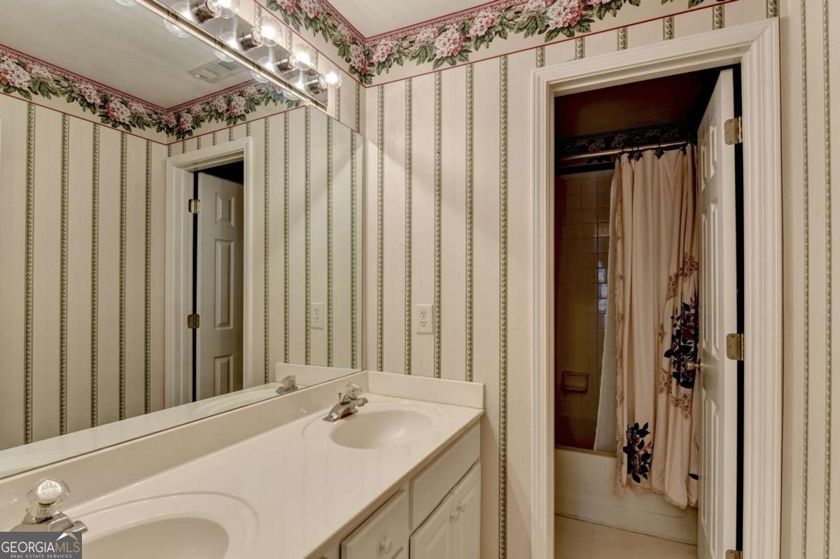 Enjoy the best of both worlds with an Alpharetta address and low Forsyth County taxes in this inviting brick-front home tucked in a vibrant swim and tennis community. Priced to sell and ready for your updates, this home sits in an amazing location close to everything you need, including Halcyon for restaurants and shopping. The sought-after floor plan features the primary suite on the main level with plantation shutters in the primary suite and bath, a trey ceiling, and a large walk-in closet. The laundry room is also conveniently located on the main floor. The open-concept great room flows easily into the kitchen and dining area, anchored by a stacked stone fireplace with a gas starter. Upstairs offers three additional bedrooms and a full bath, including a spacious bonus room with two large storage areas and a linen closet. This well-cared-for home includes newer systems-HVAC (2022), water heater (2020)-plus a security system with a new panel. Step outside to a private patio overlooking a level corner lot, perfect for relaxing or entertaining. Walk to Caney Creek Preserve and nearby parks, with effortless access to shopping, dining, and top-rated schools, including the highly sought-after Denmark High School. Enjoy Alpharetta living with Forsyth County taxes-the ideal blend of comfort, convenience, and value.