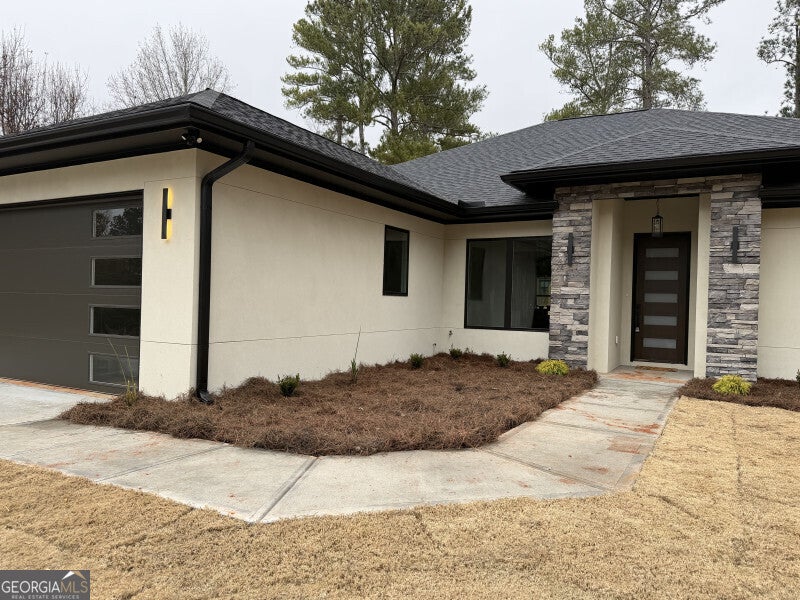 Welcome to this One-Of-A-Kind, NEW CONSTRUCTION, SINGLE-LEVEL home located in a quiet Conyers cul-de-sac, near a scenic lake. This new construction ranch offers a perfect blend of modern luxury and timeless comfort all on one level. With 3 bedrooms and 4 full bathrooms, this home is ideal for families looking for comfort and style. Each aspect of this home has been thoughtfully designed. The exterior features a contemporary stucco-and-stone finish and modern curb appeal. The open floor plan features a light, airy kitchen with granite countertops, stainless steel appliances and an open layout. Each bedroom has it's own private en suite full bath. The hall bathroom features a full guest bath for added convenience. For the main bedroom, you can relax in a spa-inspired owner's suite featuring a standalone soaking tub, oversized shower and a huge walk-in closet. Situated on a generous lot size of 0.5 acres, this property offers plenty of outdoor space for you to enjoy. Entertain or unwind on the expansive covered patio, overlooking a large backyard ready for your dream garden, firepit, or outdoor kitchen. Crafted by a private custom-home builder, this home has been built with care and quality and showcases premium finishes, thoughtful design, and lasting construction, offering both style and substance in every detail. Built on the last available lot in a quiet, established cul-de-sac, this new construction home is a RARE find and its location provides easy access to shopping, dining, schools, and entertainment options. Don't miss the opportunity to make this beautiful residence your own. Schedule a showing today and experience the luxury and comfort of 3296 Haverhill Ct SE in Conyers, GA.
