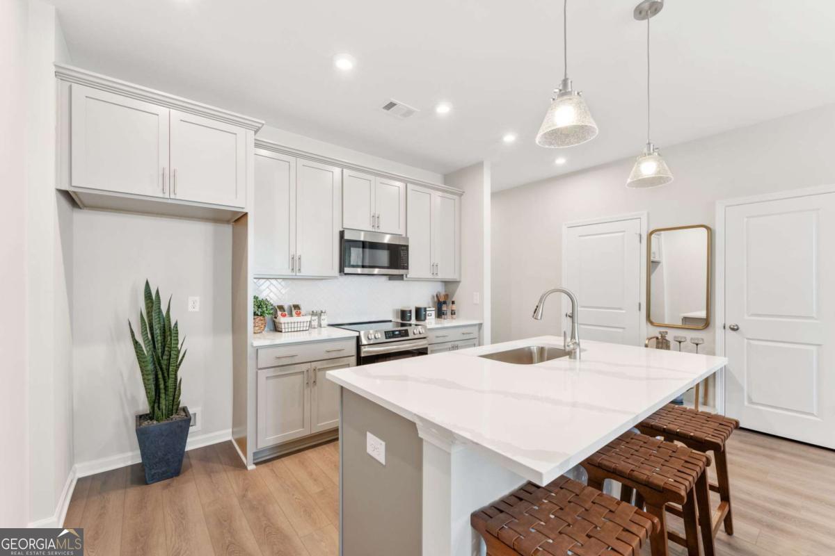 Special financing incentives available, including 100% financing options or 3.99% fixed FHA through preferred lenders for qualified buyers. Terms and conditions apply. The Monroe B at Stegall Village, ready now! Discover elevated living, perfectly positioned in Stegall Village and nestled on a scenic high point with breathtaking views of treetops and rolling hills! This charming two-story home offers 3 bedrooms, 2.5 baths, and a 1-car garage with a 2-car parking pad, just minutes from I-75! The open-concept design showcases a luxury kitchen with quartz countertops, stainless steel appliances, and a slide-in range, seamlessly connected to a spacious living area with an elegant linear fireplace. The primary suite is a private sanctuary with a tray ceiling and spa-inspired bath with a semi-frameless shower, while two additional bedrooms provide comfort and versatility. Stegall Village is more than a home-it's a lifestyle. Residents enjoy a clubhouse and pool community with one of the lowest HOA fees in the area, along with all-electric living and modern finishes that set us apart from the competition. Just minutes from Lake Allatoona, Red Top Mountain, shopping, and dining, this location combines natural beauty with everyday convenience. Experience elevated living-Call about exciting new deals!!