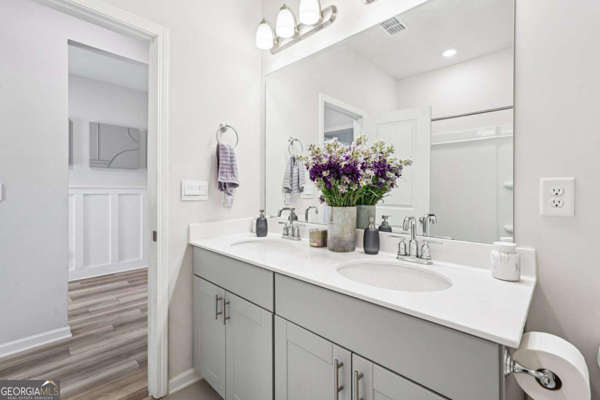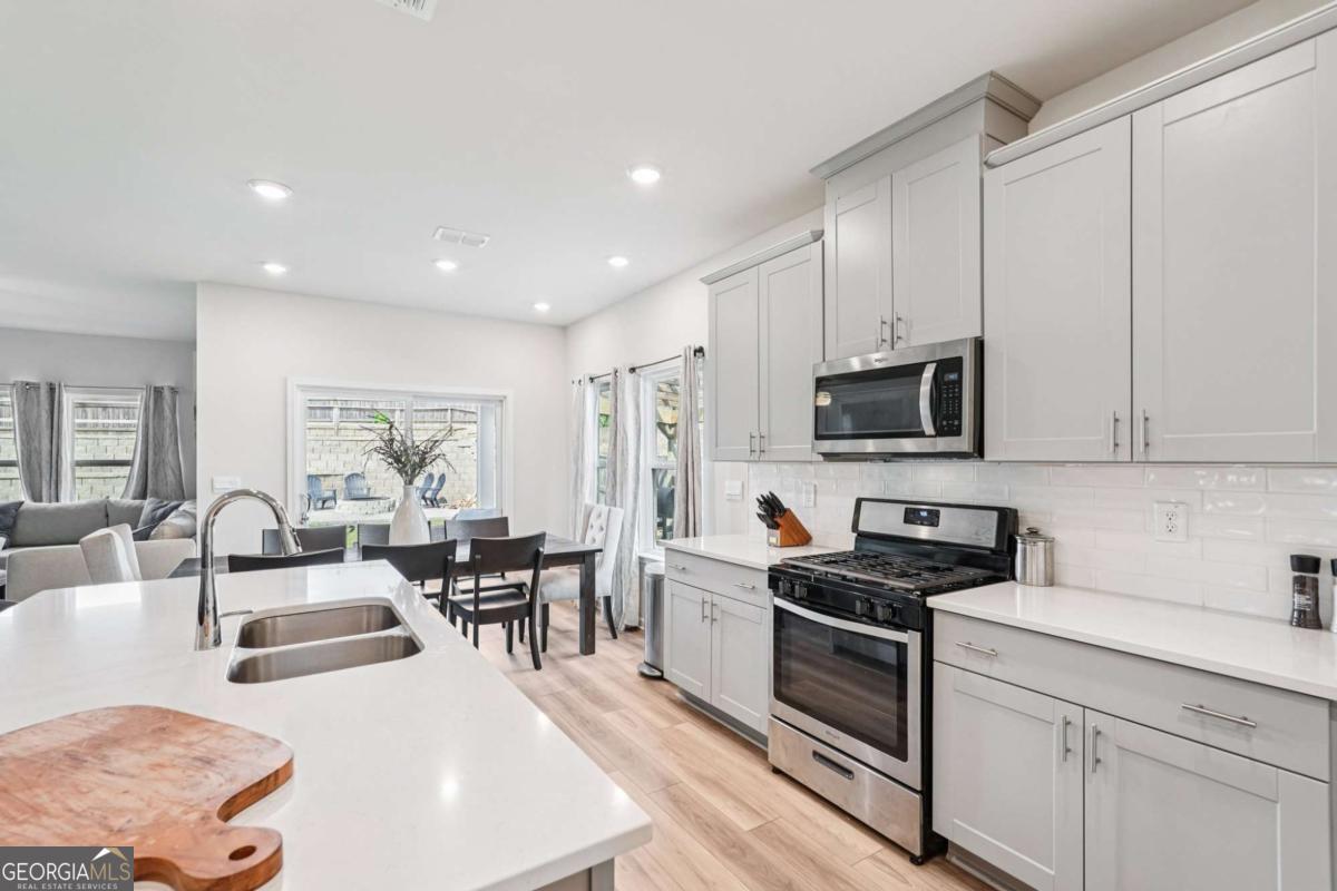 BETTER THAN NEW. Fully updated / upgraded ranch home under three years old. Step-less, open concept, energy efficient home adorned with custom millwork, board and batten, wainscotting, and upgraded trim. Main level includes master bedroom + 2 secondary bedrooms + office. Hardwood floors lead you through the foyer and by two large secondary bedrooms as you enter the home. There is a flex room that could be used as a play room, media room, office, or secondary family room. A spacious, open kitchen with an oversized granite island greets you as you enter into the living areas and a large great room with gas log fireplace. Kitchen features an oversized island with quartz countertops, stainless steel appliances, and large eat-in kitchen. Master on Main: Spacious primary bedroom on main w/ trey ceiling, custom millwork, and a spa-like bathroom with an over-sized zero entry step-less shower, double vanities, and a large walk-in closet. Upstairs includes a large loft area, bedroom, and full bath. Level driveway and 2 car garage w/ opener. Home sits on a premium corner lot with a large fenced-in yard. An expanded driveway continues on the side of two car garage to the back yard - room enough for 5+ cars without street parking. This home was built to be energy-efficient. Towne Mill Community has resort-like amenities including a pool w/ splash pad and slide, tennis courts, baseball field and a basketball court. Subdivision located next to the Hickory Log Lake - great for fishing and kayaking. Top-rated schools and close to shopping and easy access to I-575.