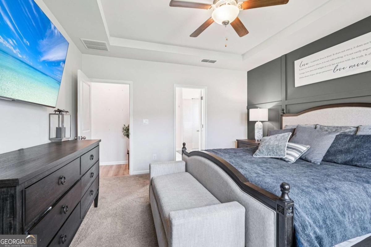 - Interior FeaturesHigh Ceilings, Master On Main Level, Roommate Plan, Tray Ceiling(s), Walk-In Closet(s)