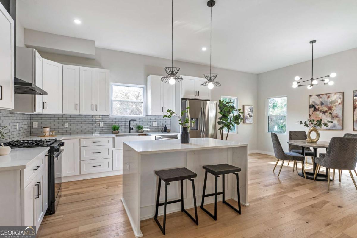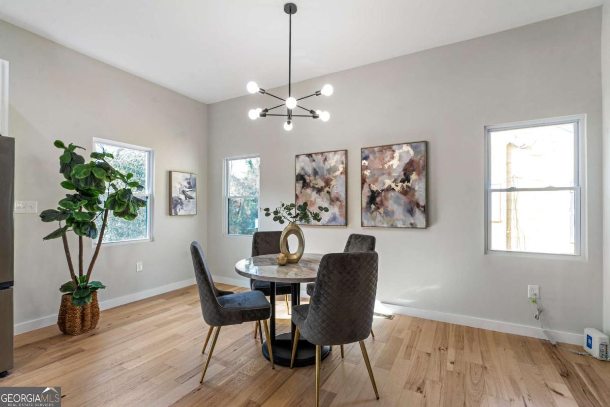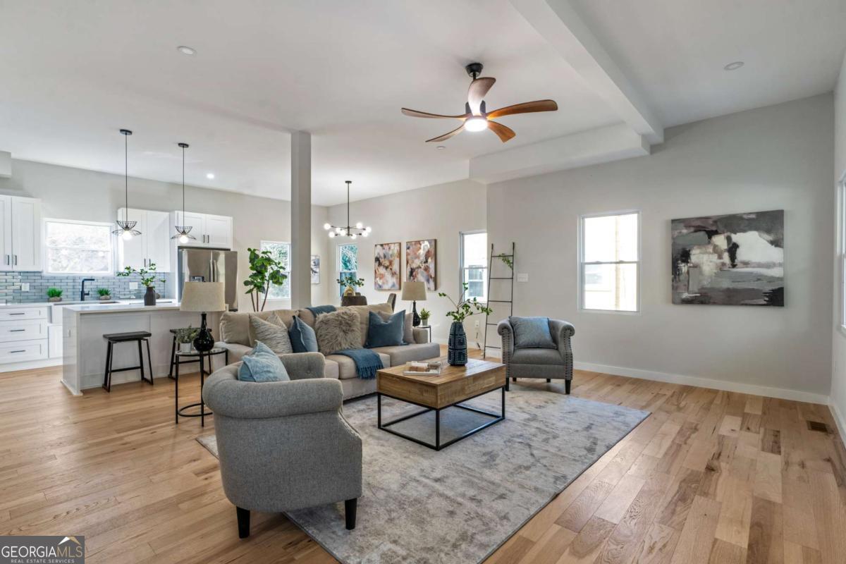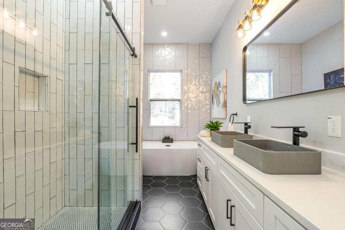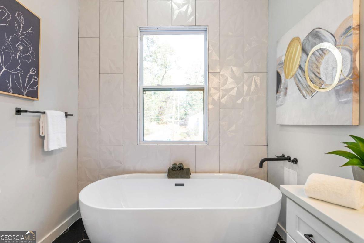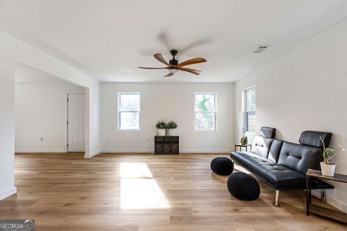 Stunning modern contemporary style new construction home with 3,700 sq ft of living space just minutes from the Atlanta BeltLine and the lively Lee + White district! This spacious home offers 5 bedrooms, 4 full baths, an open-concept main level with hardwood floors, designer lighting, and a gorgeous chef's kitchen featuring quartz countertops, custom cabinetry, and a large waterfall edge island. At the top of the stairs, a cozy sitting area loft creates the perfect reading nook or workspace. The generous primary suite includes a large walk-in closet with a full organization system and a luxurious spa-style bathroom with a frameless glass shower, rainfall and handheld showerheads, a freestanding soaking tub, black hex tile floors, dual concrete vessel sinks, and modern matte-black fixtures. The flexible floorplan includes two main-level bedrooms, PLUS a full finished basement with private entrance and full bath-ideal for guests, office, studio, multi-generational living, or even rental potential (buyer to verify)! Outdoor living shines with an oversized covered front porch, EV wired attached garage, and a large fully fenced backyard perfect for entertaining, pets, or play. Located in a thriving corridor with major developments including Murphy Crossing, the West End Mall revitalization, and the newly announced Atrium Healthcare acquisition of The Met site. Close to breweries, dining, food halls, entertainment, and parks. A rare blend of space, style, luxury finishes, and location-move-in ready and a must-see.