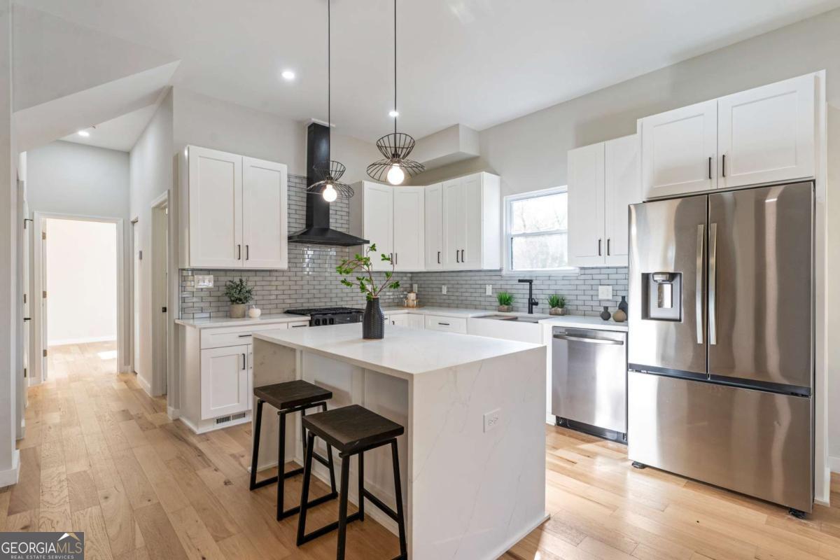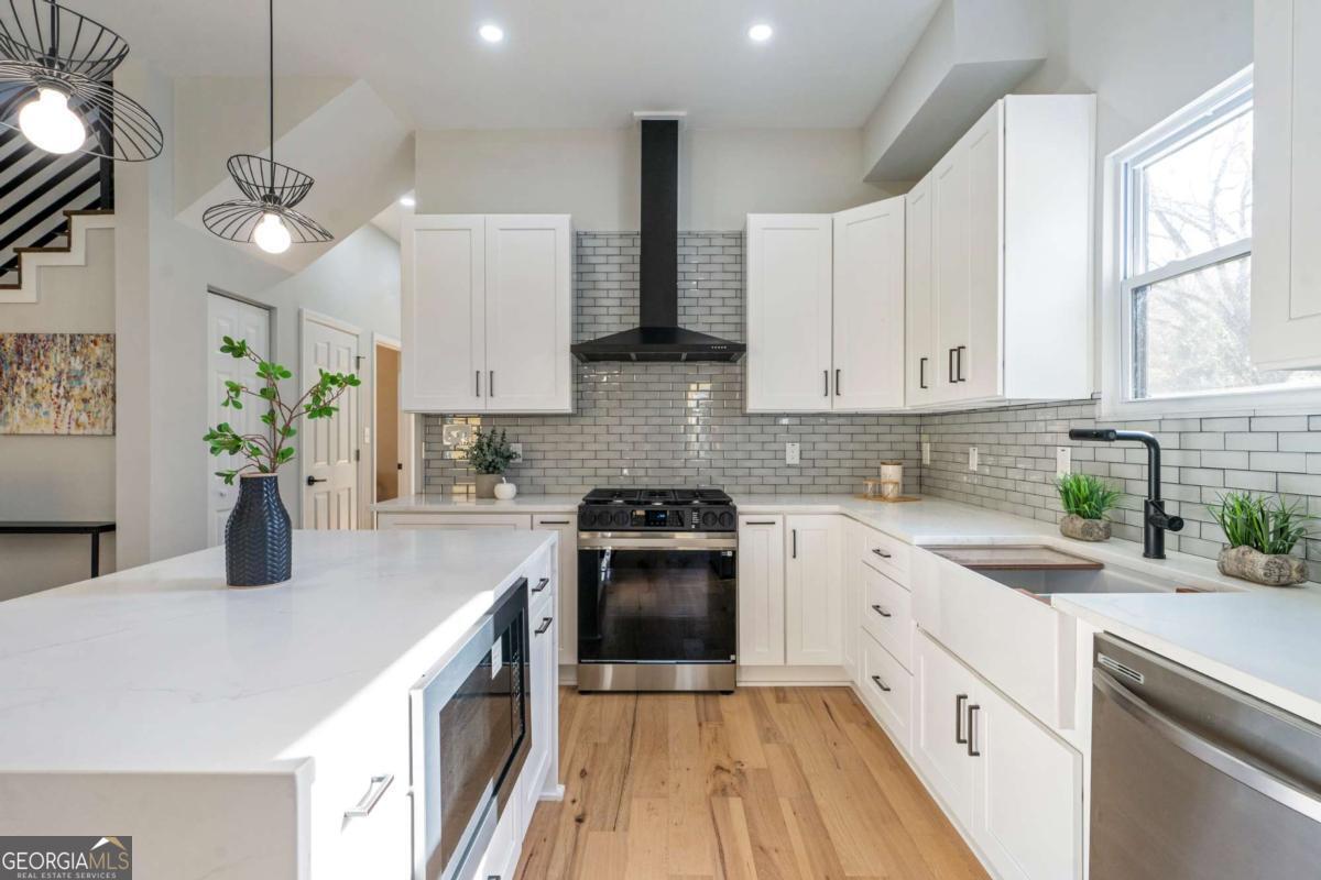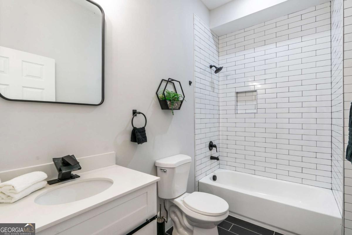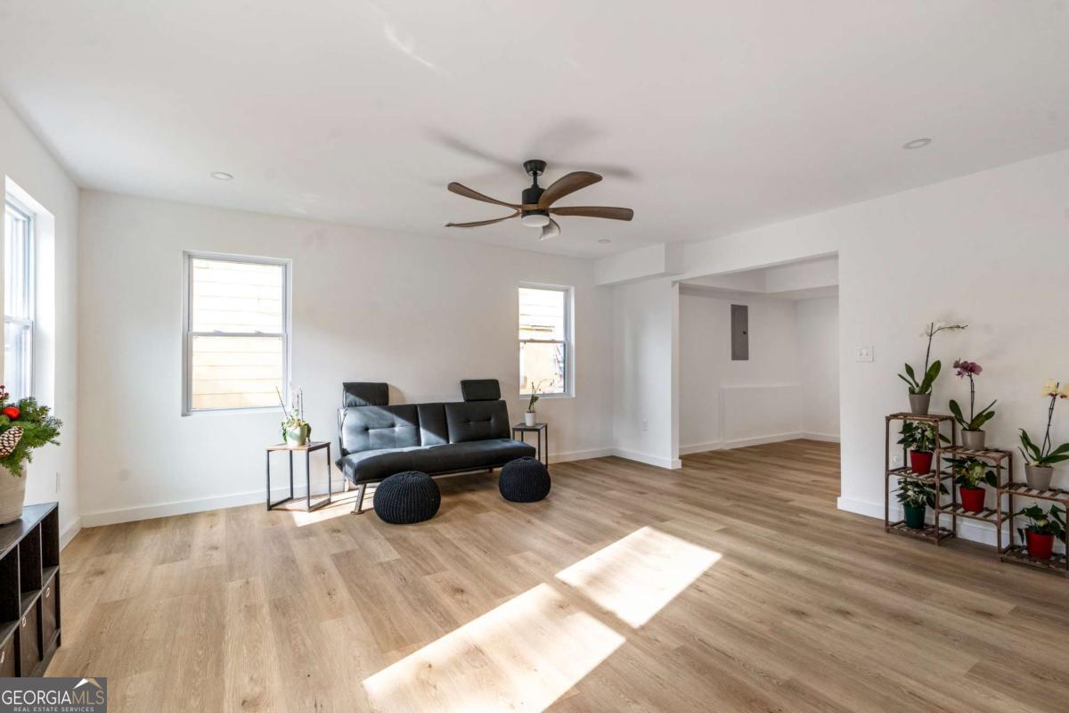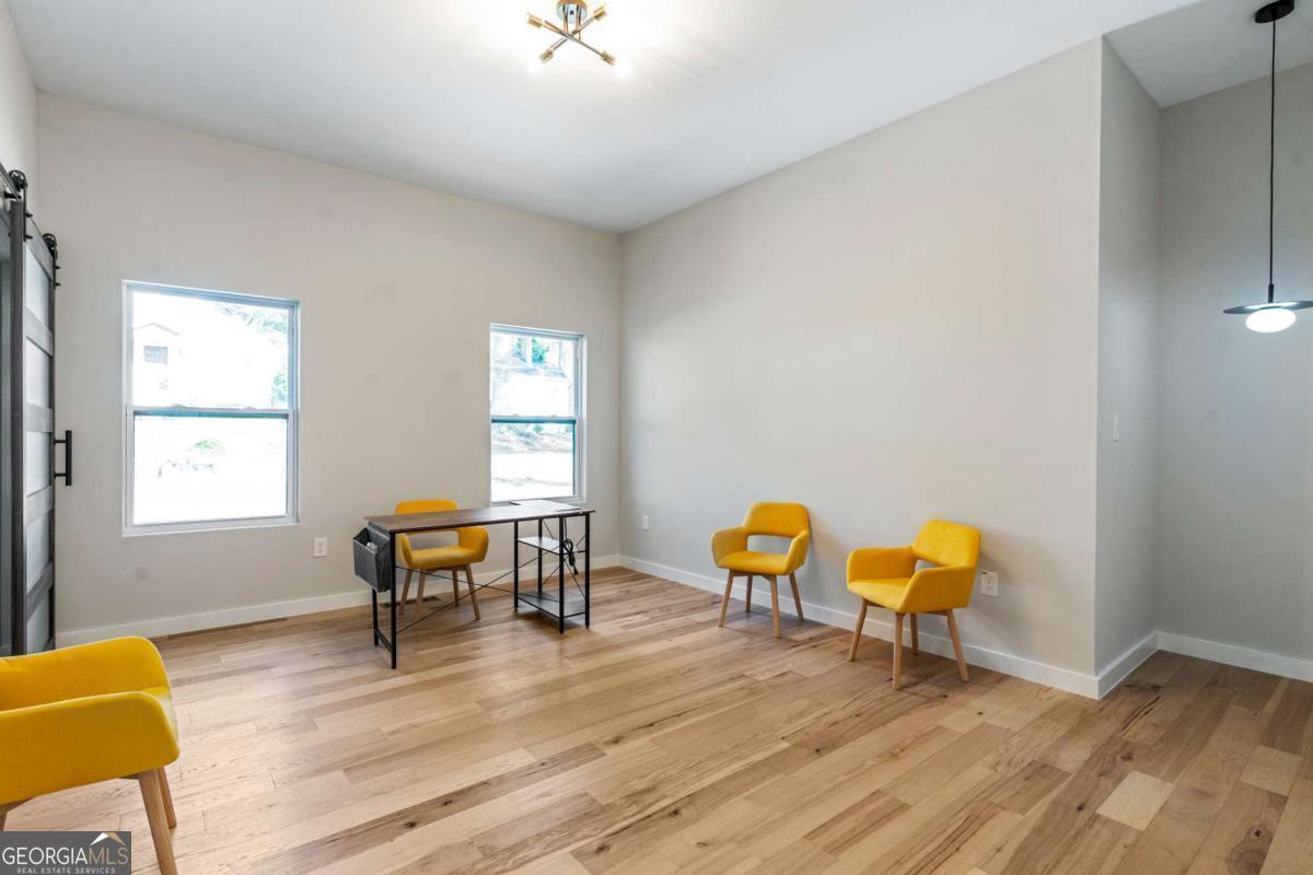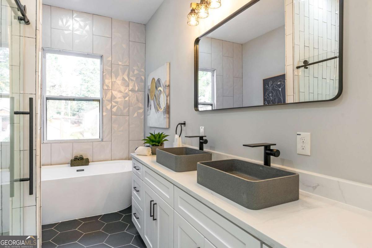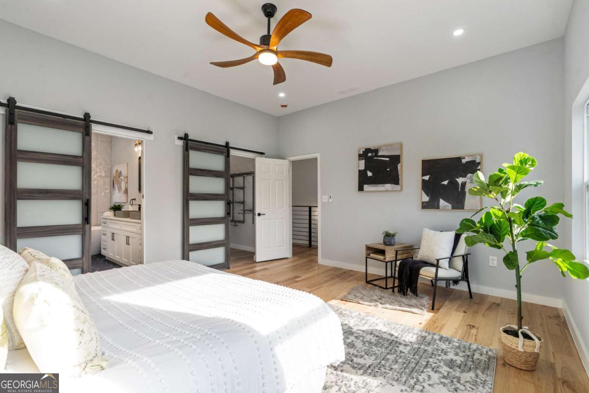 Stunning modern contemporary style new construction home with 3,700 sq ft of living space just minutes from the Atlanta BeltLine and the lively Lee + White district! This spacious home offers 5 bedrooms, 4 full baths, an open-concept main level with hardwood floors, designer lighting, and a gorgeous chef's kitchen featuring quartz countertops, custom cabinetry, and a large waterfall edge island. At the top of the stairs, a cozy sitting area loft creates the perfect reading nook or workspace. The generous primary suite includes a large walk-in closet with a full organization system and a luxurious spa-style bathroom with a frameless glass shower, rainfall and handheld showerheads, a freestanding soaking tub, black hex tile floors, dual concrete vessel sinks, and modern matte-black fixtures. The flexible floorplan includes two main-level bedrooms, PLUS a full finished basement with private entrance and full bath-ideal for guests, office, studio, multi-generational living, or even rental potential (buyer to verify)! Outdoor living shines with an oversized covered front porch, EV wired attached garage, and a large fully fenced backyard perfect for entertaining, pets, or play. Located in a thriving corridor with major developments including Murphy Crossing, the West End Mall revitalization, and the newly announced Atrium Healthcare acquisition of The Met site. Close to breweries, dining, food halls, entertainment, and parks. A rare blend of space, style, luxury finishes, and location-move-in ready and a must-see.